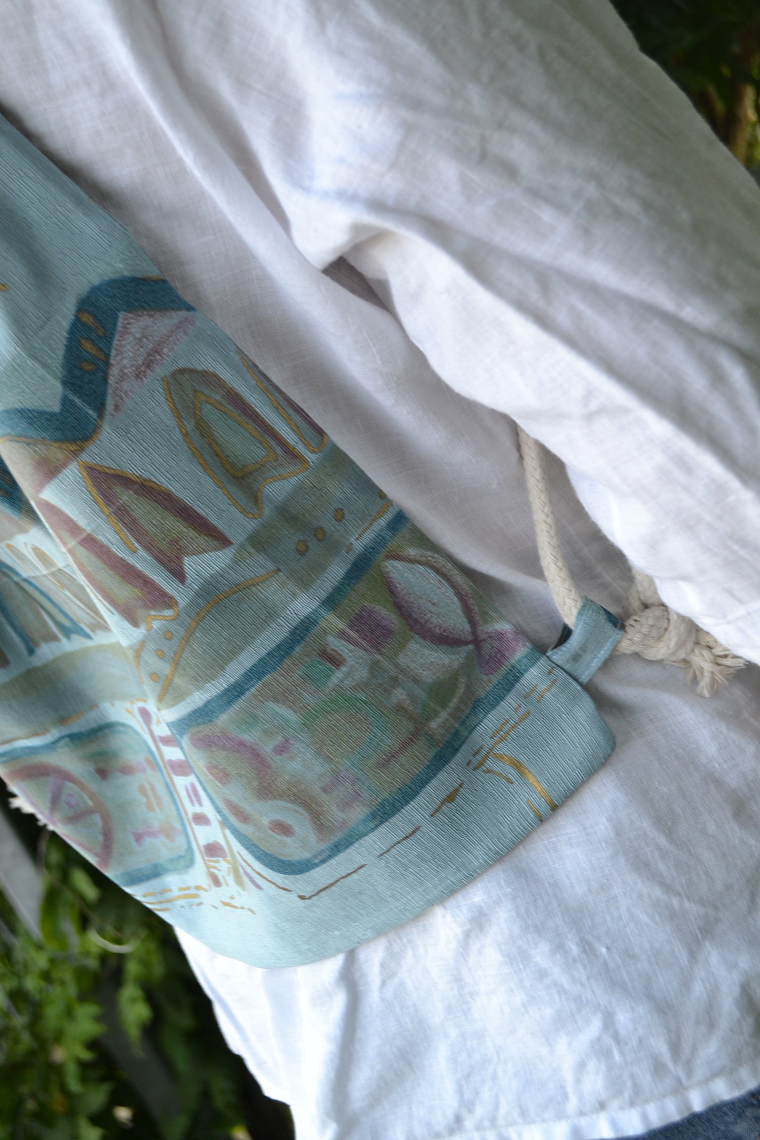 Der Beutelrucksack blue art mit blau wurde aus einem kunstvollen bedruckten Stoff gefertigt. Ideal für den täglichen Gebrauch, als Accessoire oder als Geschenk für die Liebsten perfekt geeignet.
