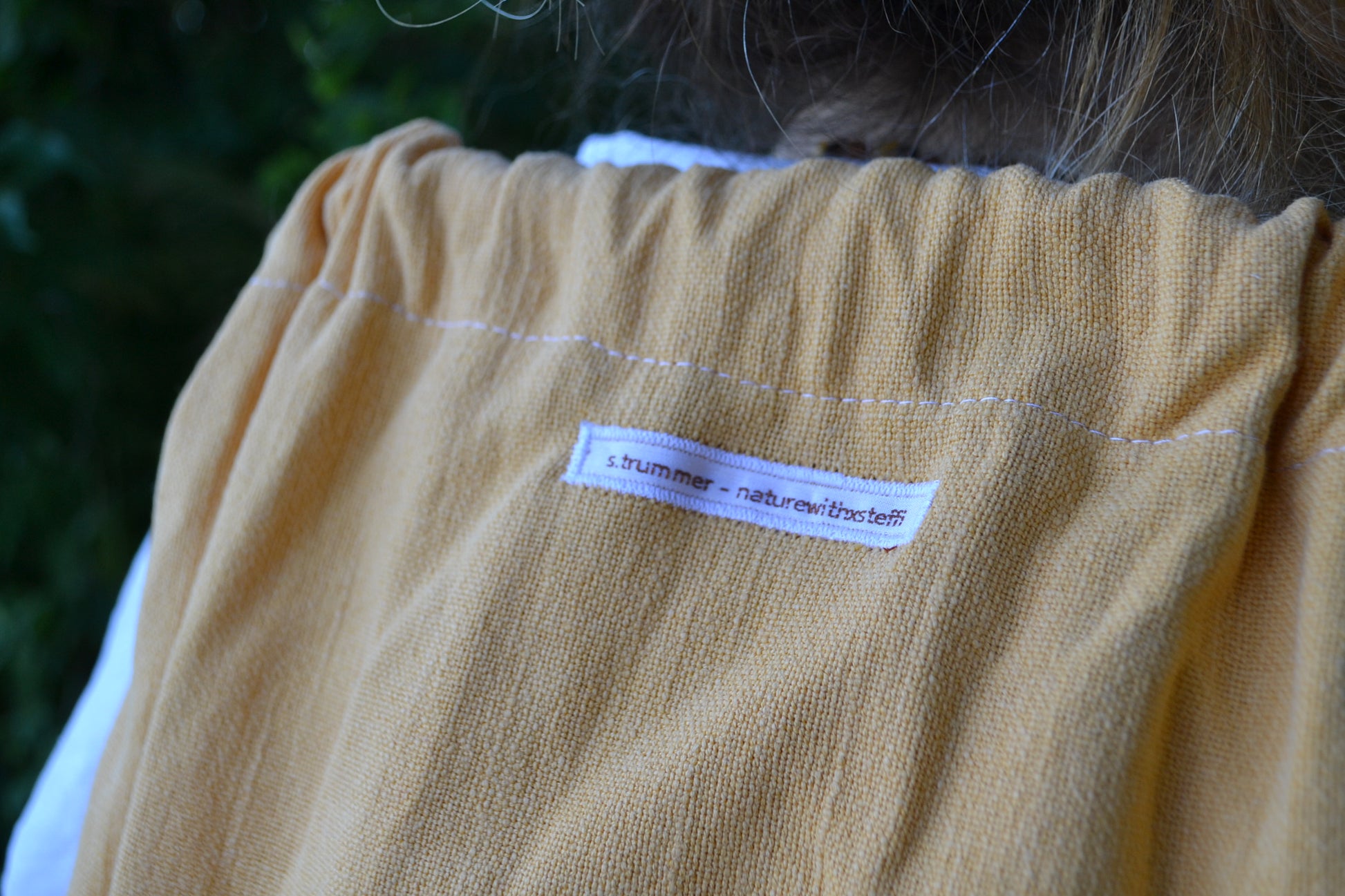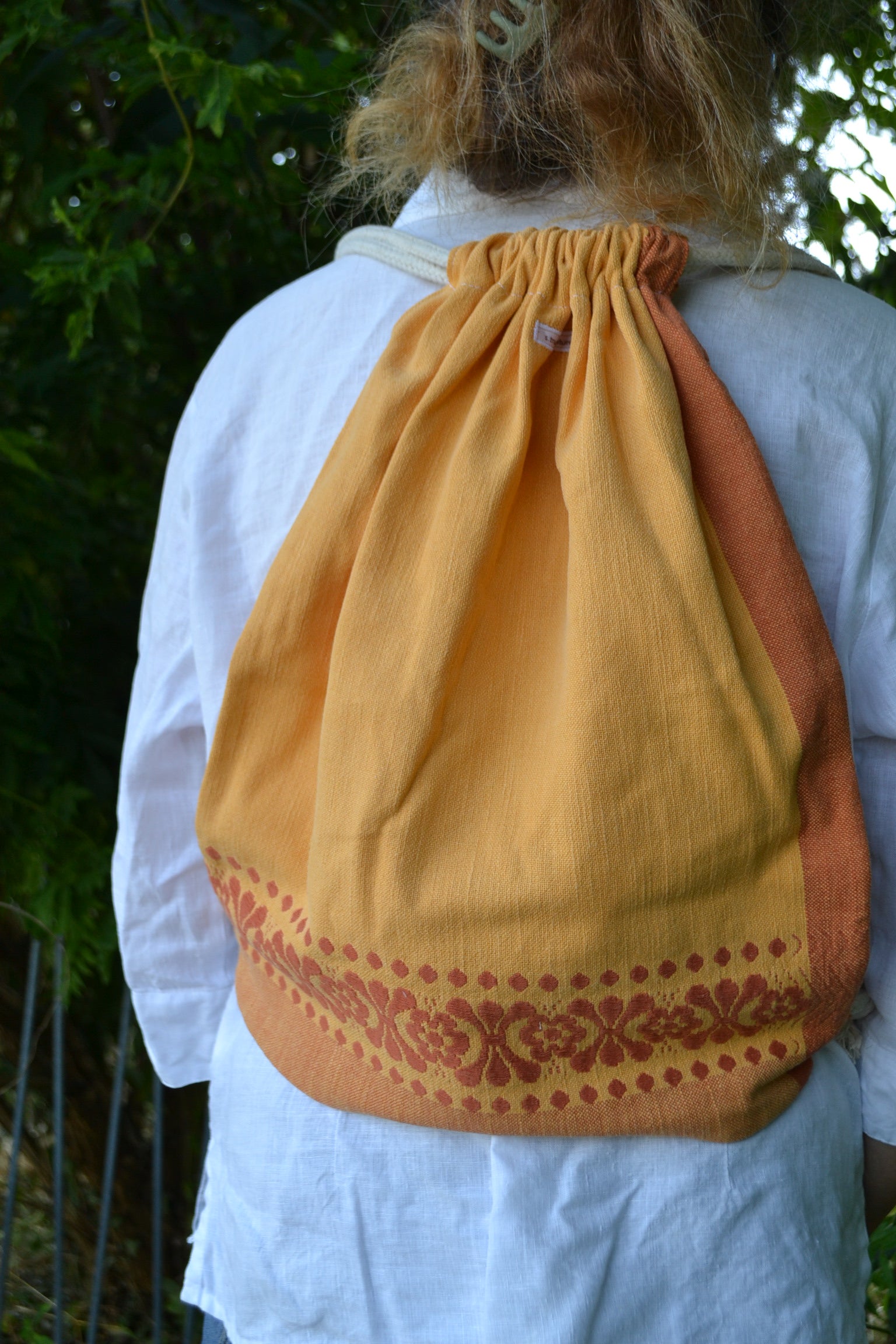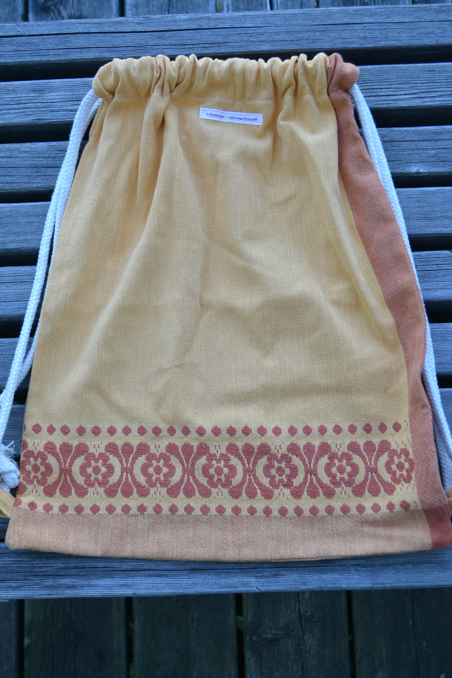 Für diesen Rucksack wurde der Stoff eines Tischtuches verwendet.