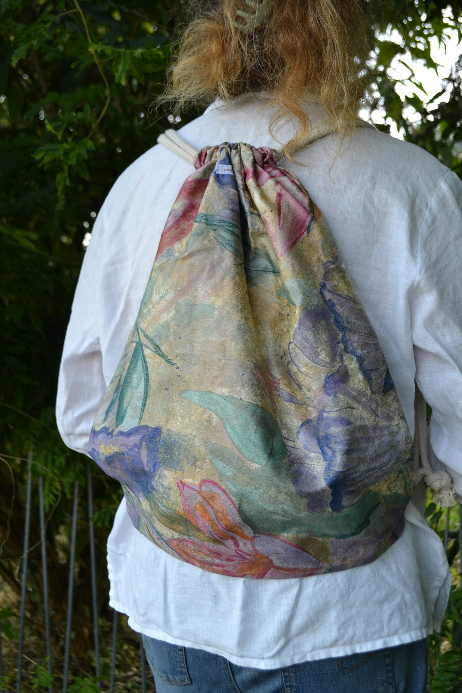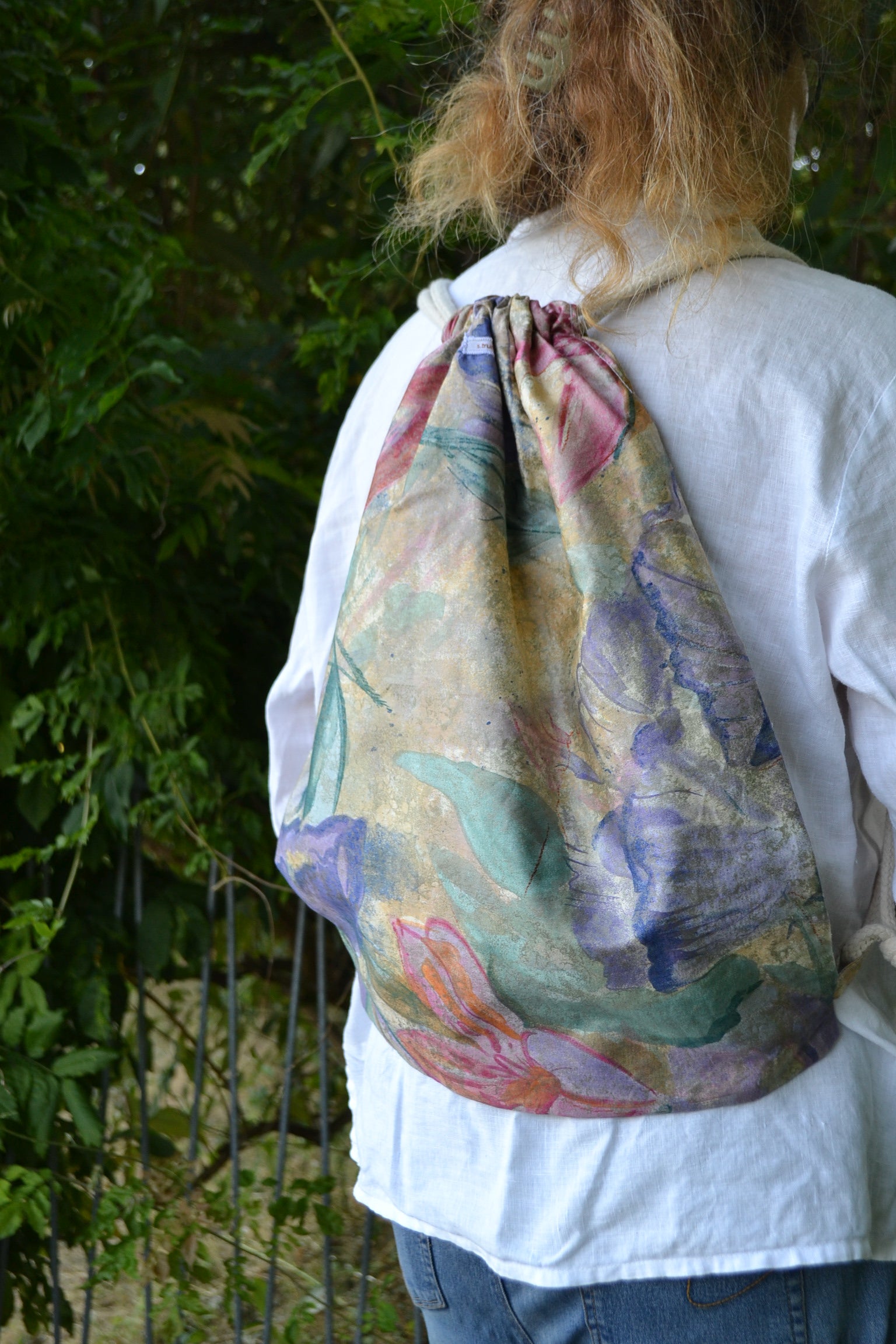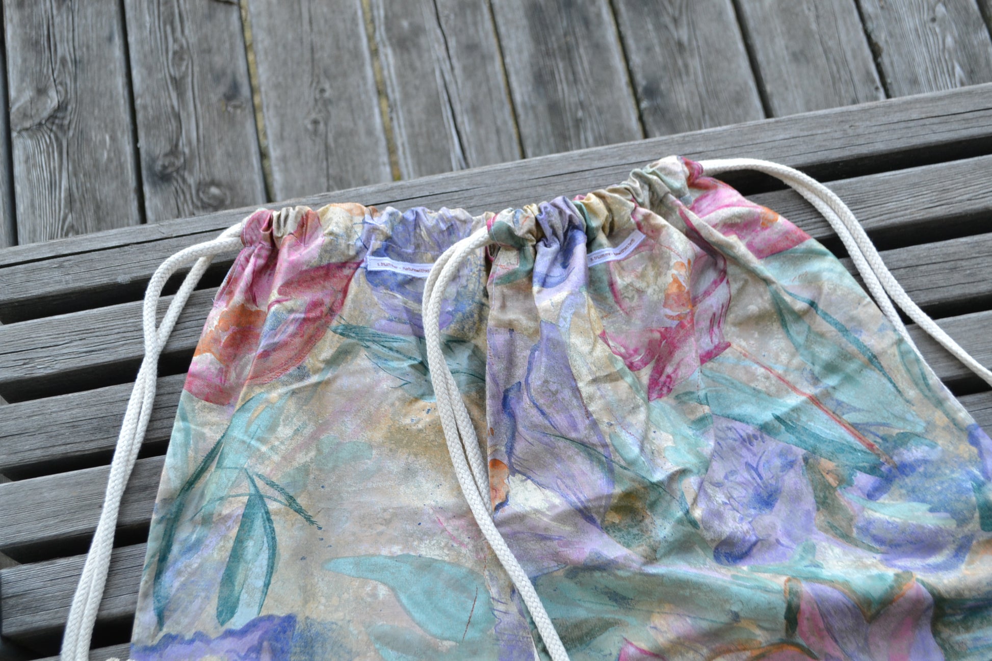 Der Beutelrucksack dunkles floral wurde aus einem floralen Stoff gefertigt. Ideal für den täglichen Gebrauch, als Accessoire oder als Geschenk für die Liebsten perfekt geeignet.