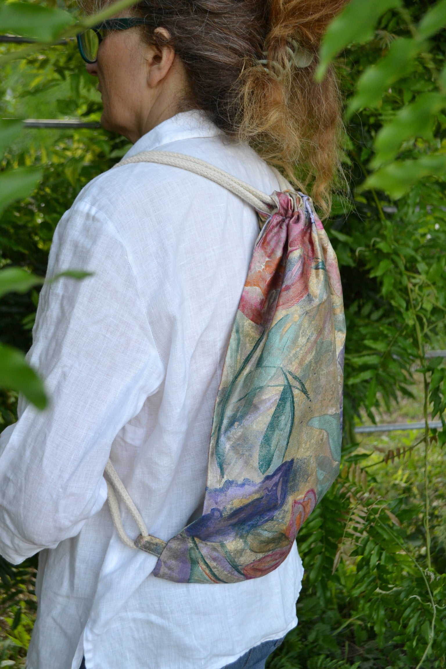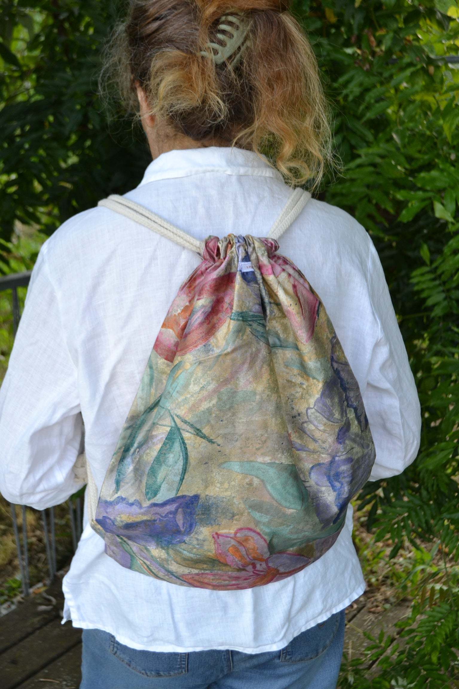 Handgemachte Stoffrucksäcke. Schenk alter Kleidung ein neues Leben als stylische, umweltfreundliche, handgemachte Tasche.