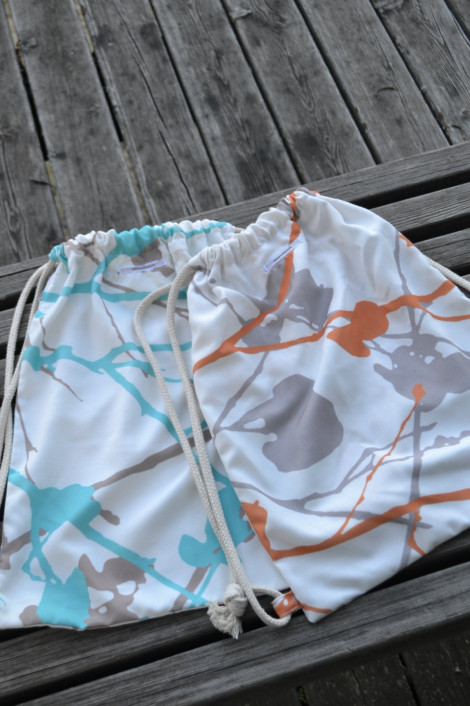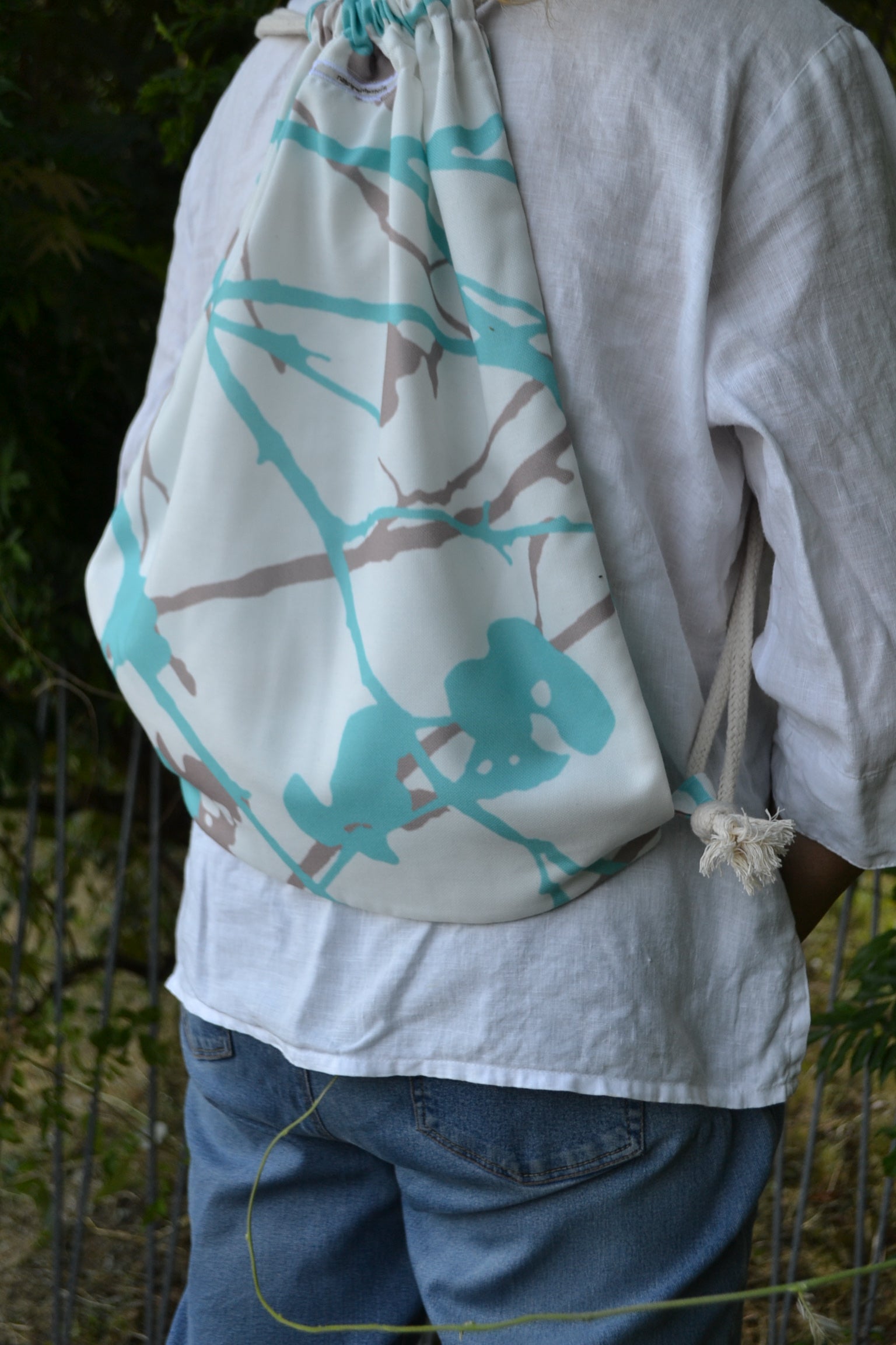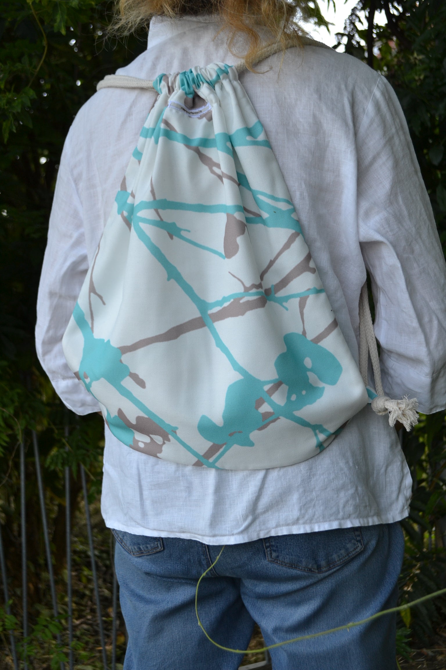 Der Beutelrucksack kleks mit blau wurde aus einem bedruckten Stoff gefertigt. Ideal für den täglichen Gebrauch, als Accessoire oder als Geschenk für die Liebsten perfekt geeignet.