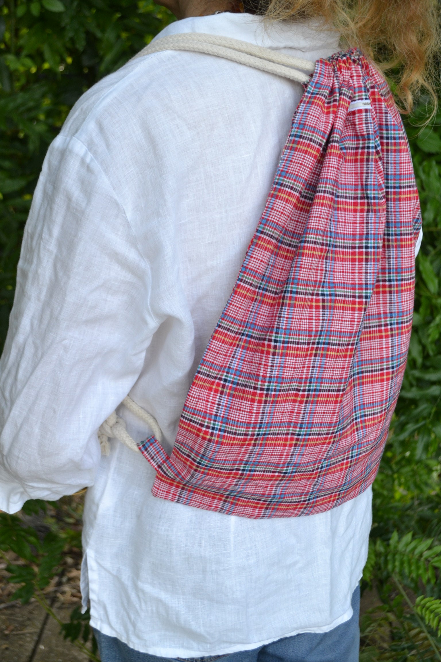 Handgemachte Stoffrucksäcke. Schenk alter Kleidung ein neues Leben als stylische, umweltfreundliche, handgemachte Tasche.