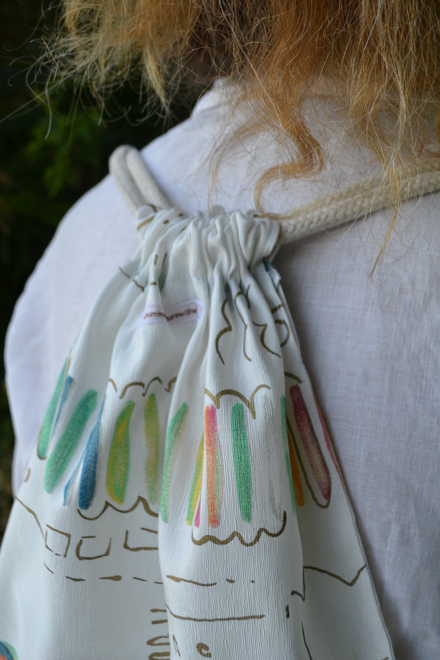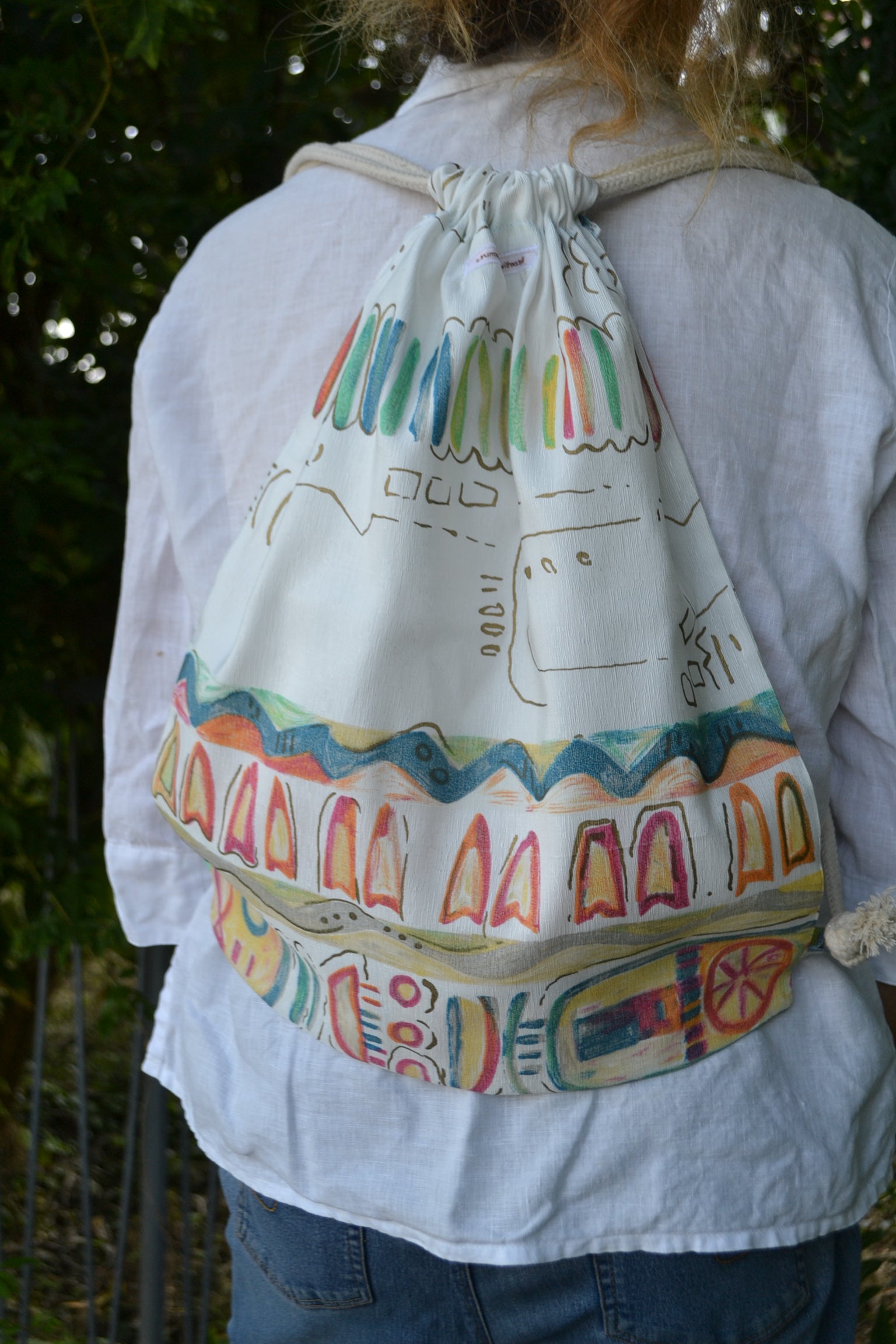 Handgemachte Stoffrucksäcke. Schenk alter Kleidung ein neues Leben als stylische, umweltfreundliche, handgemachte Tasche.
