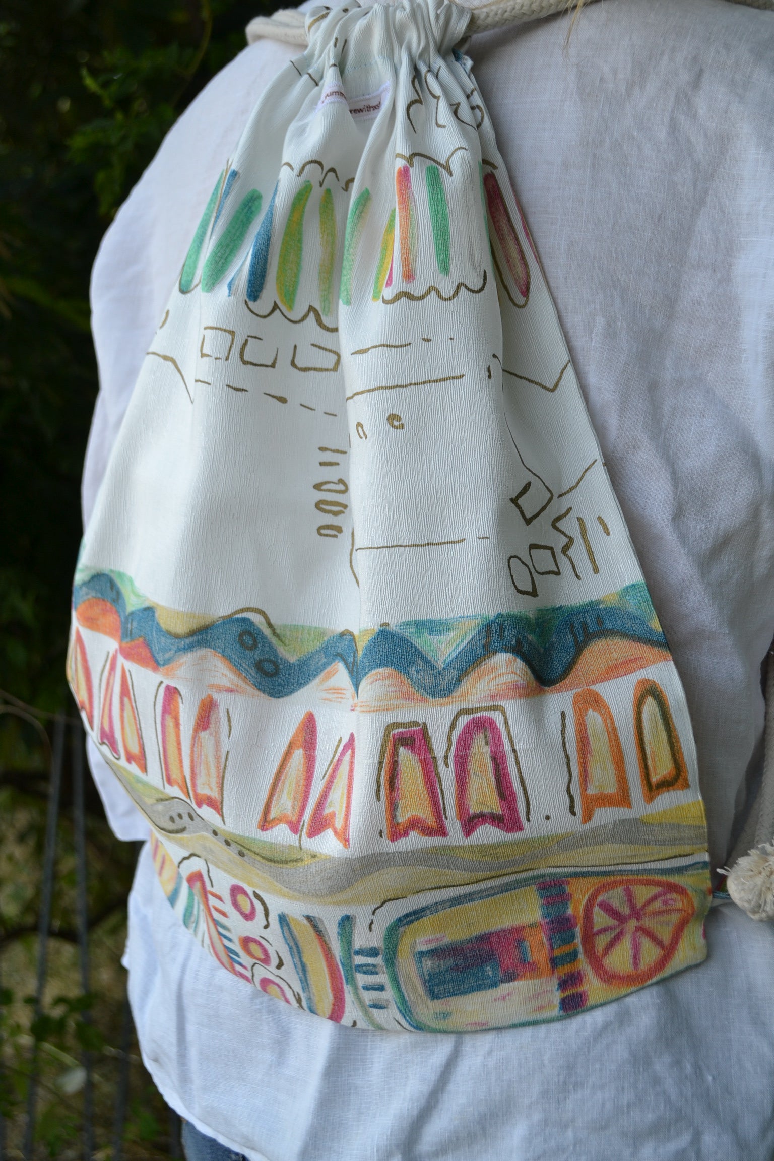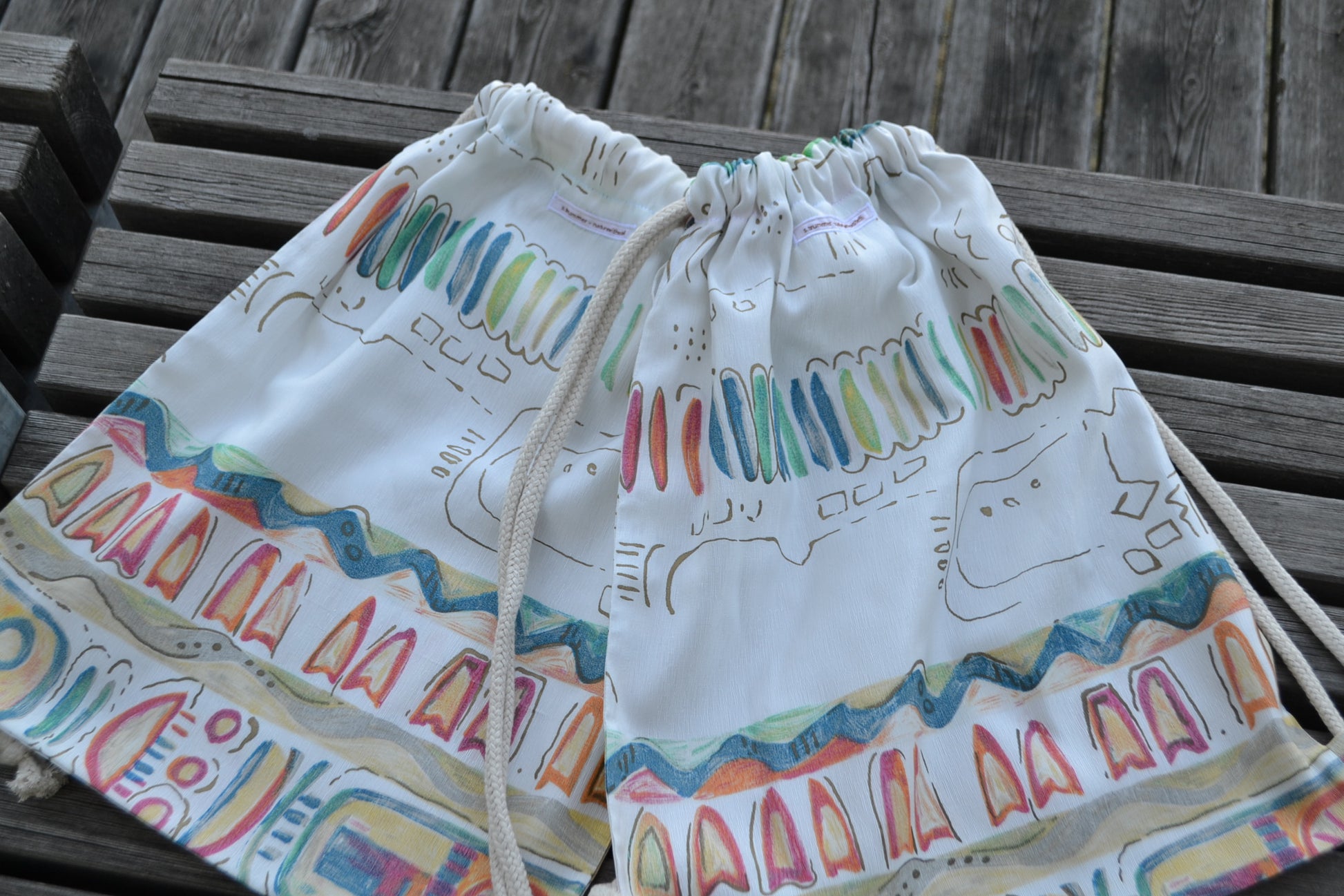 Der Beutelrucksack white art mit blau wurde aus einem kunstvollen bedruckten Stoff gefertigt. Ideal für den täglichen Gebrauch, als Accessoire oder als Geschenk für die Liebsten perfekt geeignet.