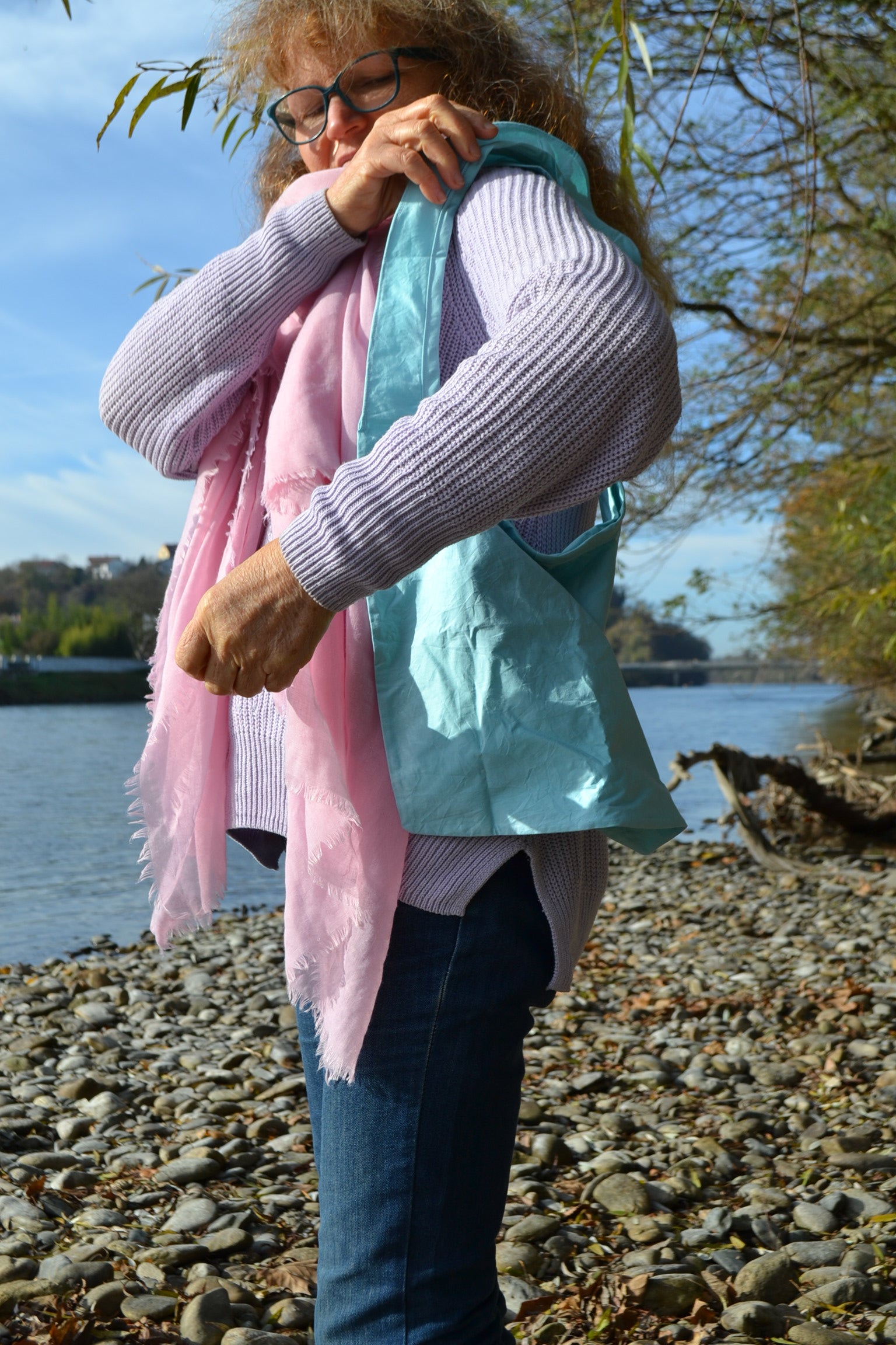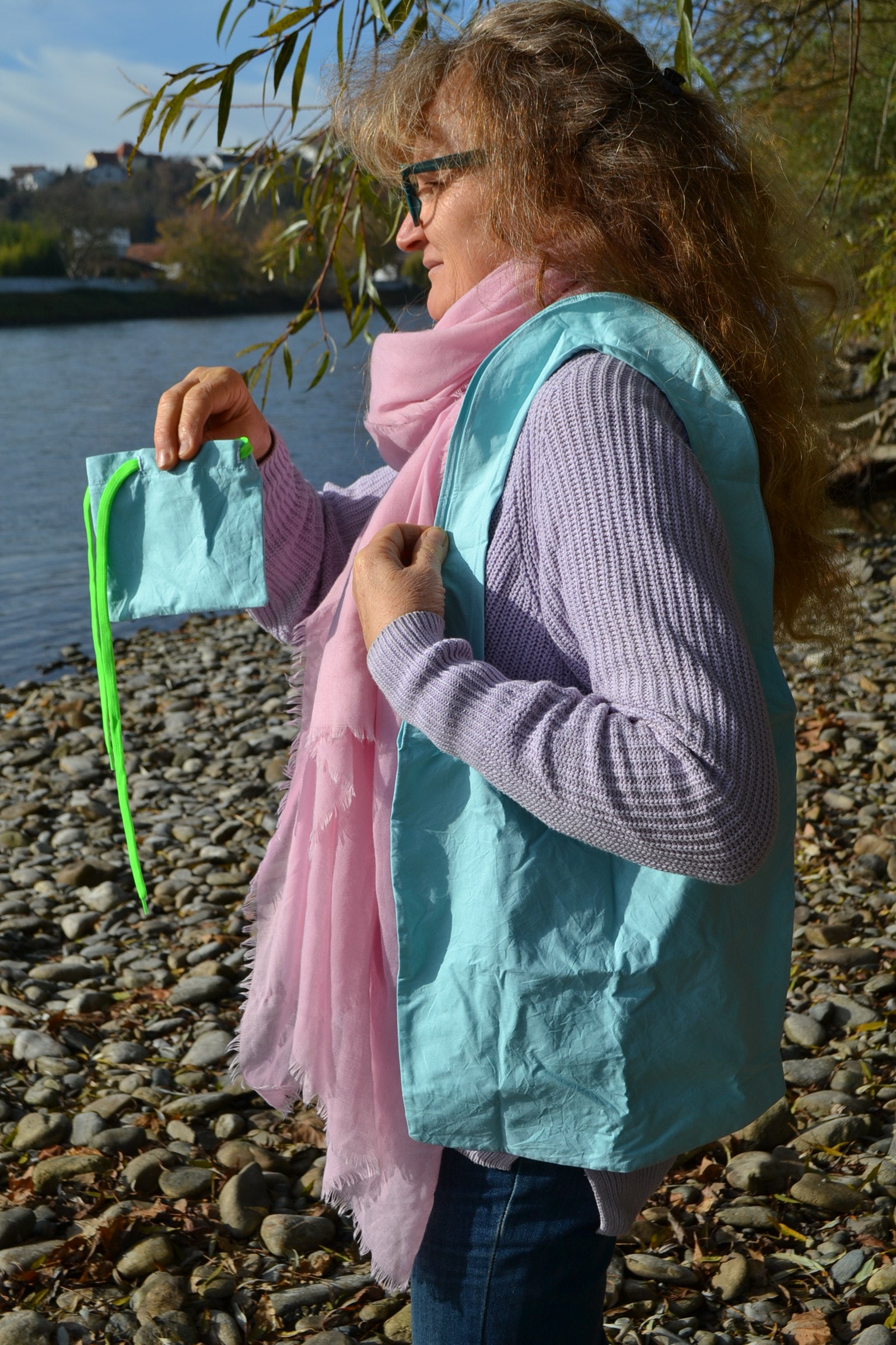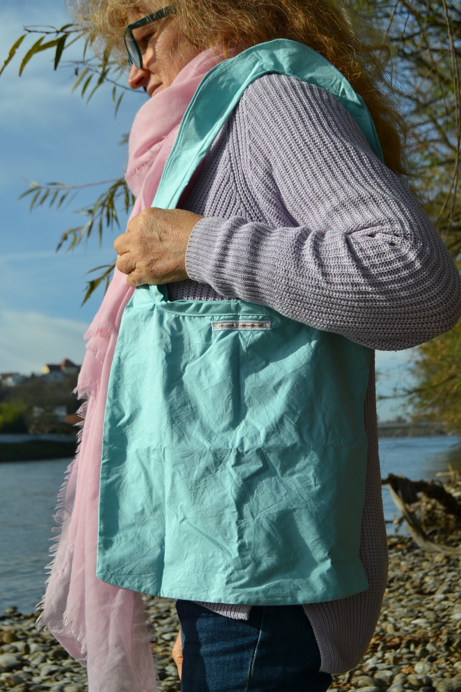 Die faltbare Einkaufstasche Türkise ist ideal für den Fall, dass man beim Einkaufen doch mehr Platz braucht! Einfach den Beutel mit der Einkaufstasche darin mit dem secondhand Schnürsenkel an der normalen Handtasche anbringen oder einfach rein tun und schon hat man für alle Fälle eine zusätzliche platzsparende Tasche dabei!