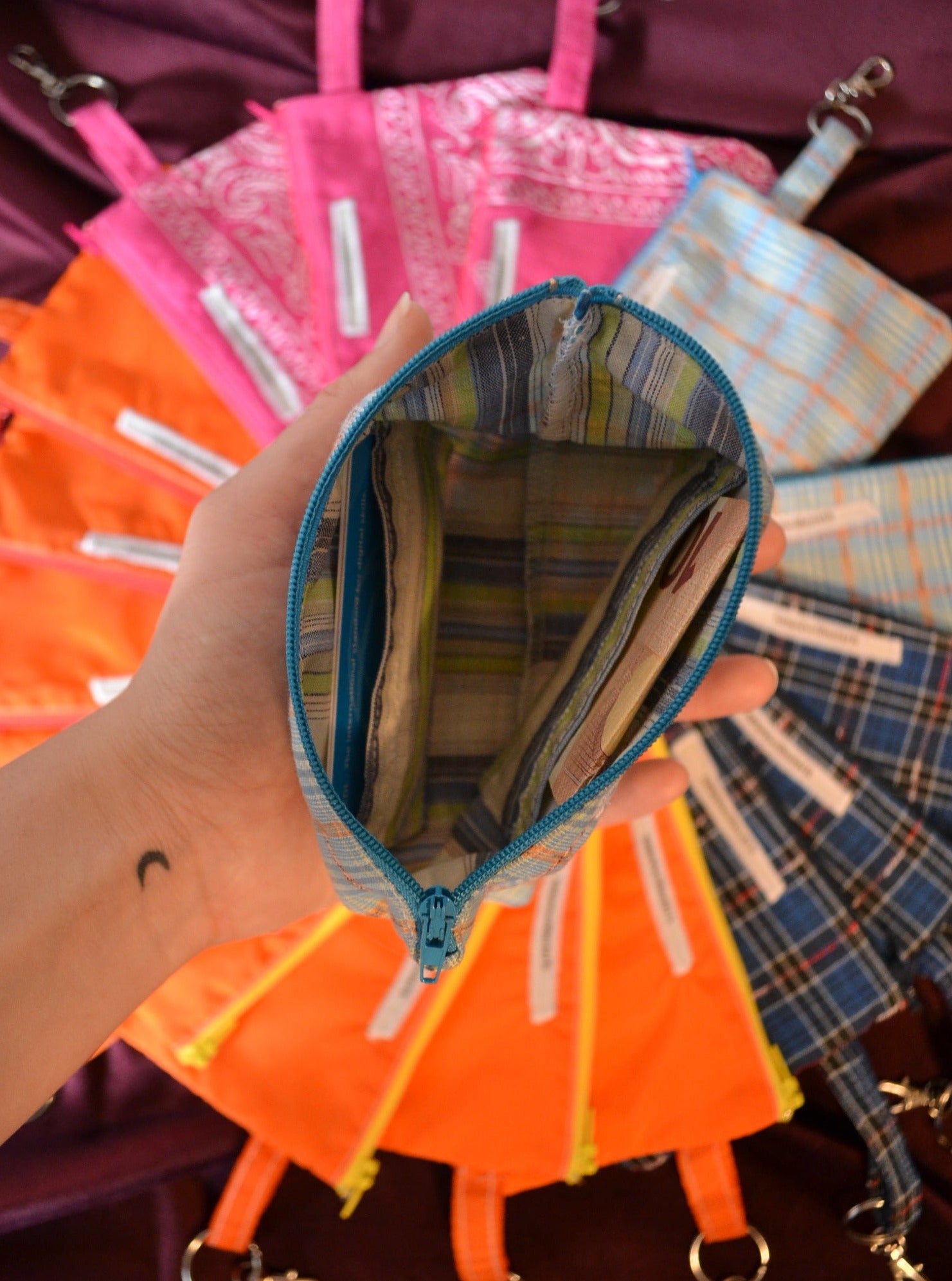 Diese Geldbörsen wurden aus einer Regenjacke und Stoffreste gefertigt!