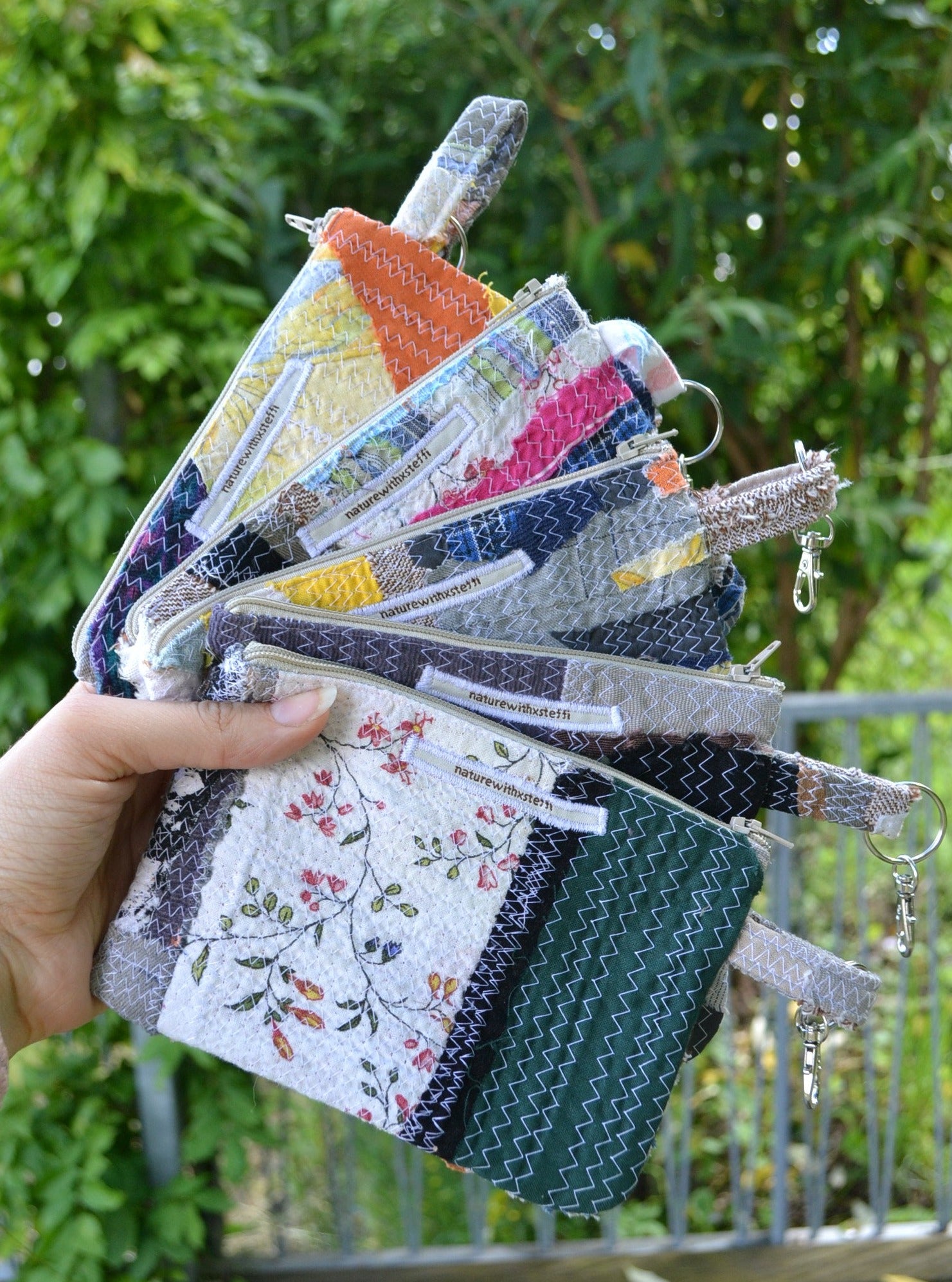 Diese Geldbörsen wurden aus Stoffresten gefertigt, um sie "zero waste" ohne Abfall, zu machen.
