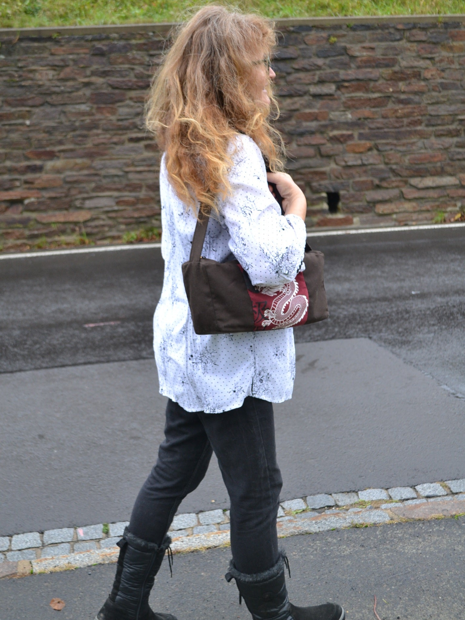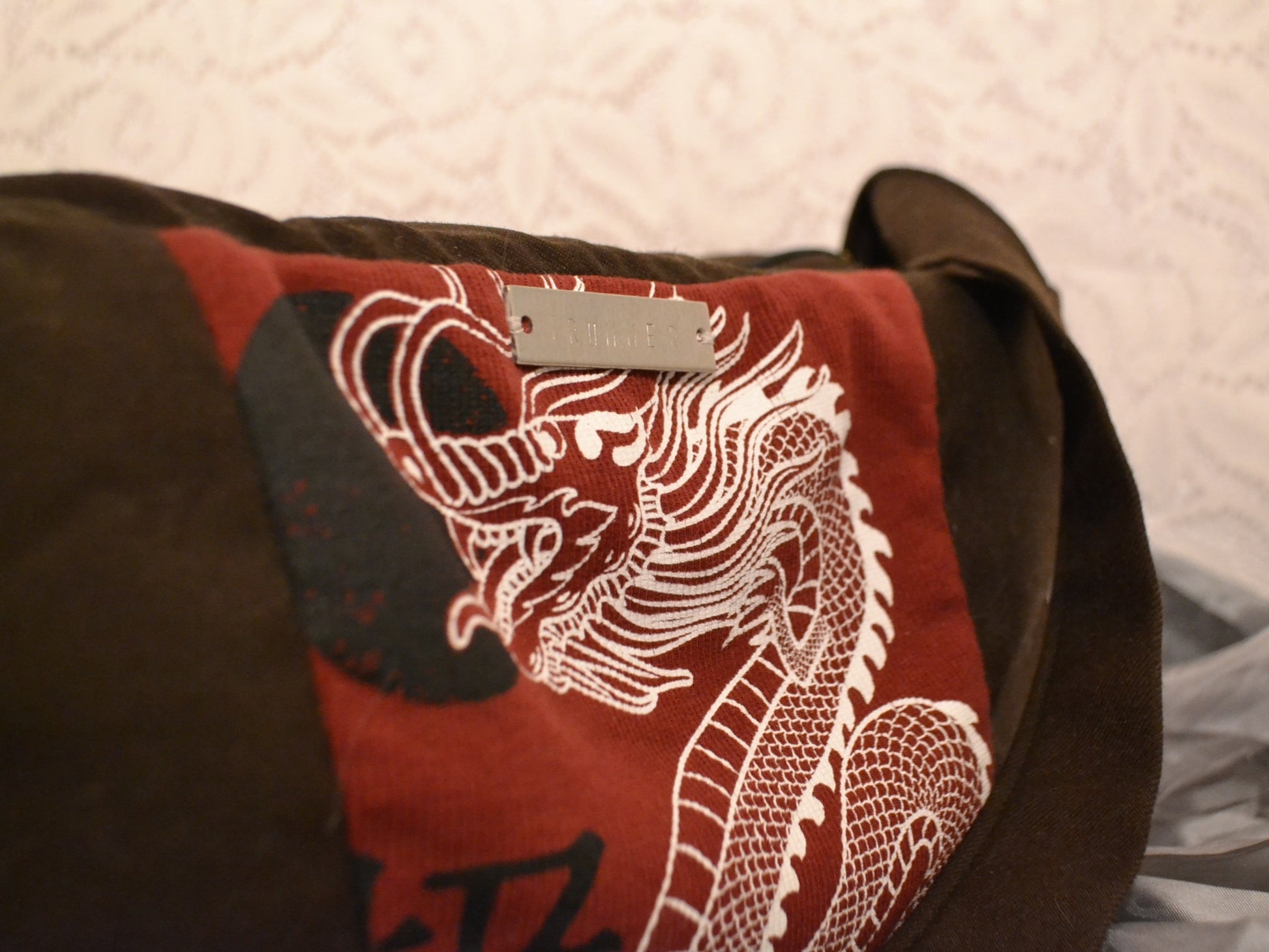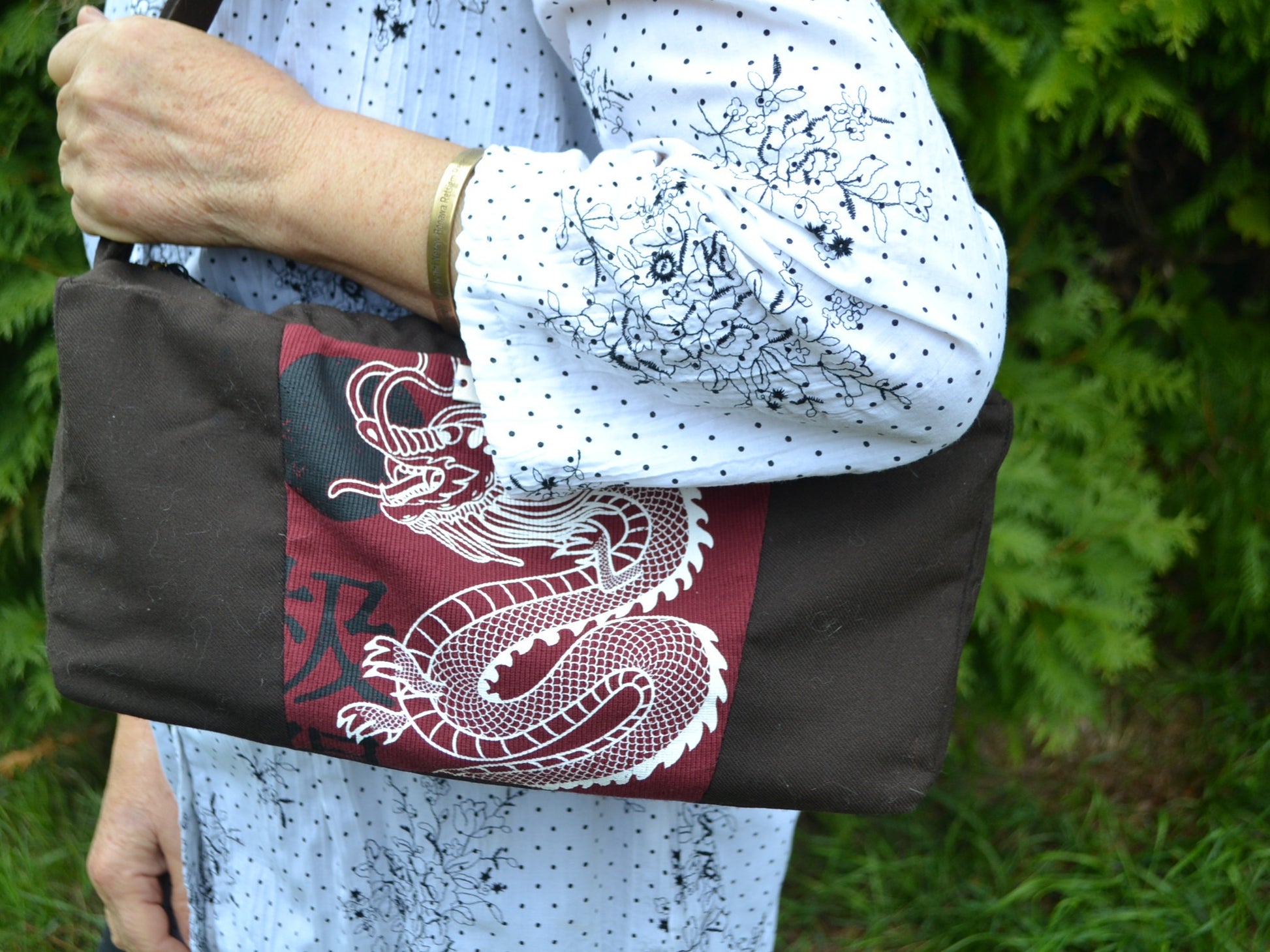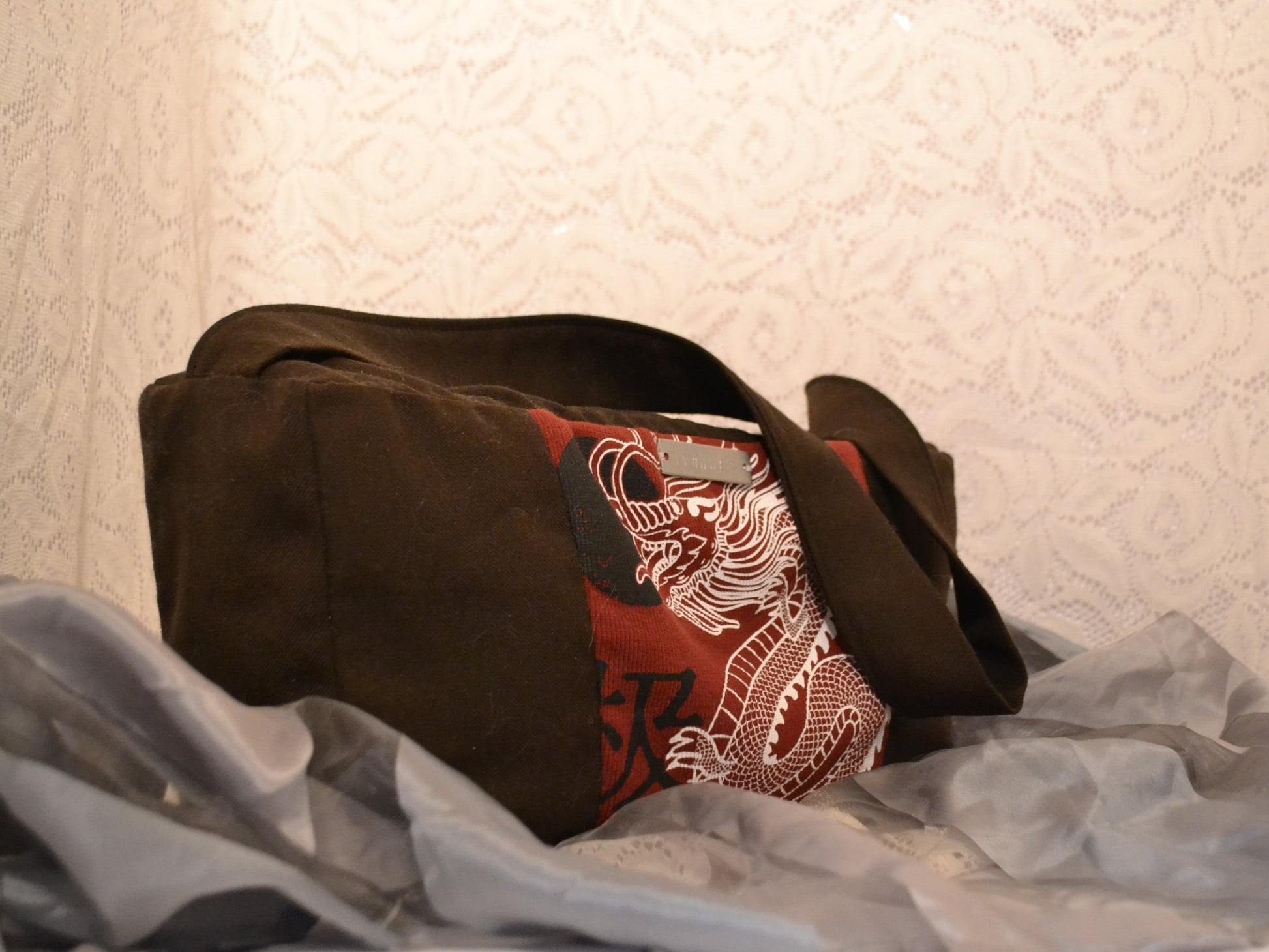 Diese Handtasche, aus zweiter Hand Stoffen und Kleidung, wurde mit großer Sorgfalt in Österreich handgefertigt. Sie ist die perfekte Wahl für jeden Anlass, von Familientreffen bis hin zu Party machen in Clubs. Sie bietet ausreichend Platz für alle persönlichen Gegenstände, die man mit sich führen möchte. Das Drachenmotiv auf der Vorderseite ist ein wahres Highlight und ein Hingucker bei jeder Veranstaltung!