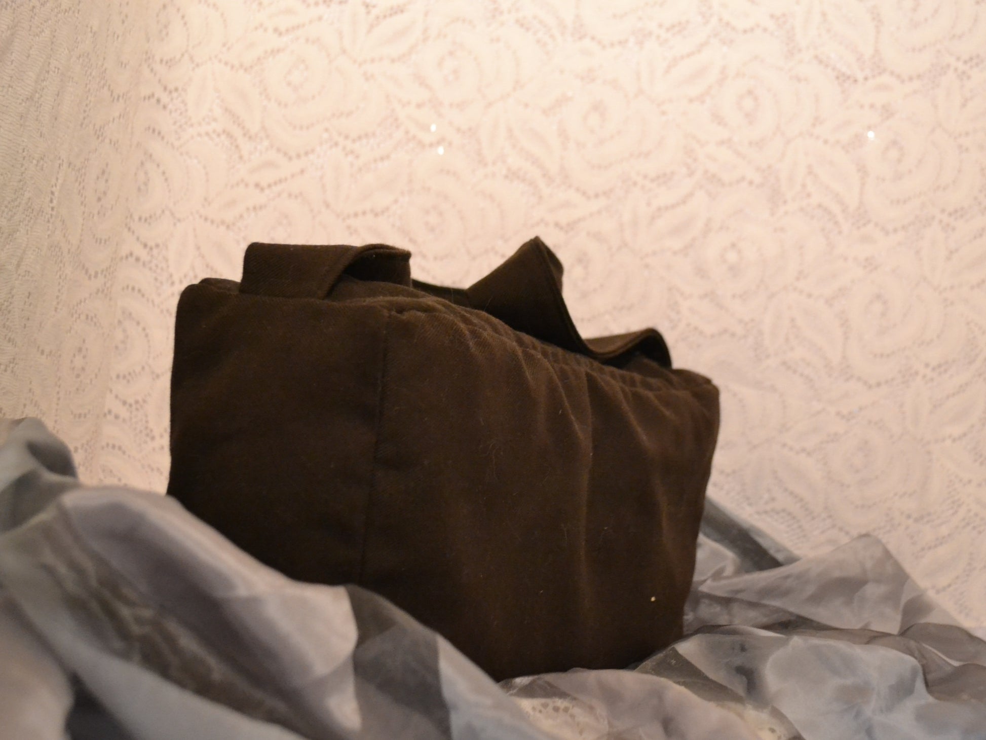 Für diese Tasche wurde brauner Stoff, Innenstoff und das Motiv eines T-Shirts verwendet.