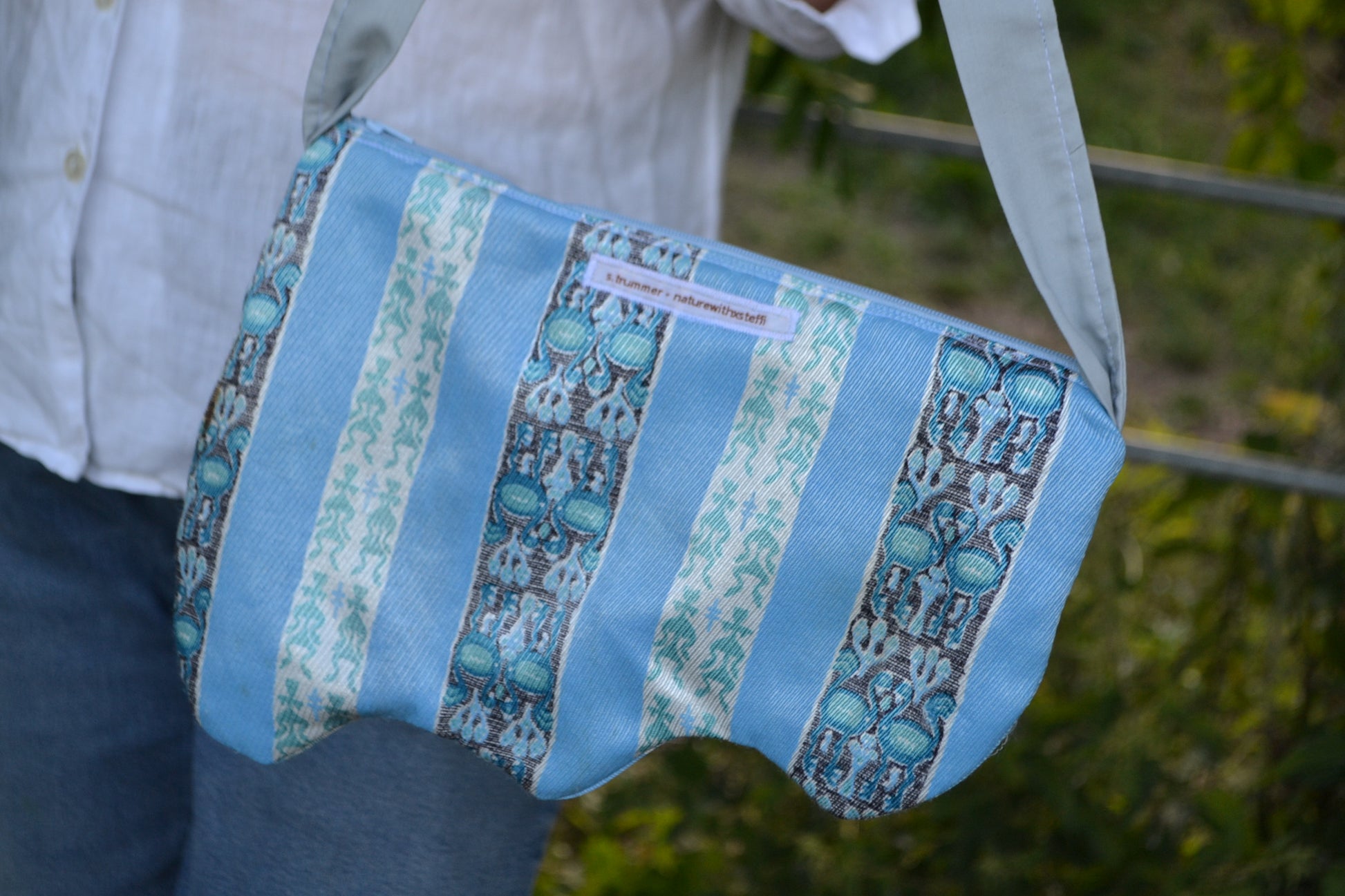 Die Handtasche "drippy" in hellblau wurde in Österreich handgefertigt und überzeugt durch ihre sorgfältige Verarbeitung. Der innen verarbeitete Futterstoff gibt der Tasche einen edlen Look.