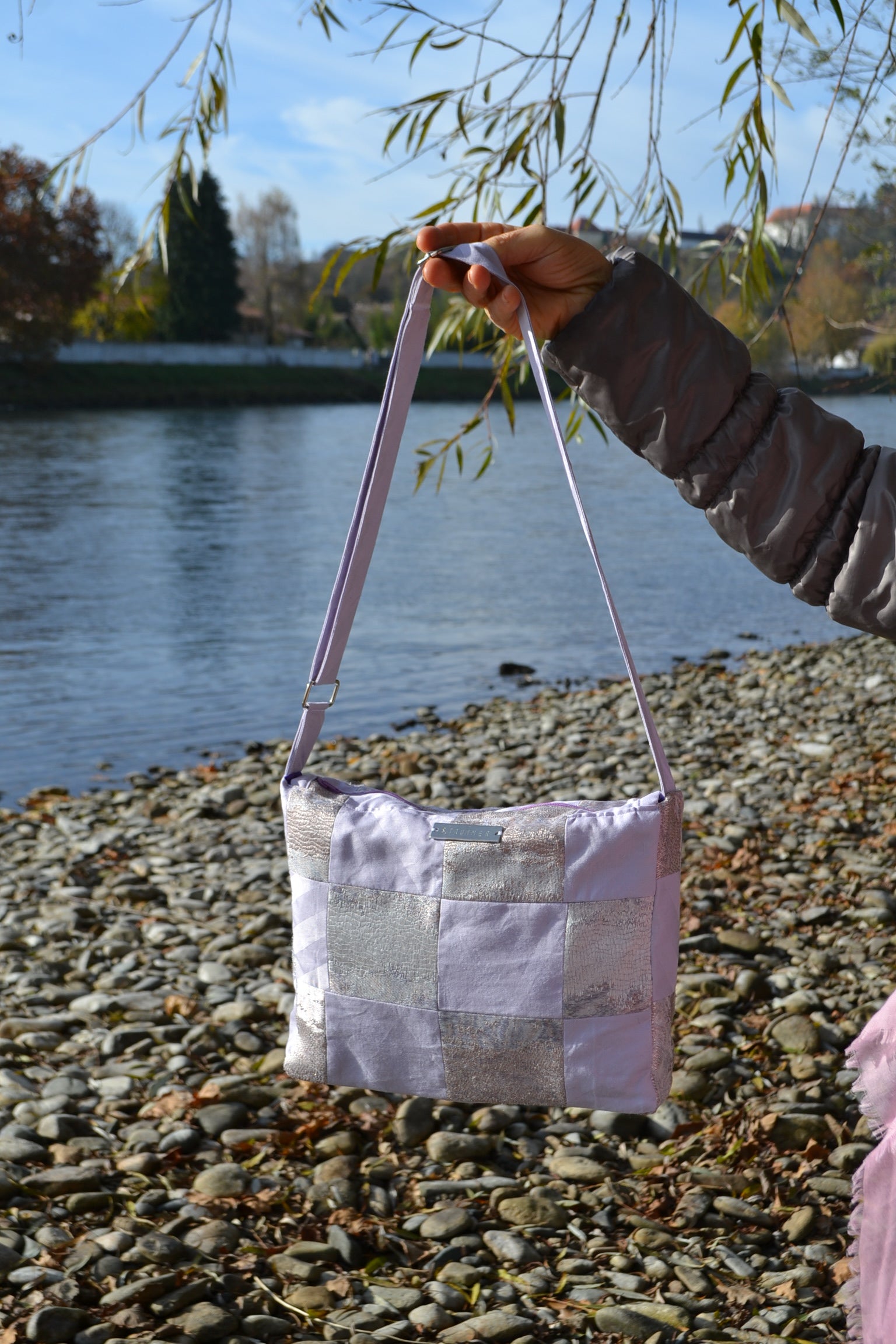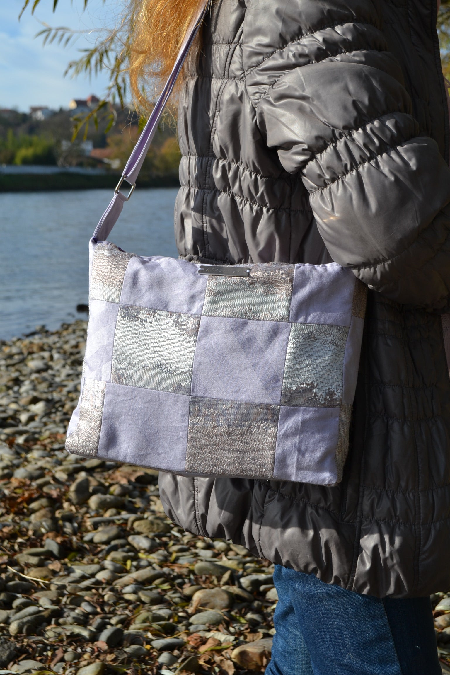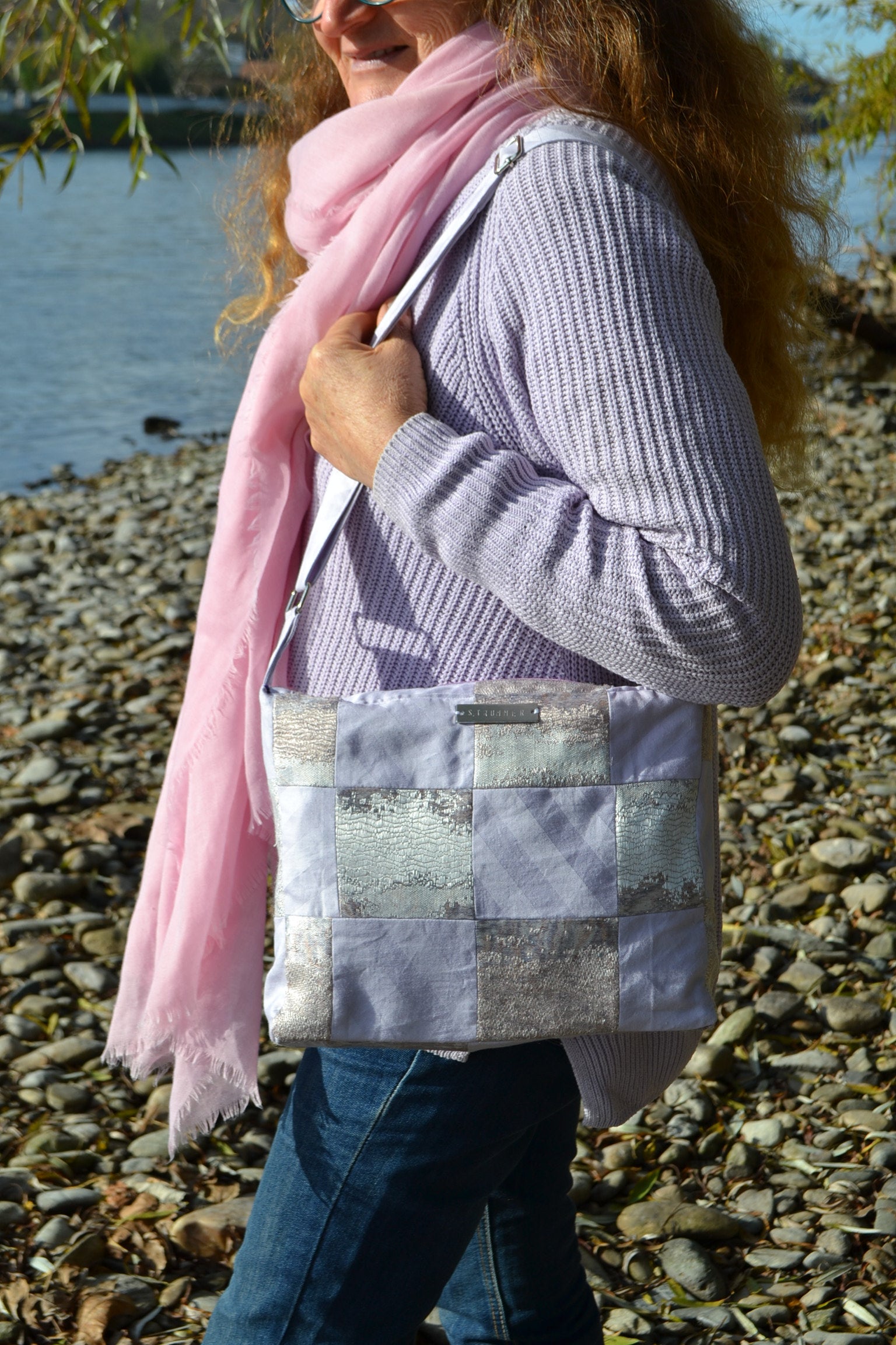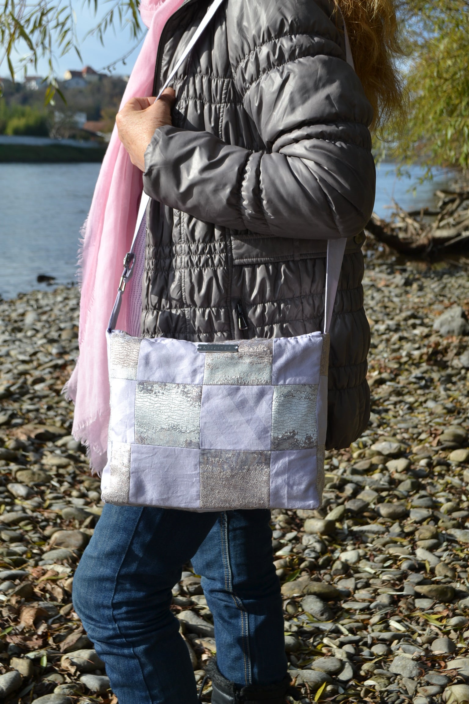 Die Handtasche "p.u.b. in Lilac Patchwork" wurde in Österreich handgefertigt und überzeugt durch ihre sorgfältige Verarbeitung. Der innen verarbeitete Stoff gibt der Tasche einen glamourösen Look.