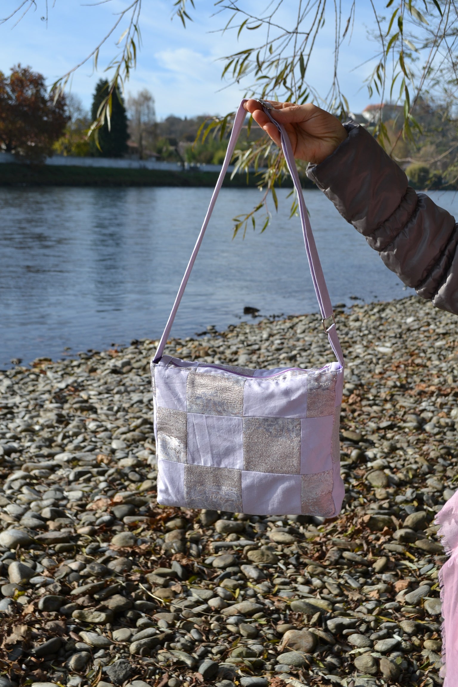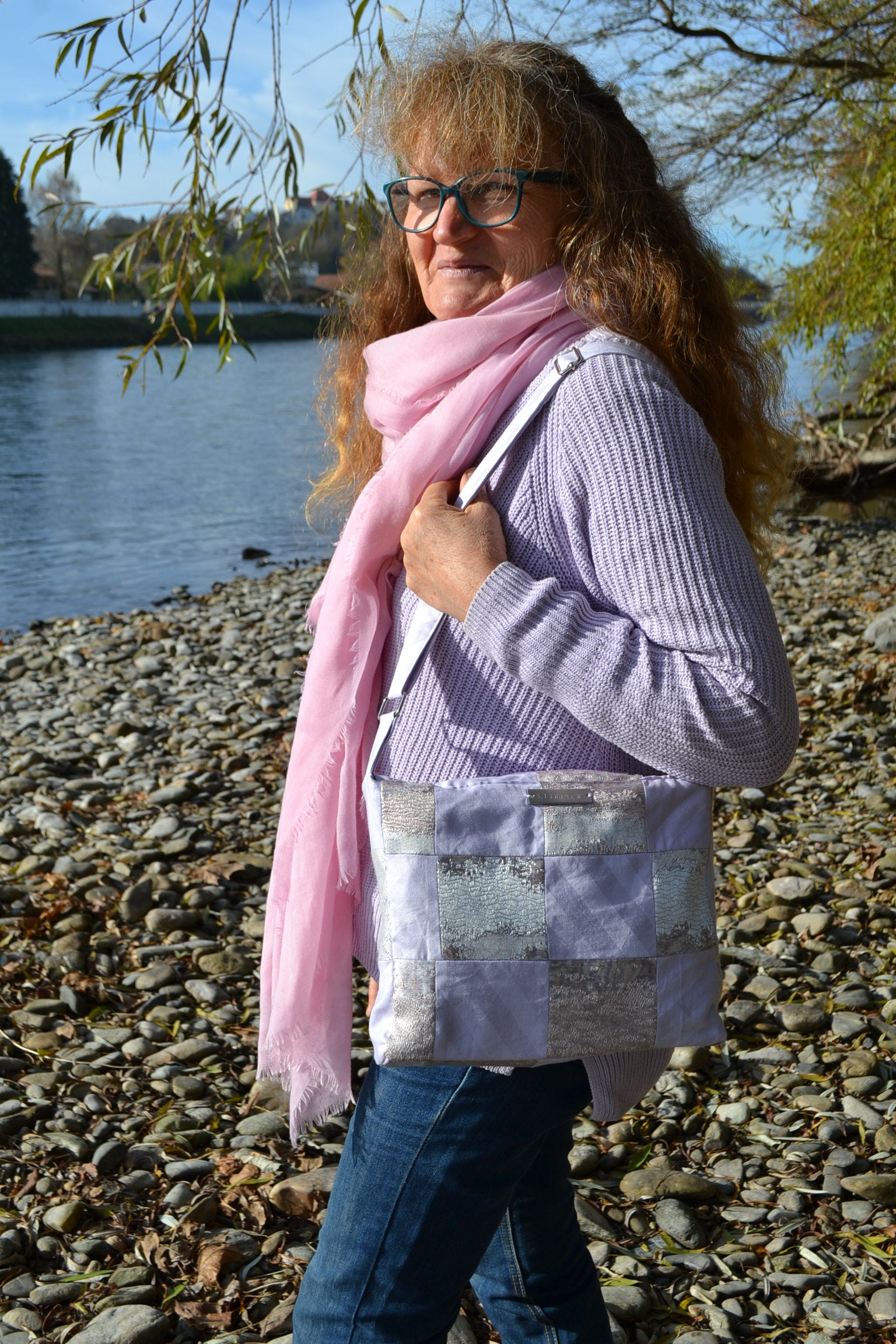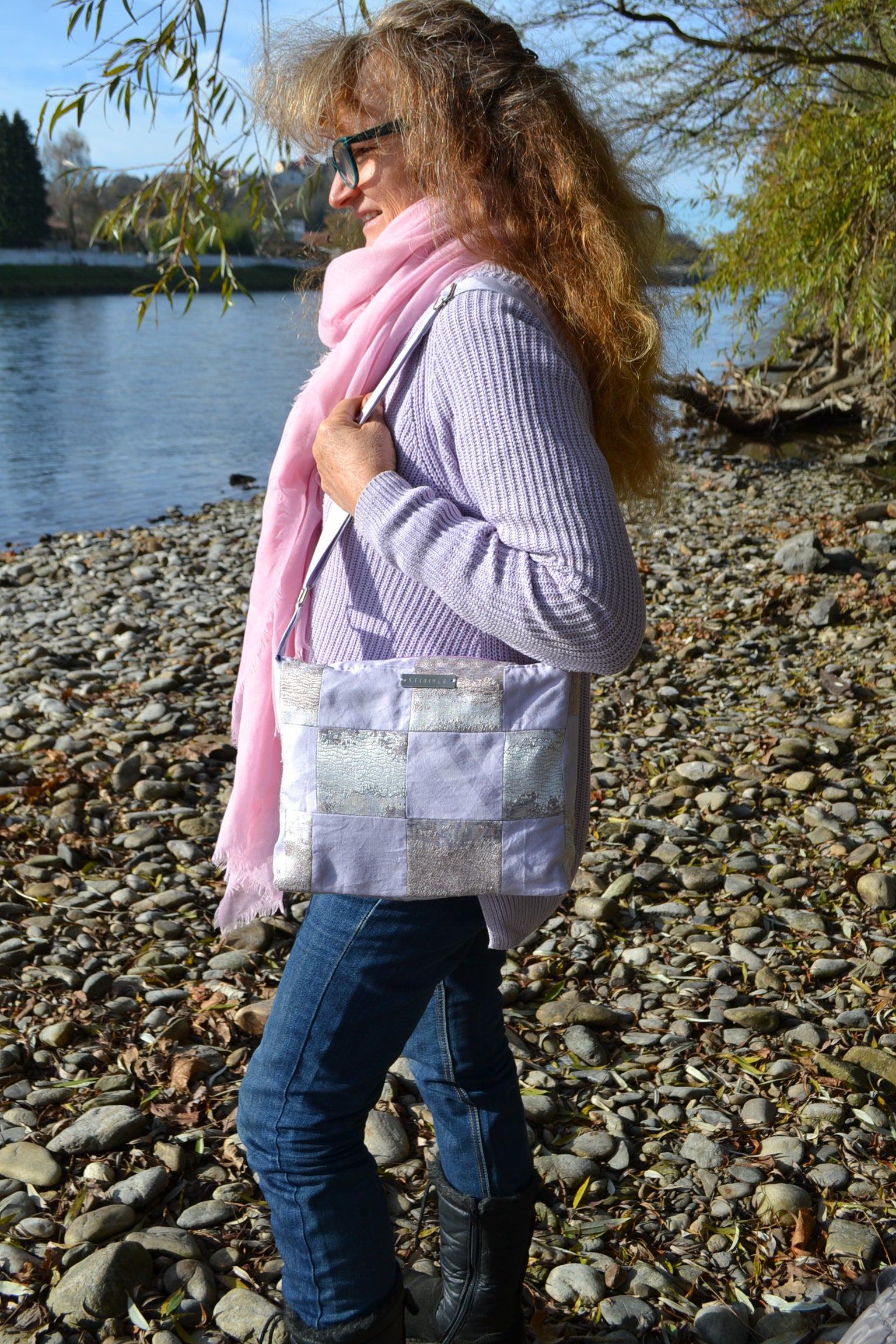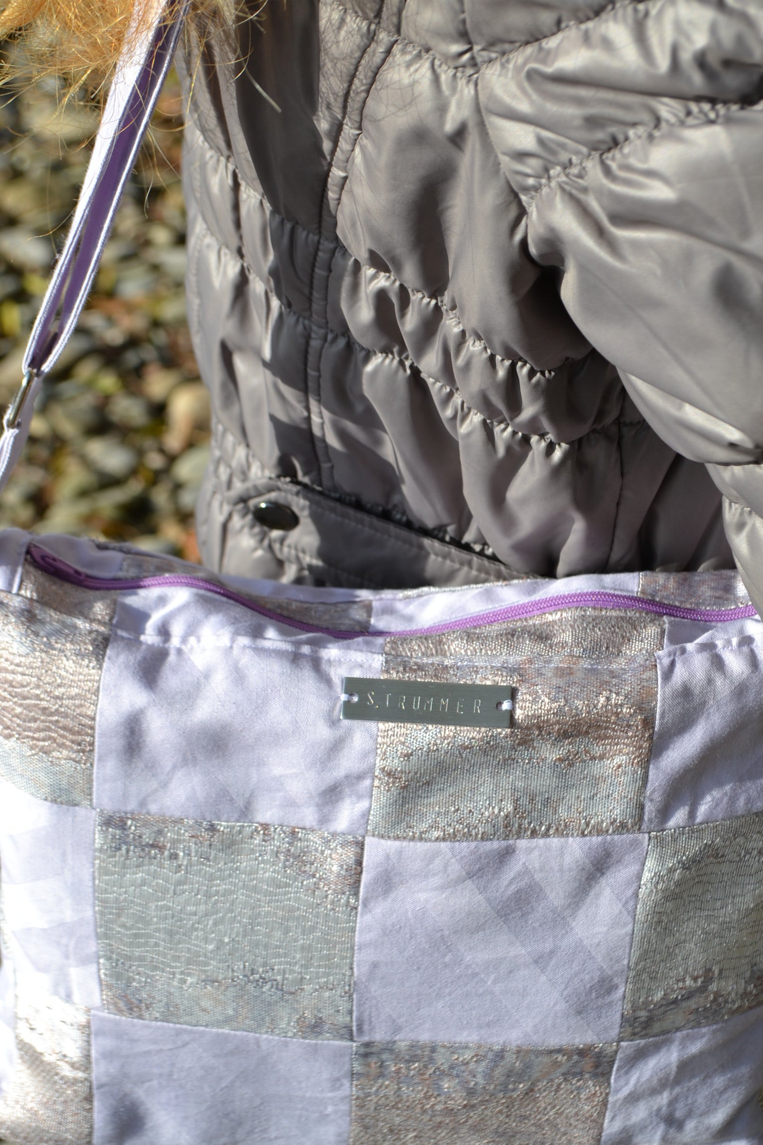 Die Handtasche "p.u.b. in Lilac Patchwork" wurde in Österreich handgefertigt und überzeugt durch ihre sorgfältige Verarbeitung. Der innen verarbeitete Stoff gibt der Tasche einen glamourösen Look.