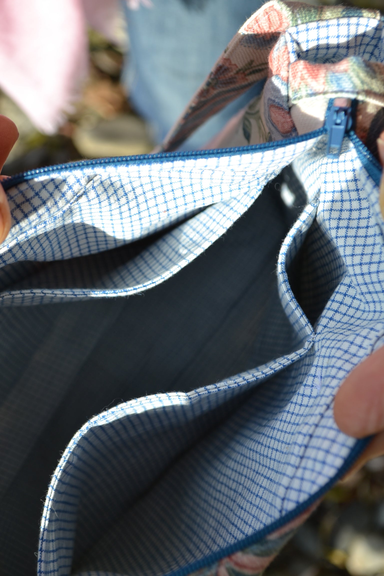 Diese Tasche wurde aus secondhand Stoff gefertigt.