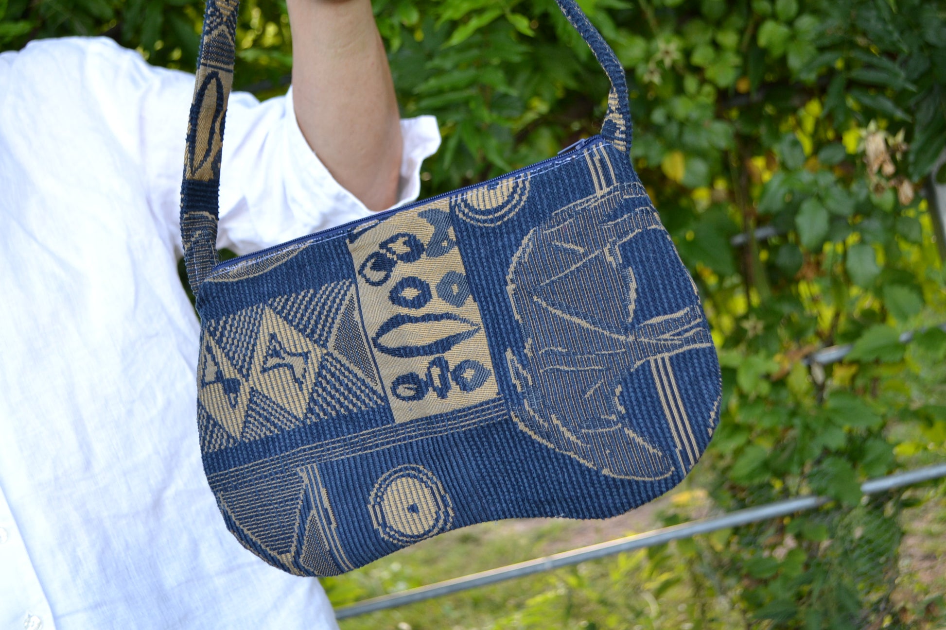 Diese Handtasche, aus zweiter Hand Stoffen und Kleidung, wurde mit großer Sorgfalt in Österreich handgefertigt. Sie ist die perfekte Wahl für jeden Anlass, von Familientreffen bis hin zu Party machen in Clubs. Sie bietet Platz für alle persönlichen Gegenstände, die man mit sich führen möchte.