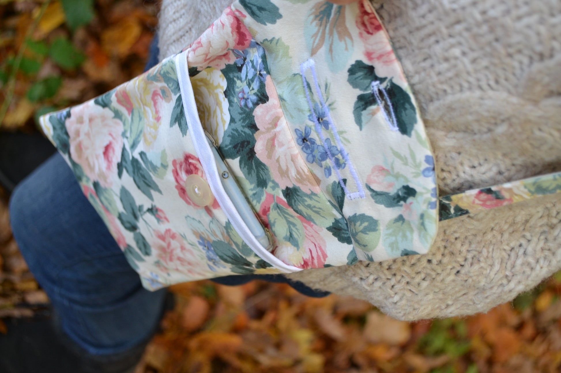 Bei der vorderen Tasche wurde doppelter Stoff genommen, damit ihr Handy sicher und stabil verstaut werden kann.