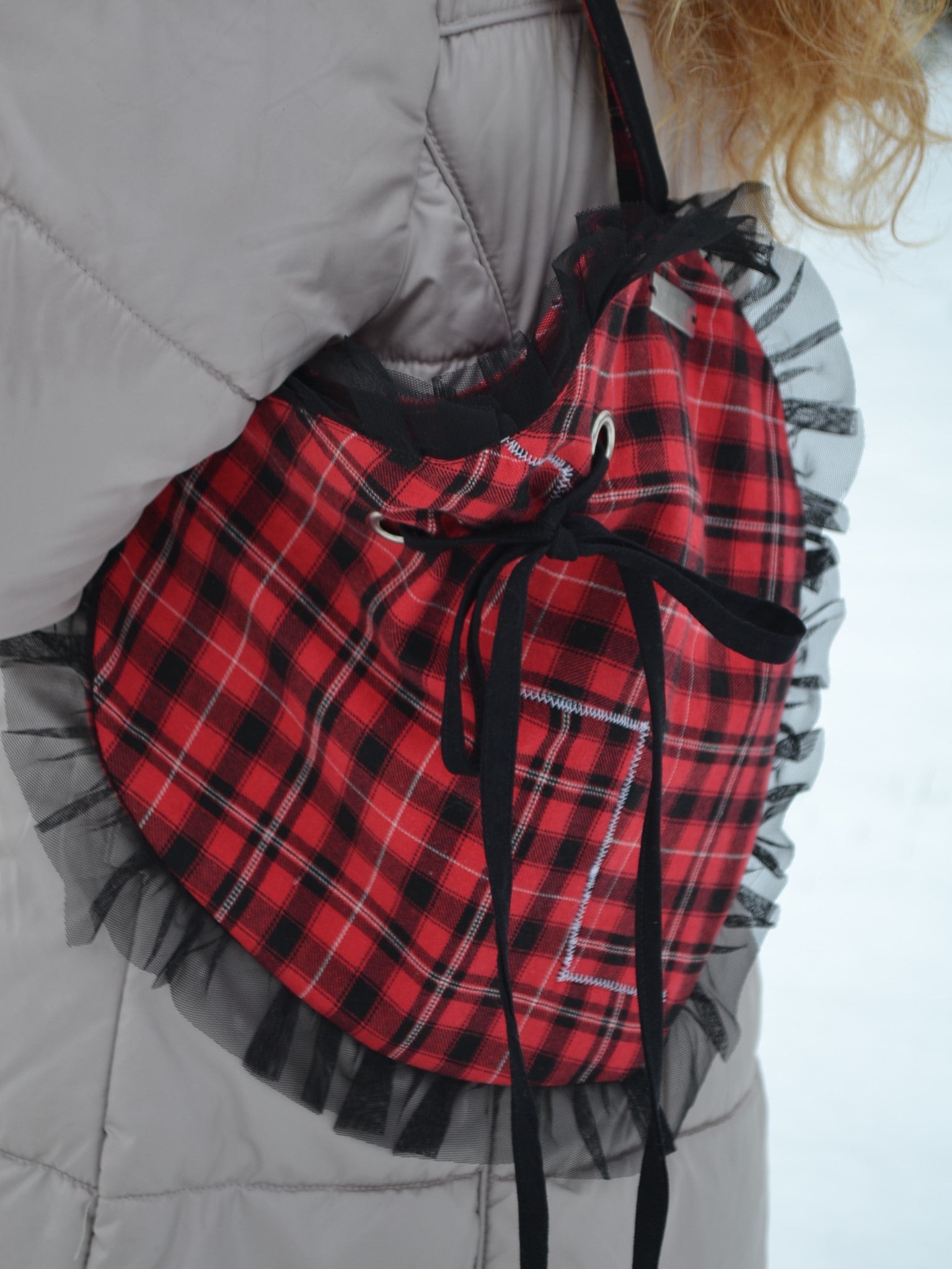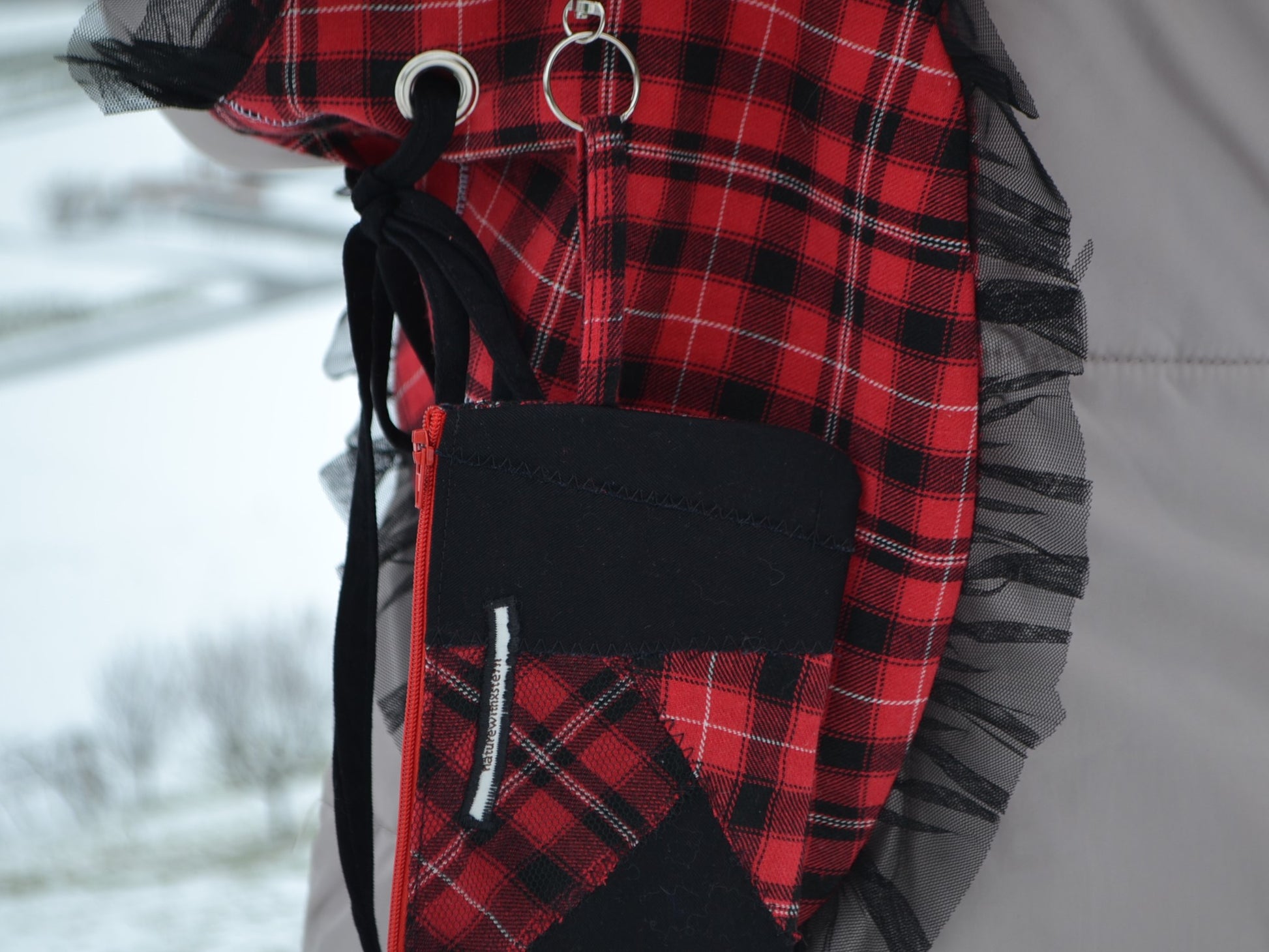 Diese Tasche wurde aus einem Rock und secondhand Futterstoff genäht.