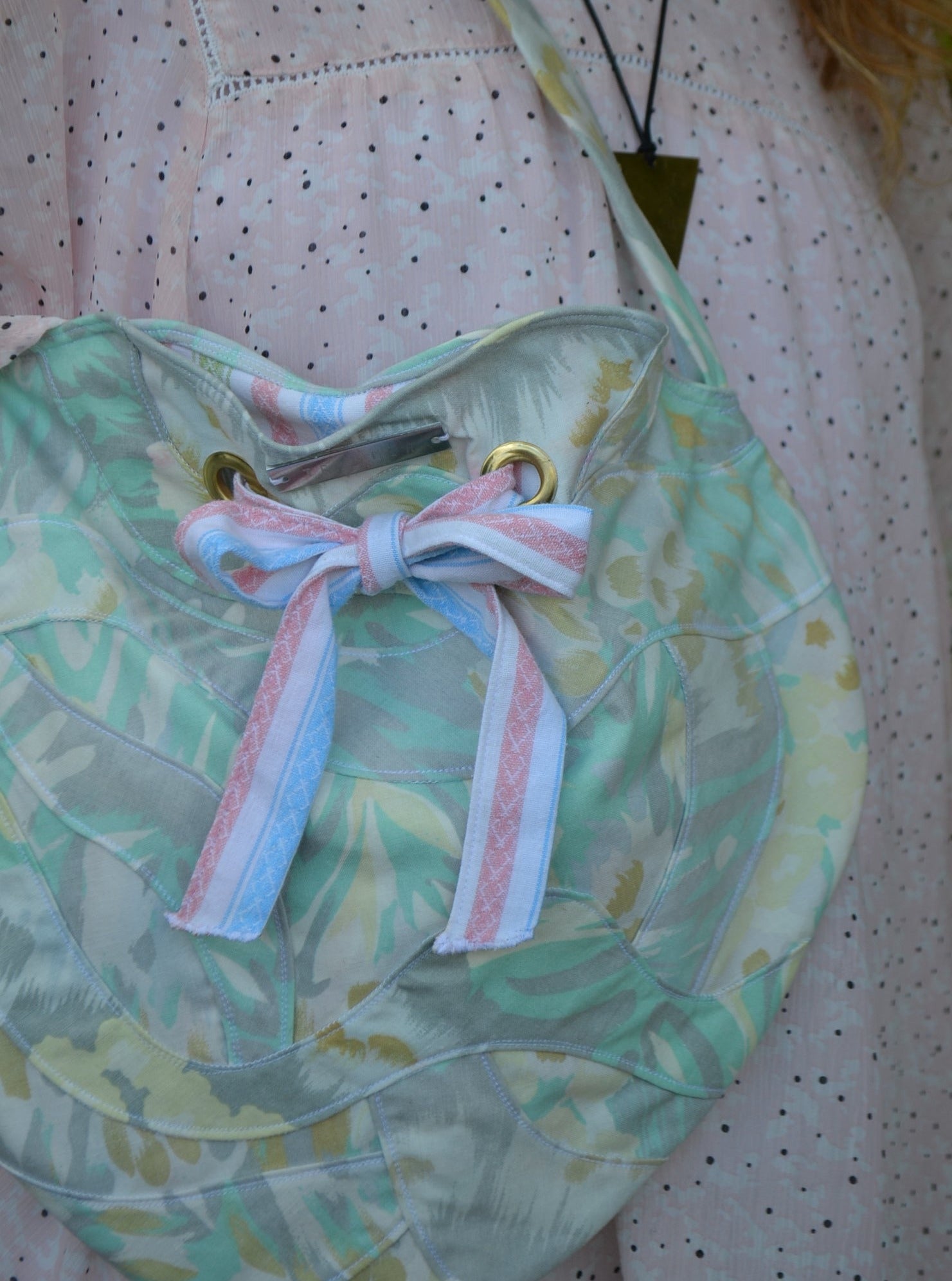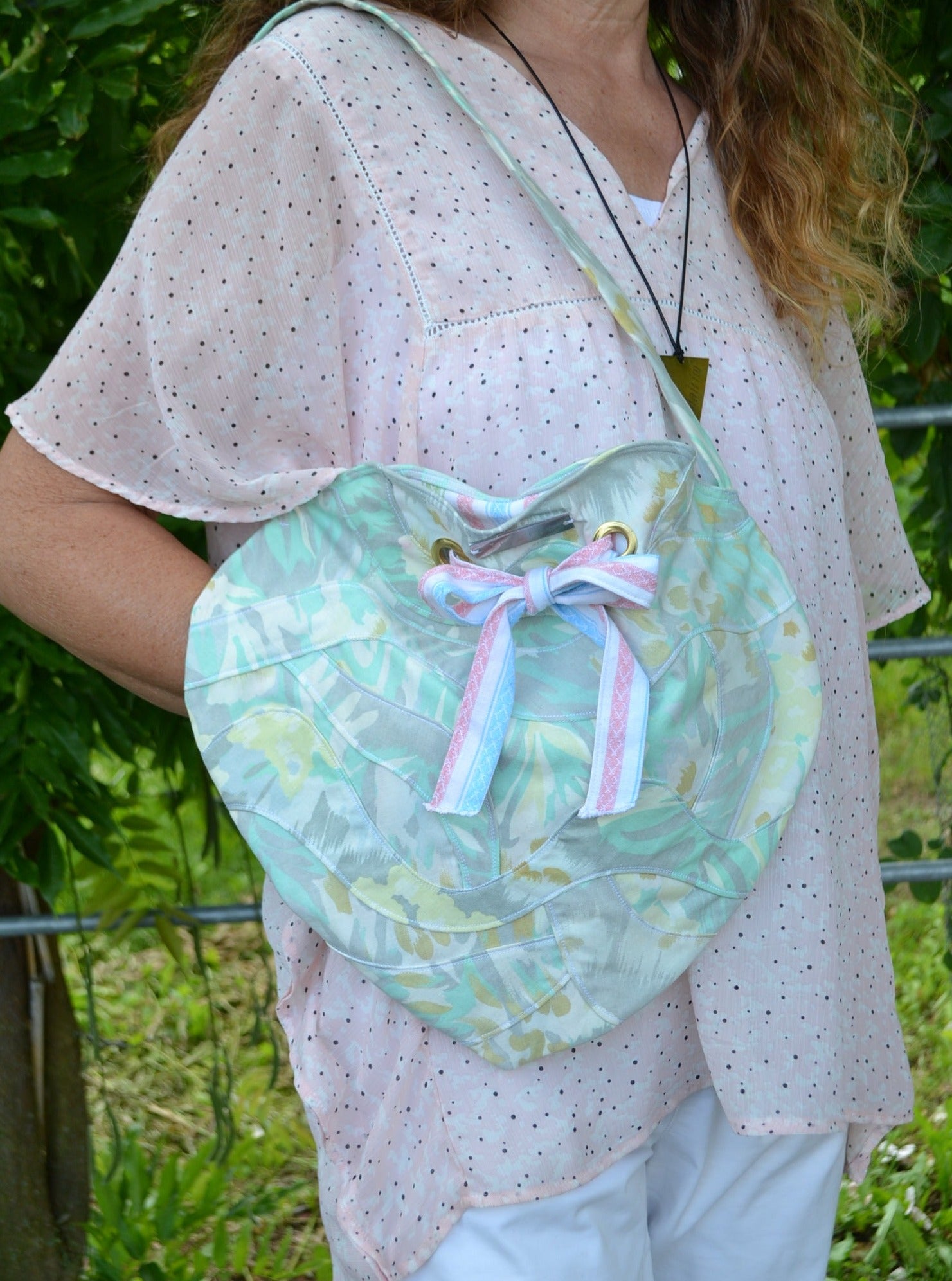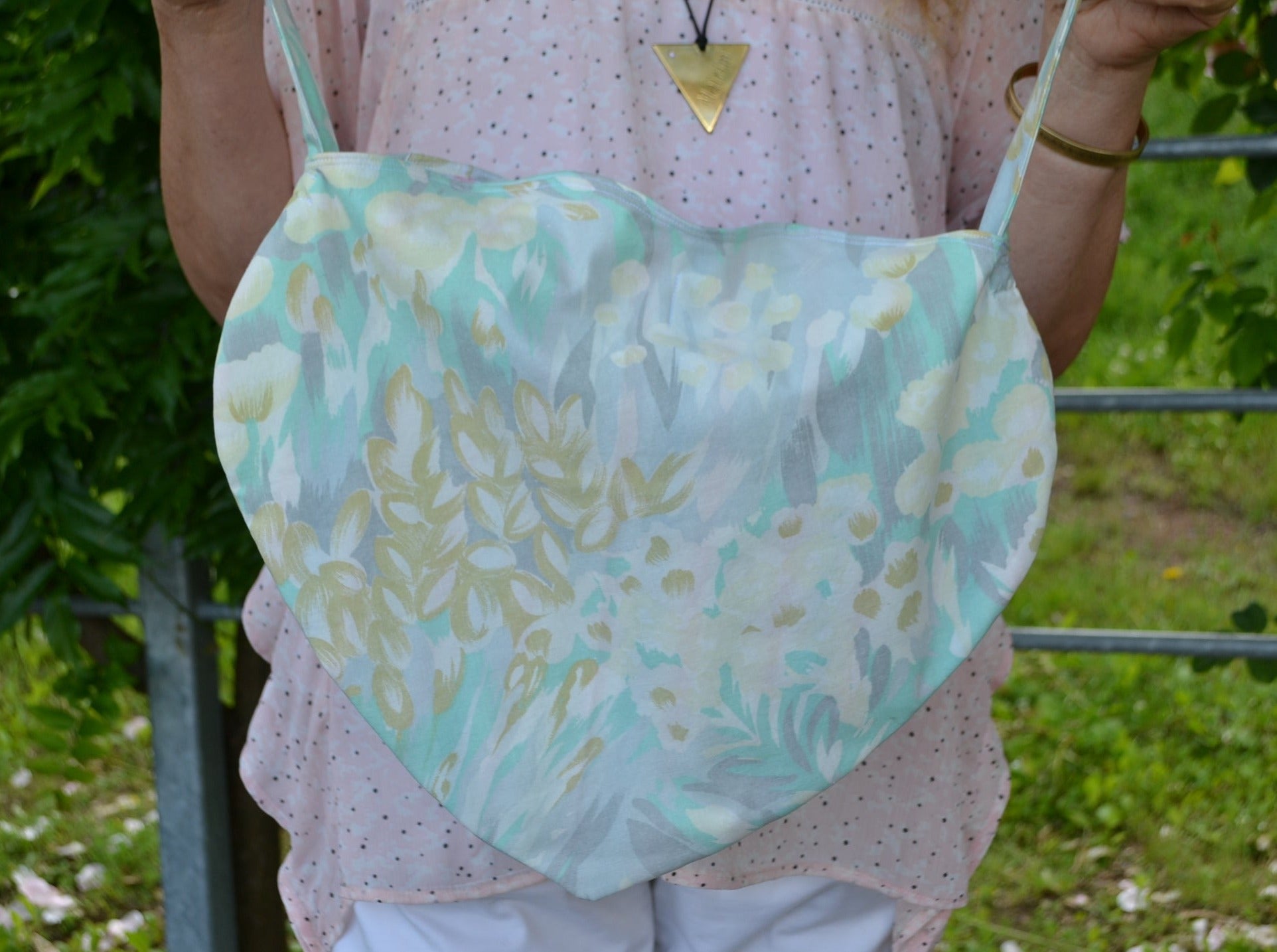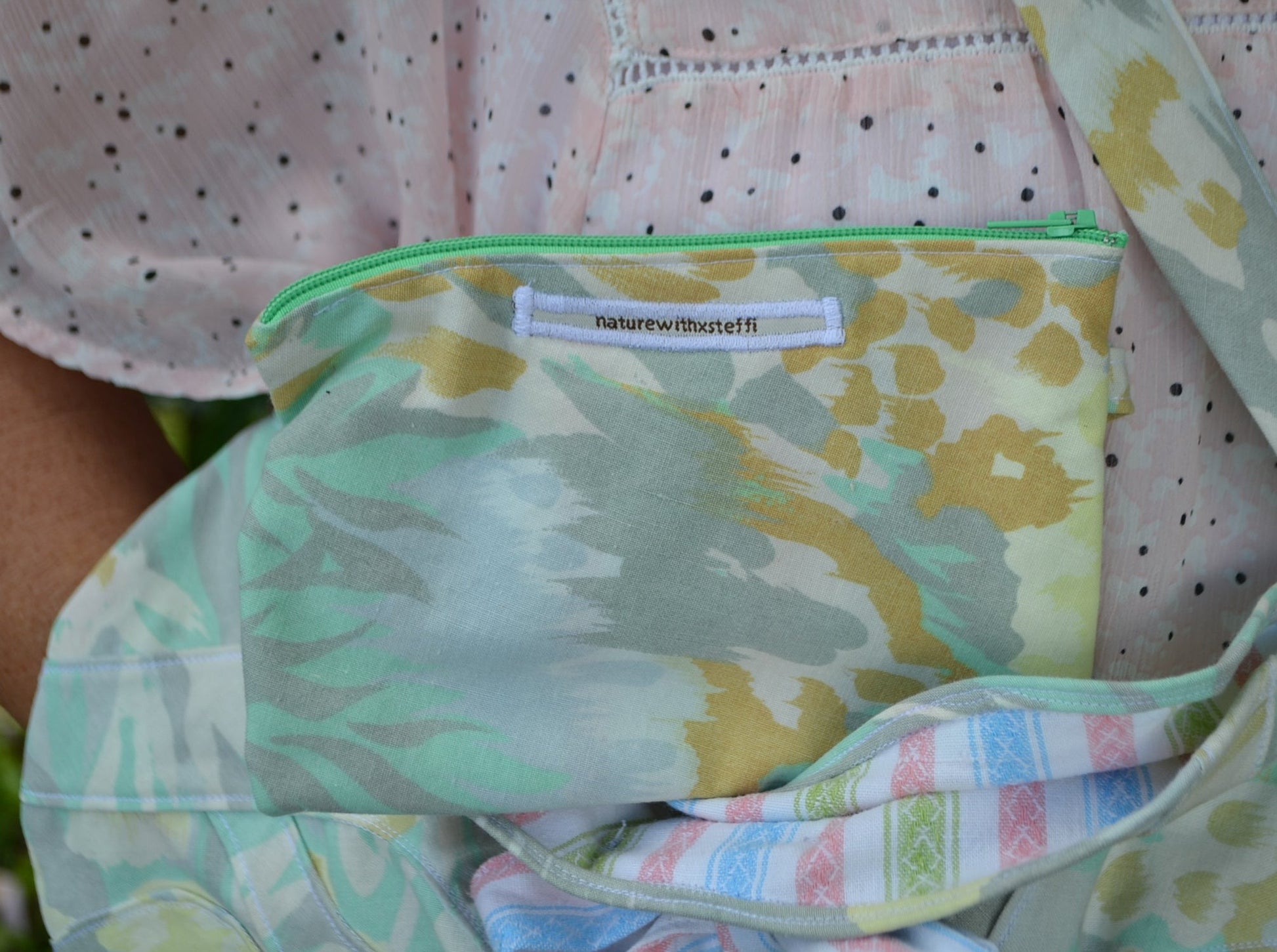 Für diese Tasche wurde ein secondhand Tischtuch und Stoffreste verwendet.