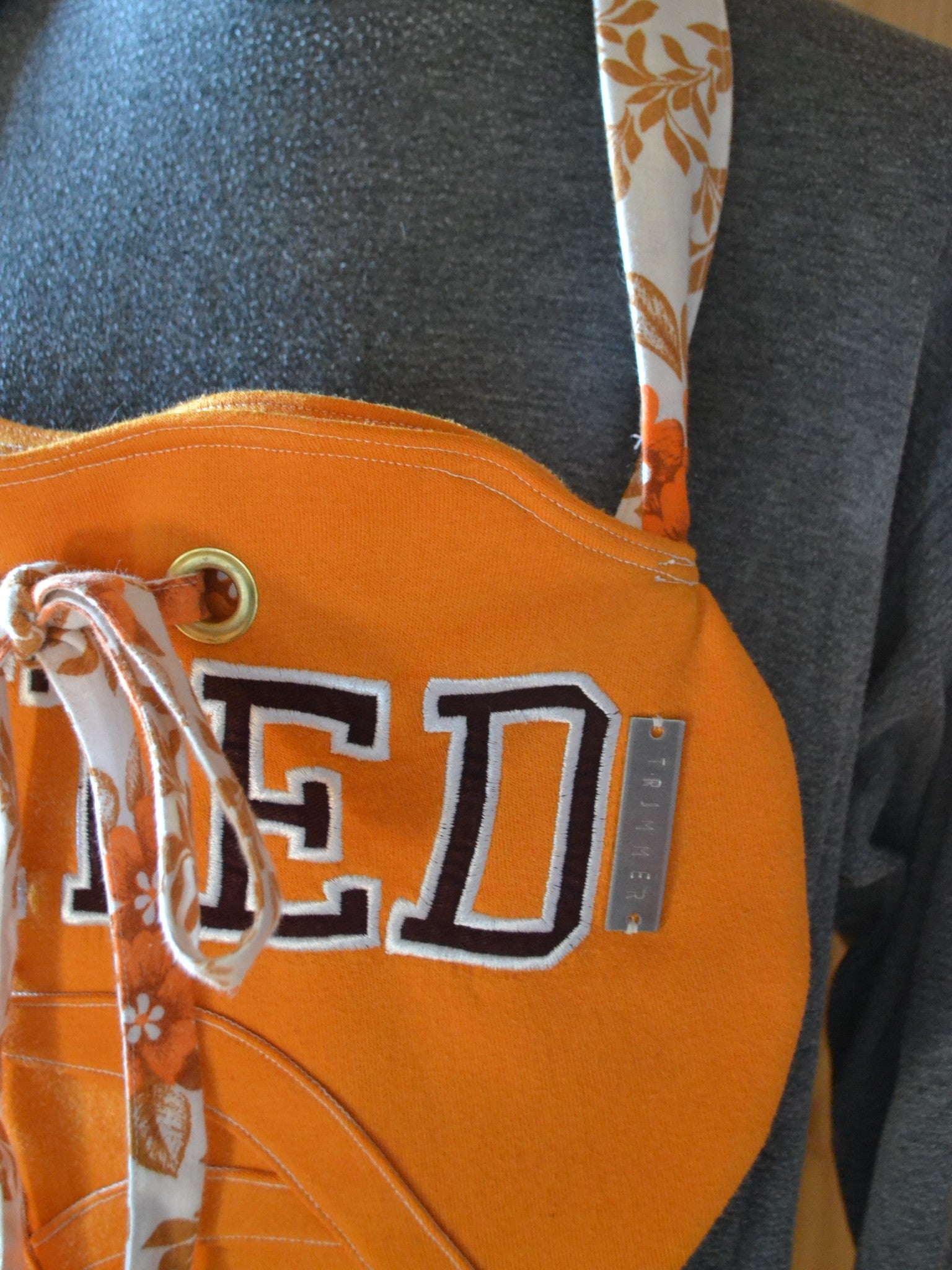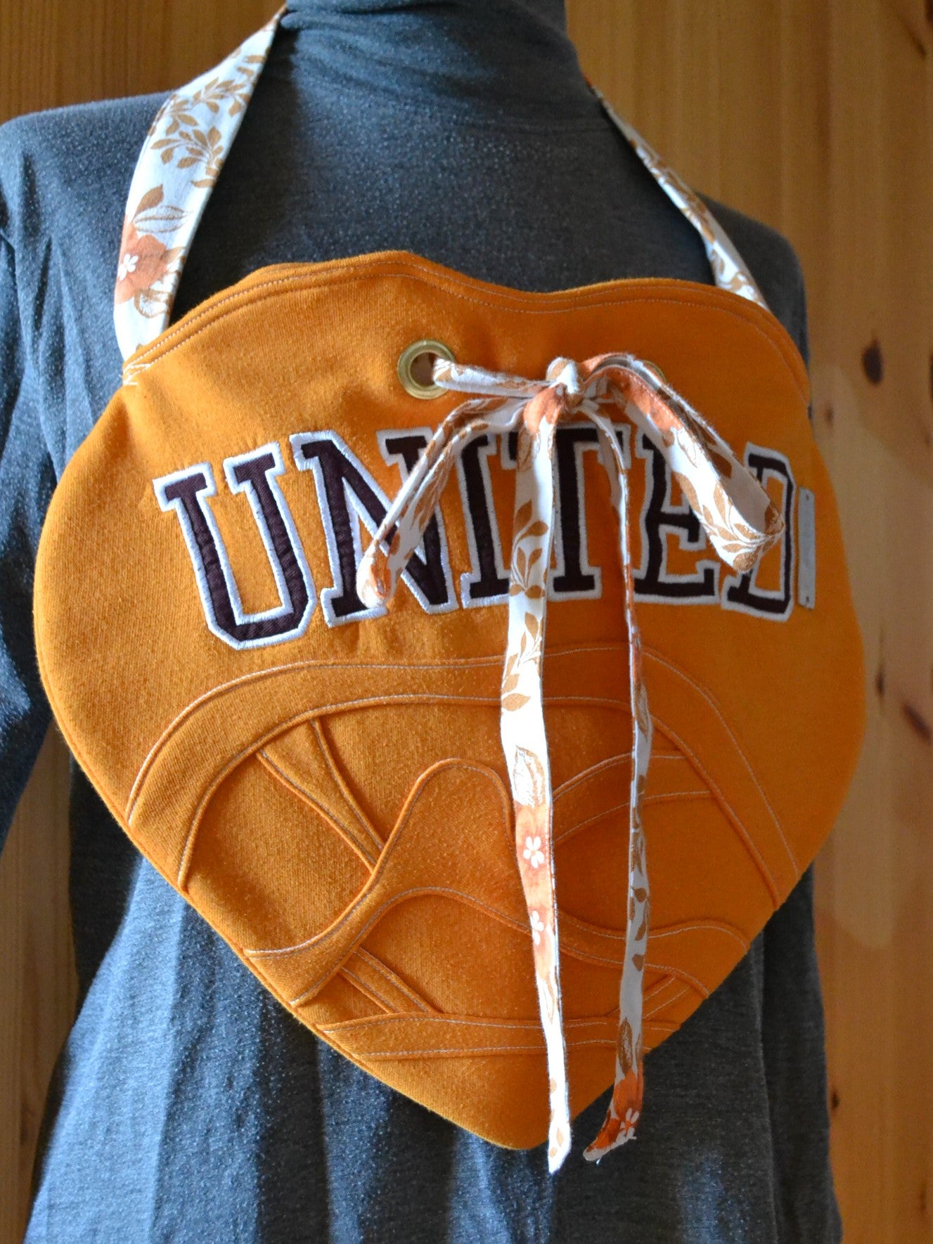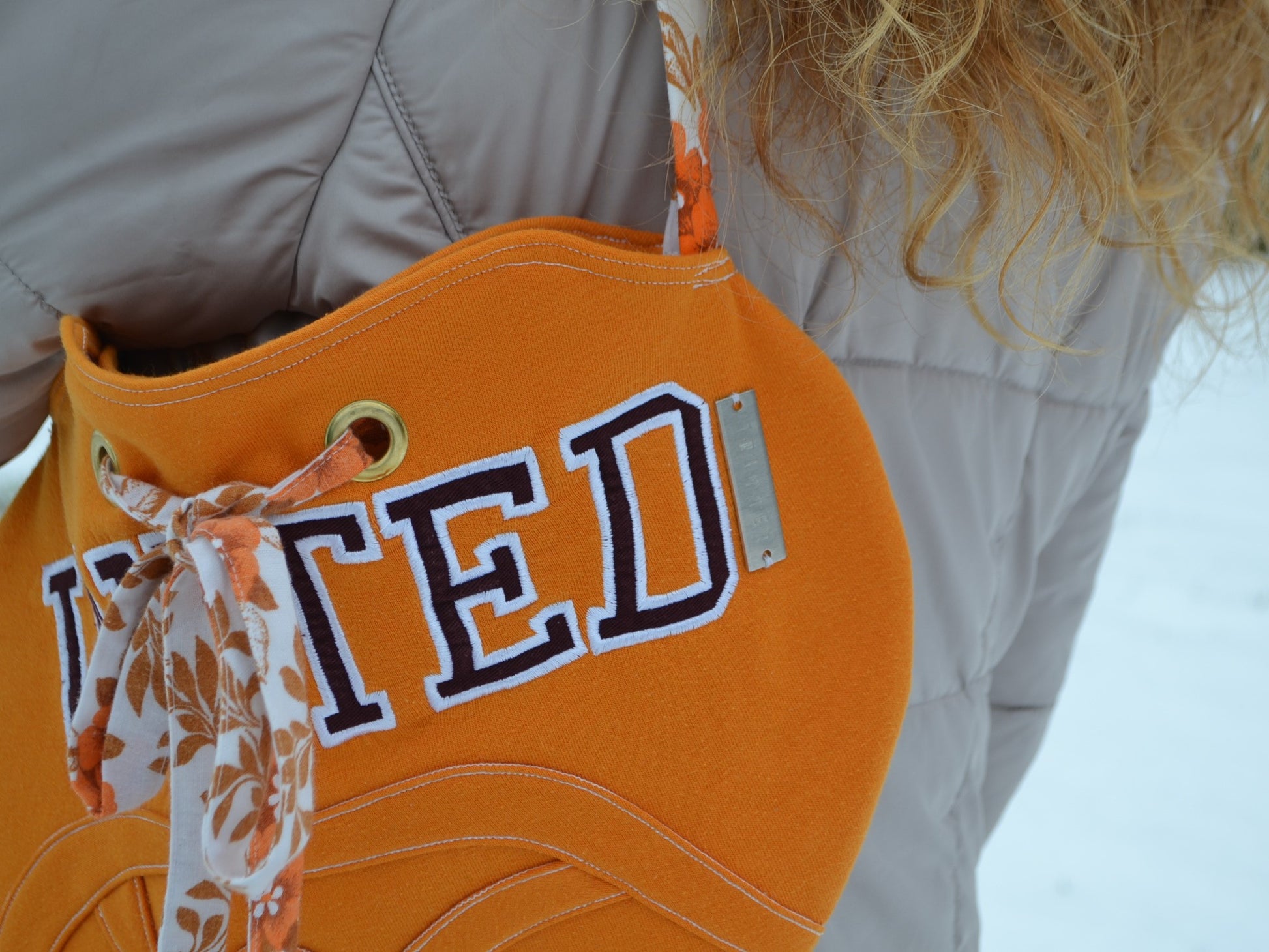 Für diese Tasche wurde ein Pullover und Stoffreste verwendet.