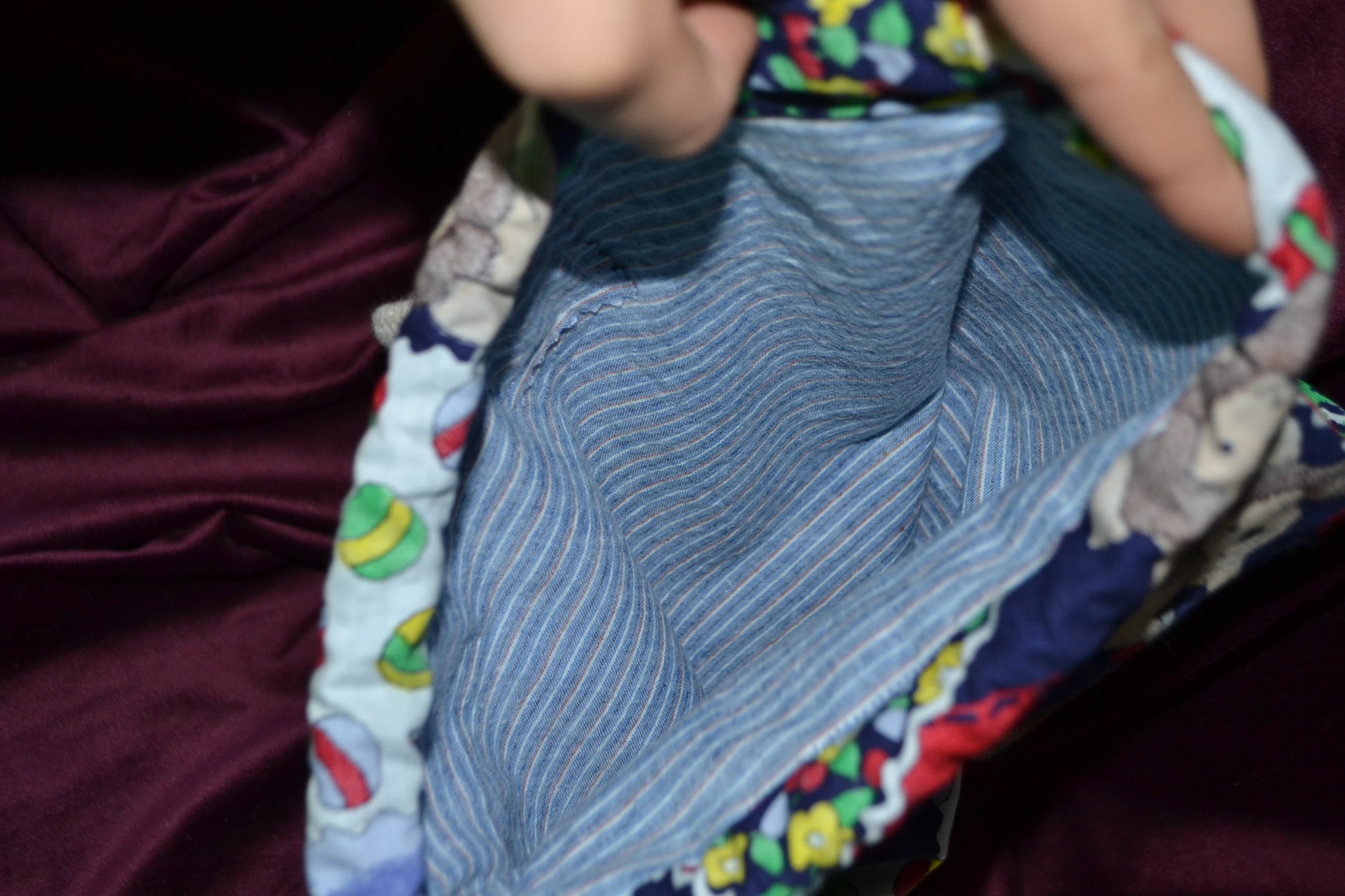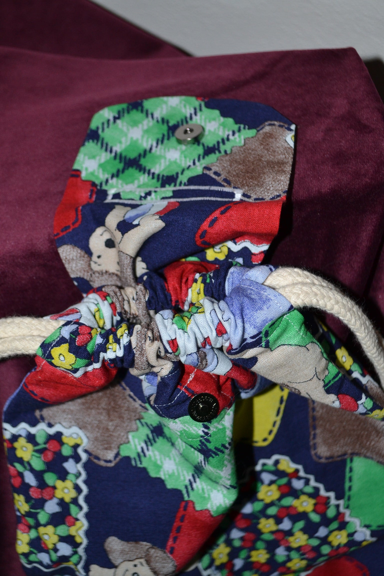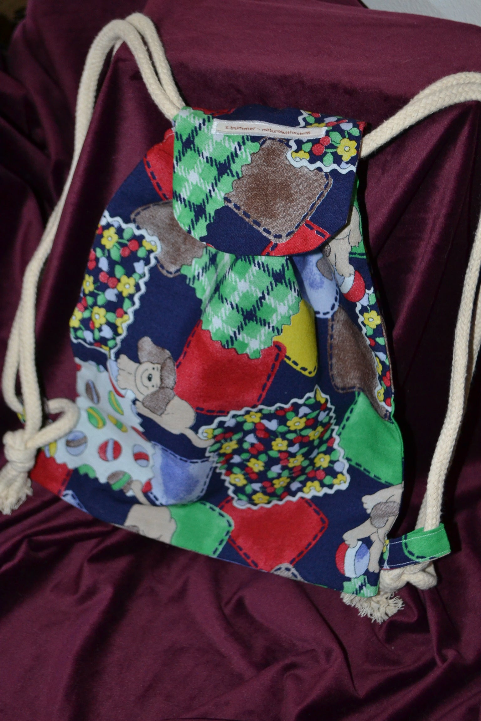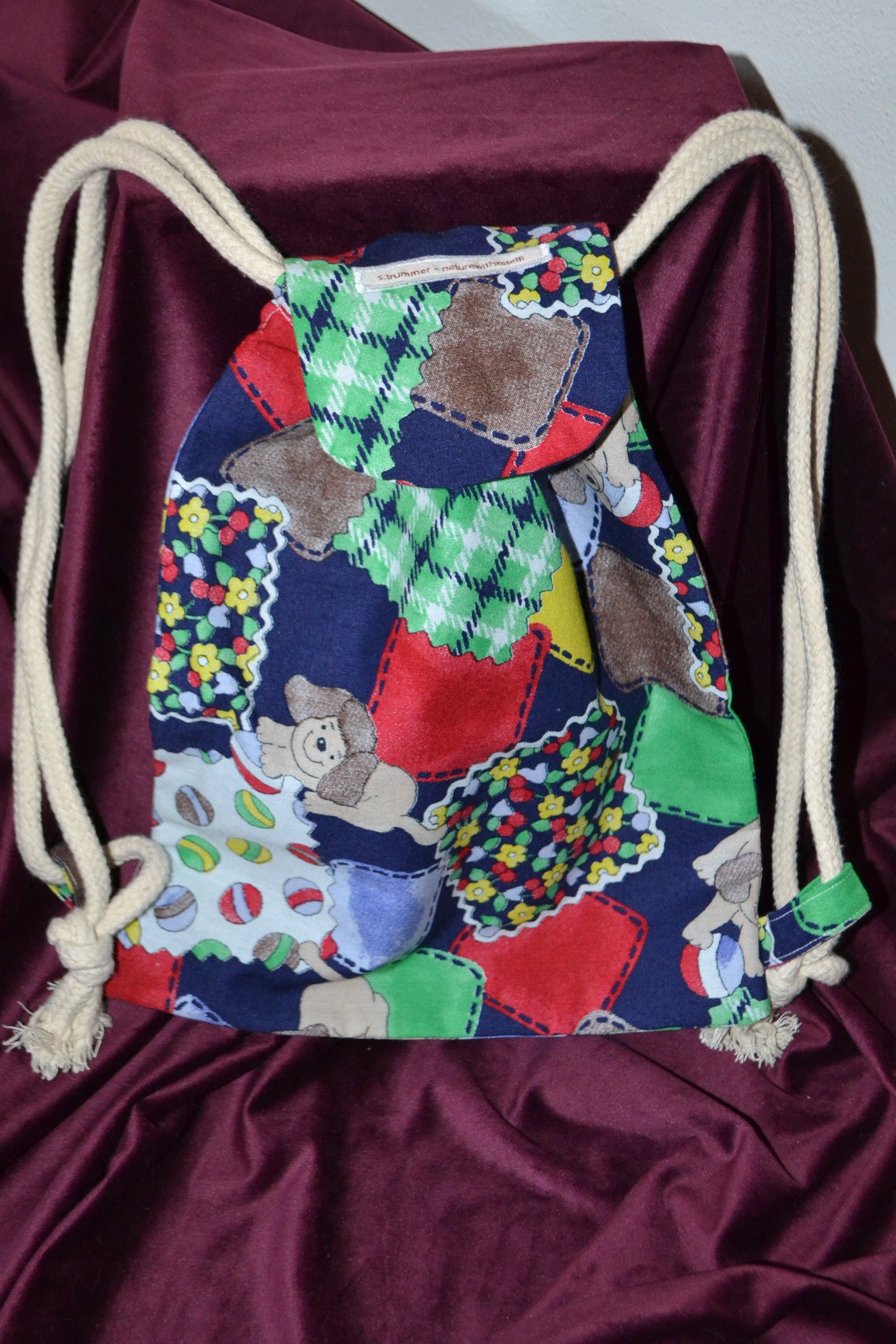 Für diesen Rucksack wurden secondhand Stoffe verwendet.