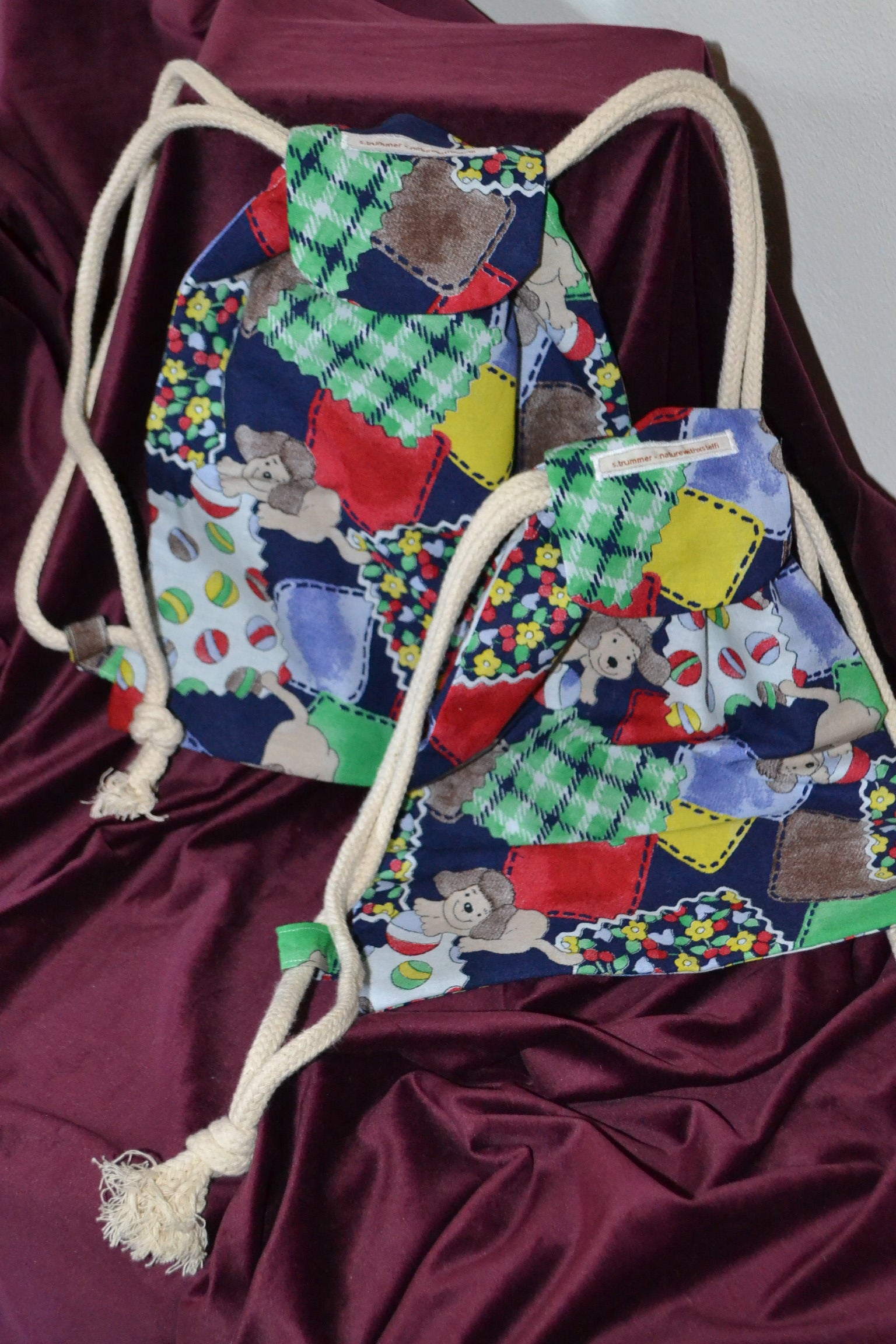 Der Kinder Rucksack "blau gemustert mit Hund" wurde aus Stoffresten gefertigt. Ideal für den täglichen Gebrauch, als Accessoire oder als Geschenk für die Liebsten perfekt geeignet.