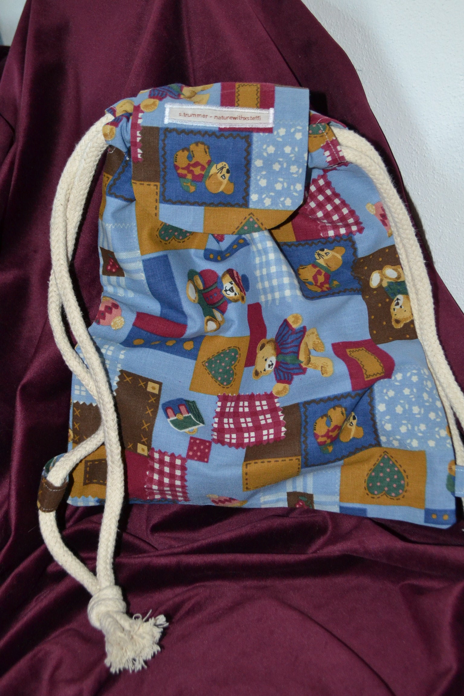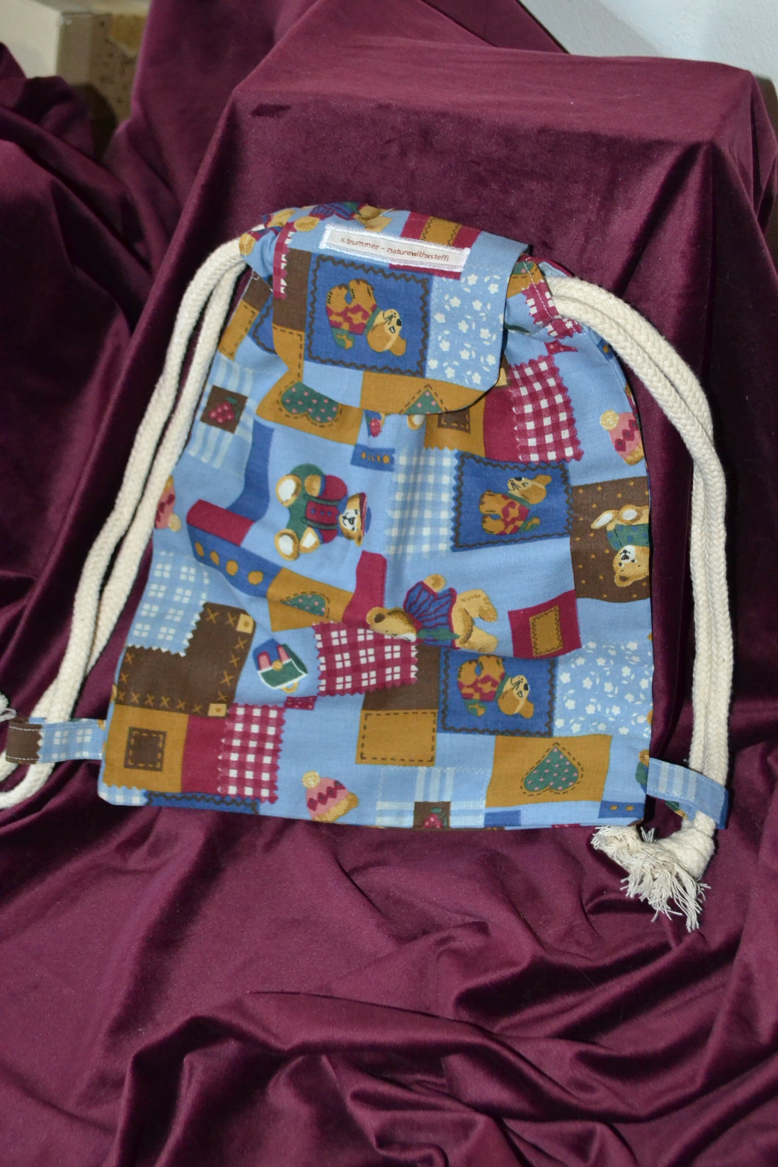Der Kinder Rucksack "Teddybär in Blau" wurde aus Stoffresten gefertigt. Ideal für den täglichen Gebrauch, als Accessoire oder als Geschenk für die Liebsten perfekt geeignet.