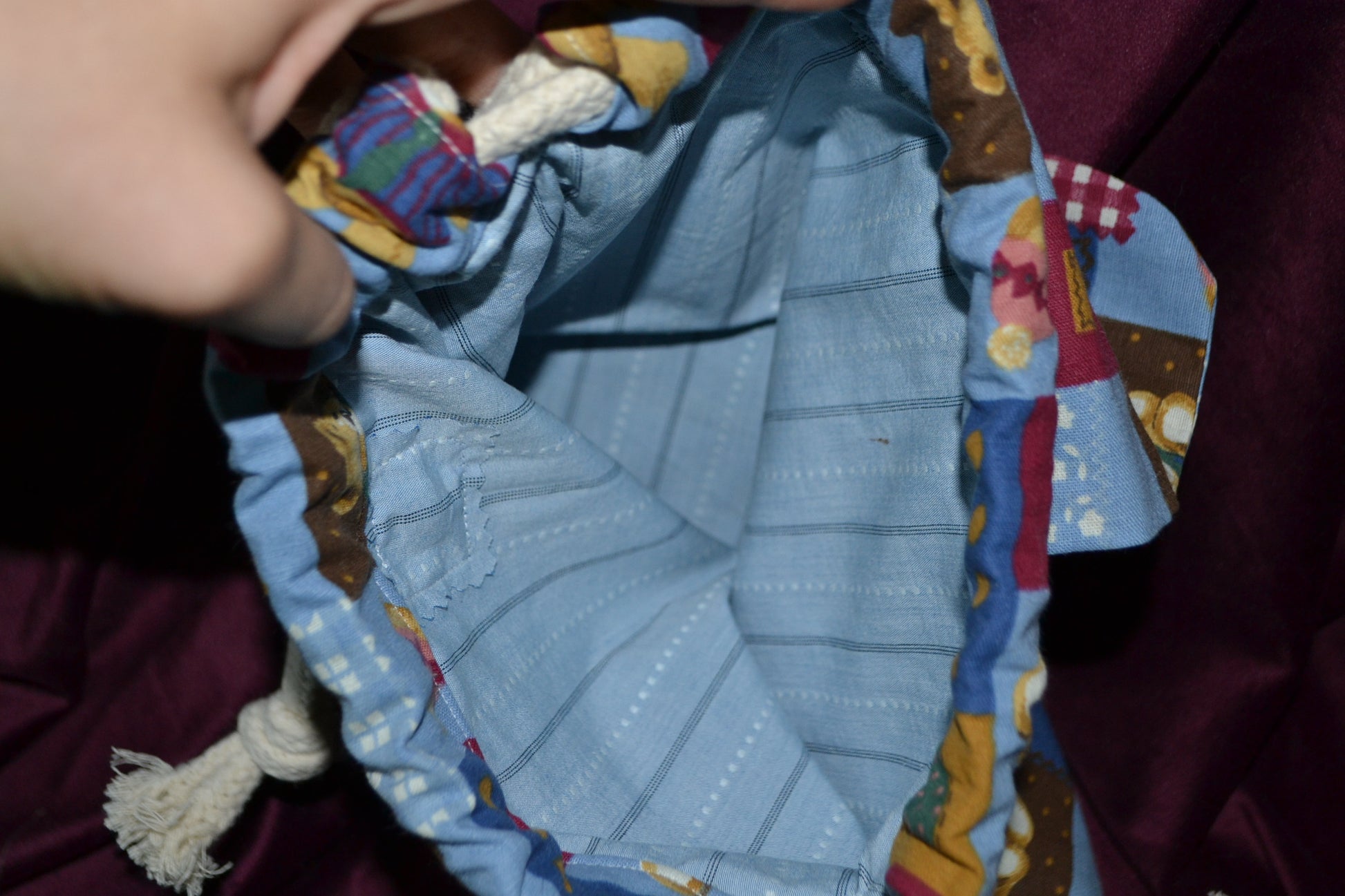 Die Kordel ist 100 % Baumwolle und können bei Bedarf enger geknotet werden