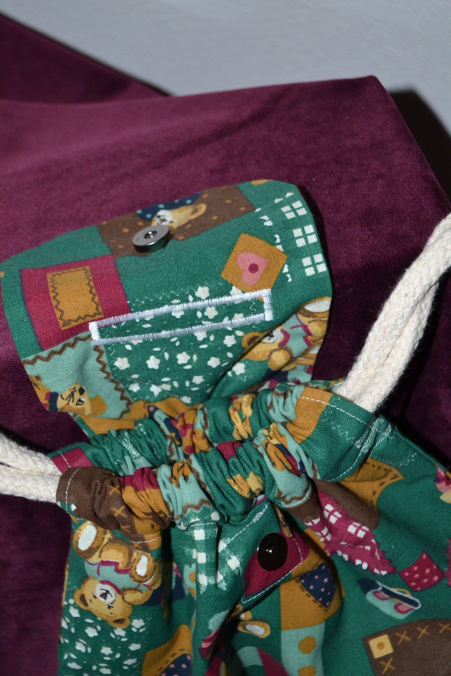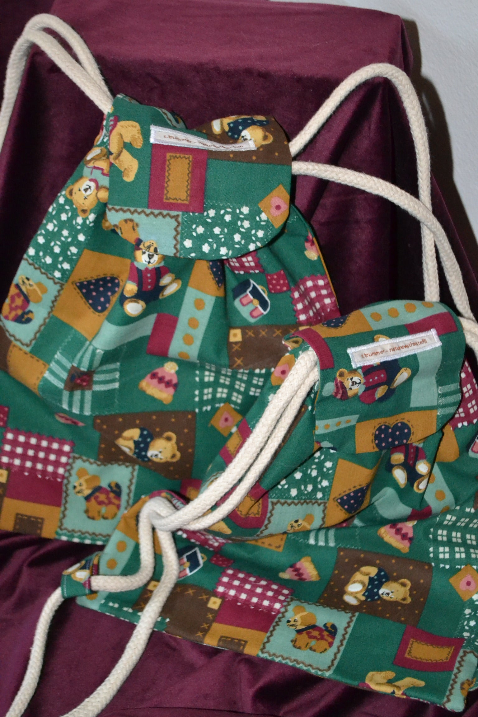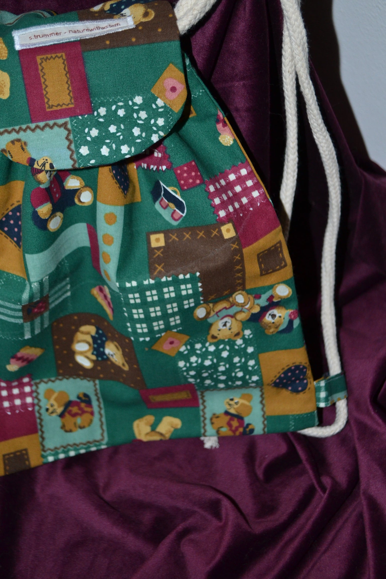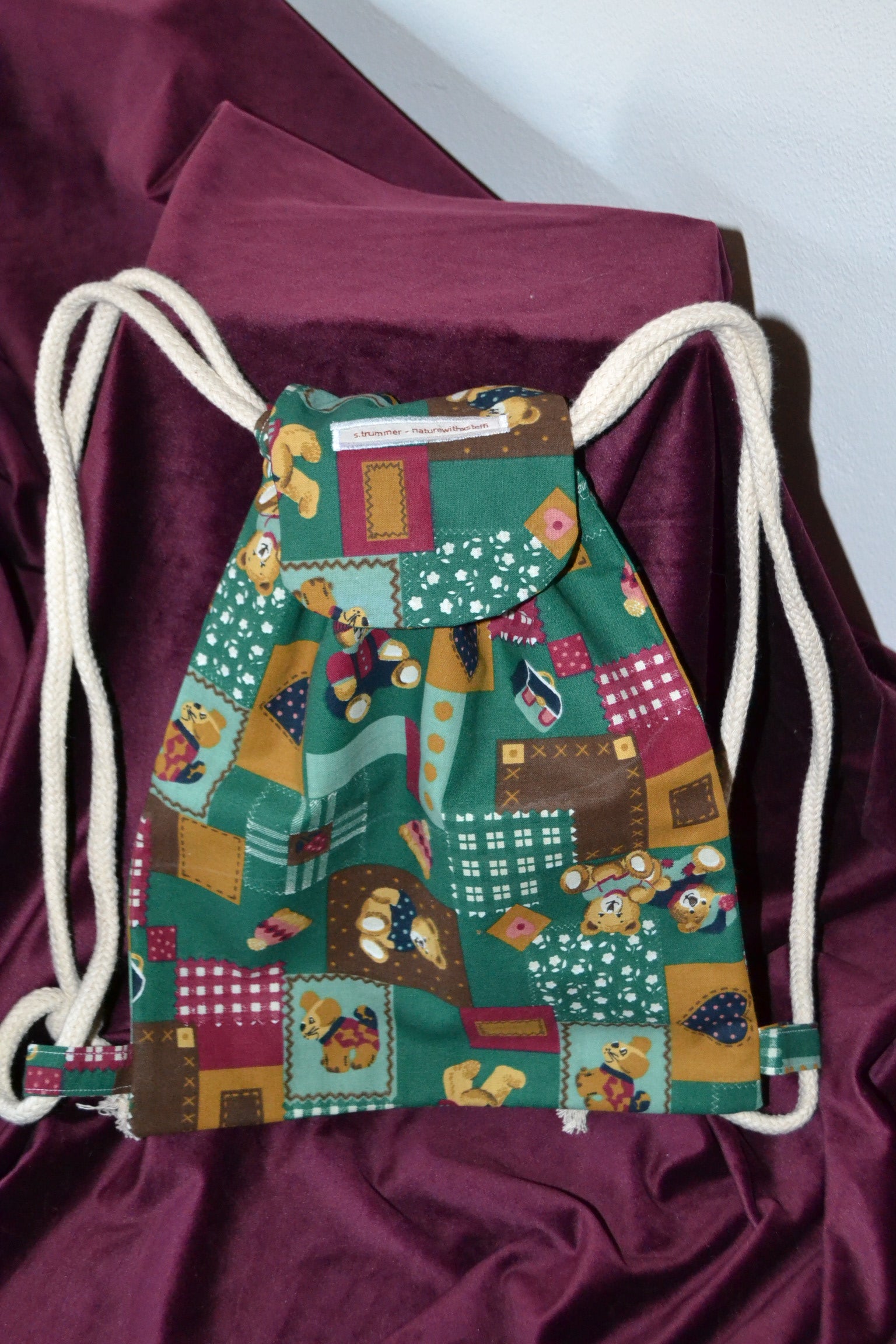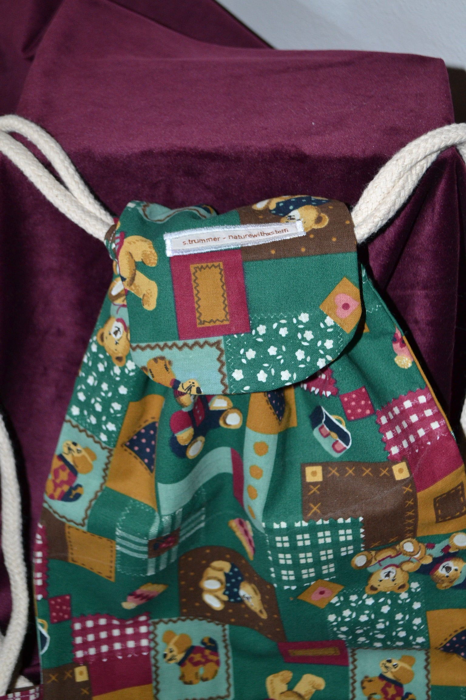 Der Kinder Rucksack "Teddybär in Grün" wurde aus Stoffresten gefertigt. Ideal für den täglichen Gebrauch, als Accessoire oder als Geschenk für die Liebsten perfekt geeignet.