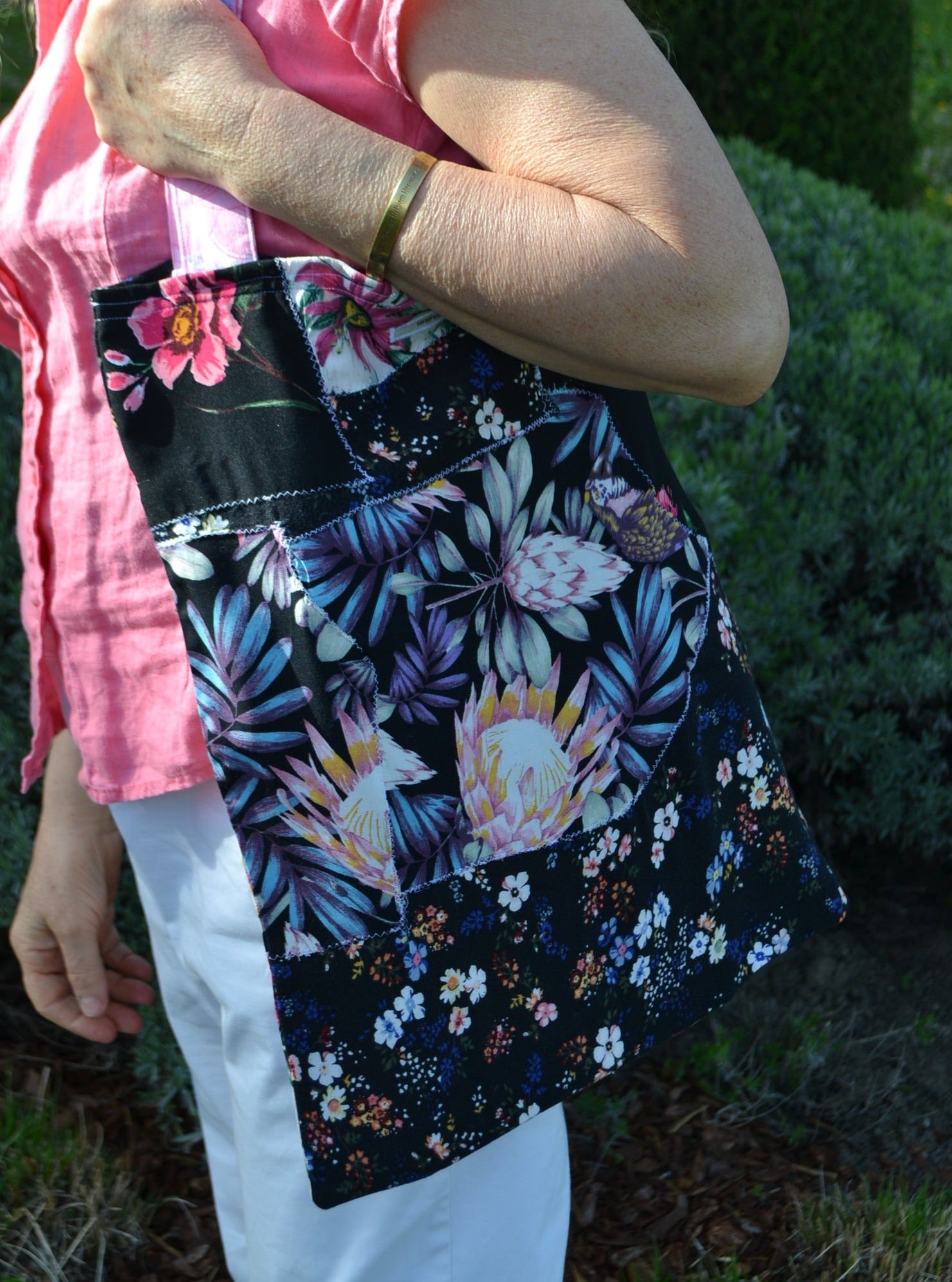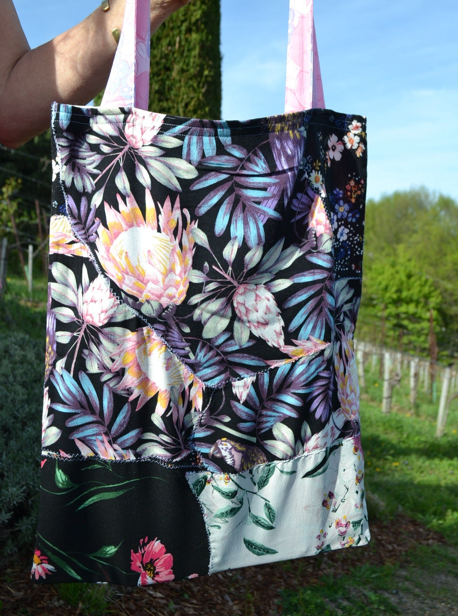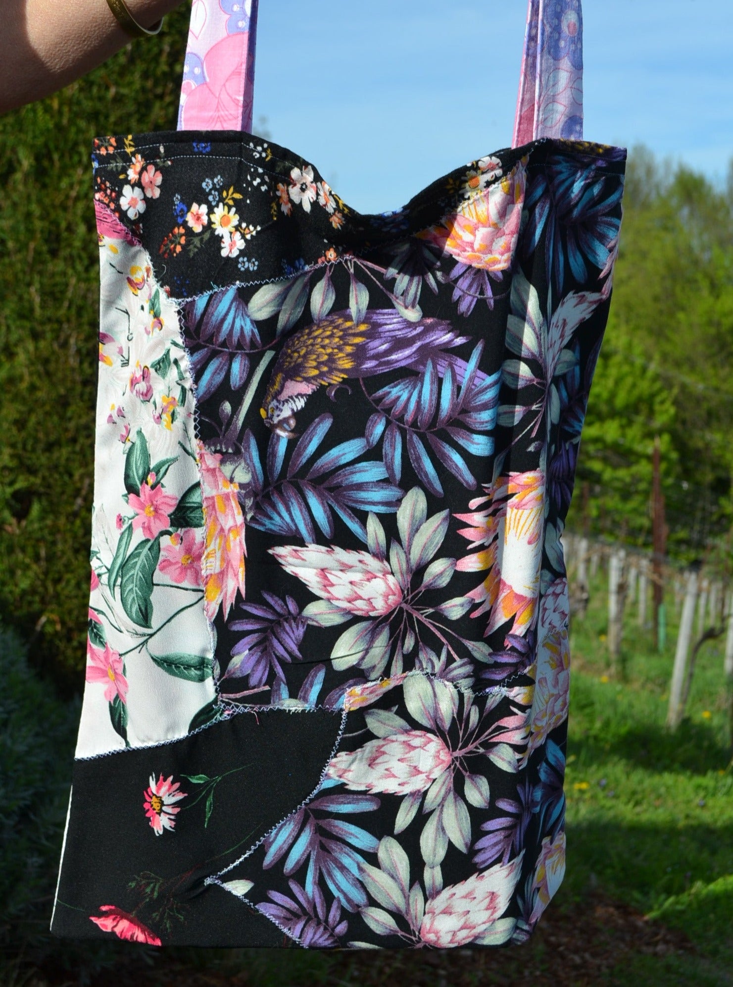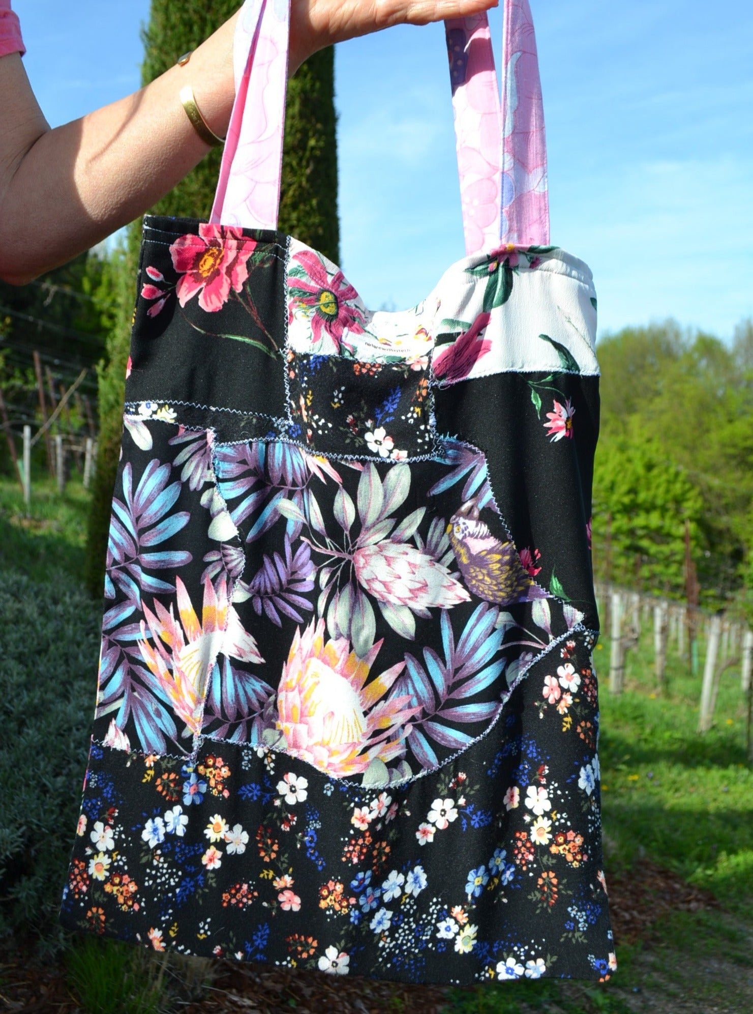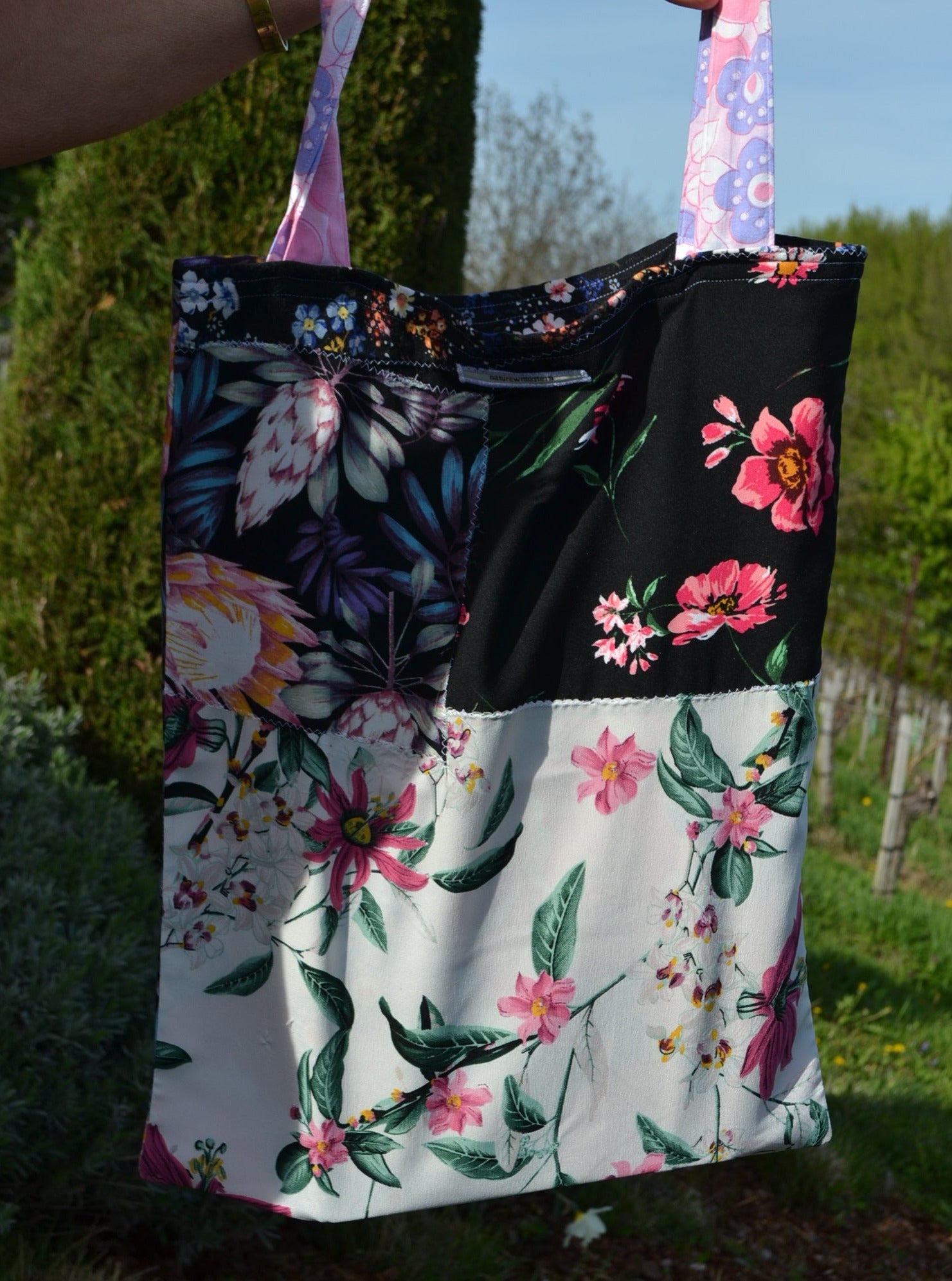 Die Idee dahinter? Weniger Wegwerfen für mehr Material. Deswegen wurden aus den verschiedensten Stoffstücken eine ganz besondere Tasche angefertigt. Einzigartig, ausdrucksvoll und umweltfreundlich!