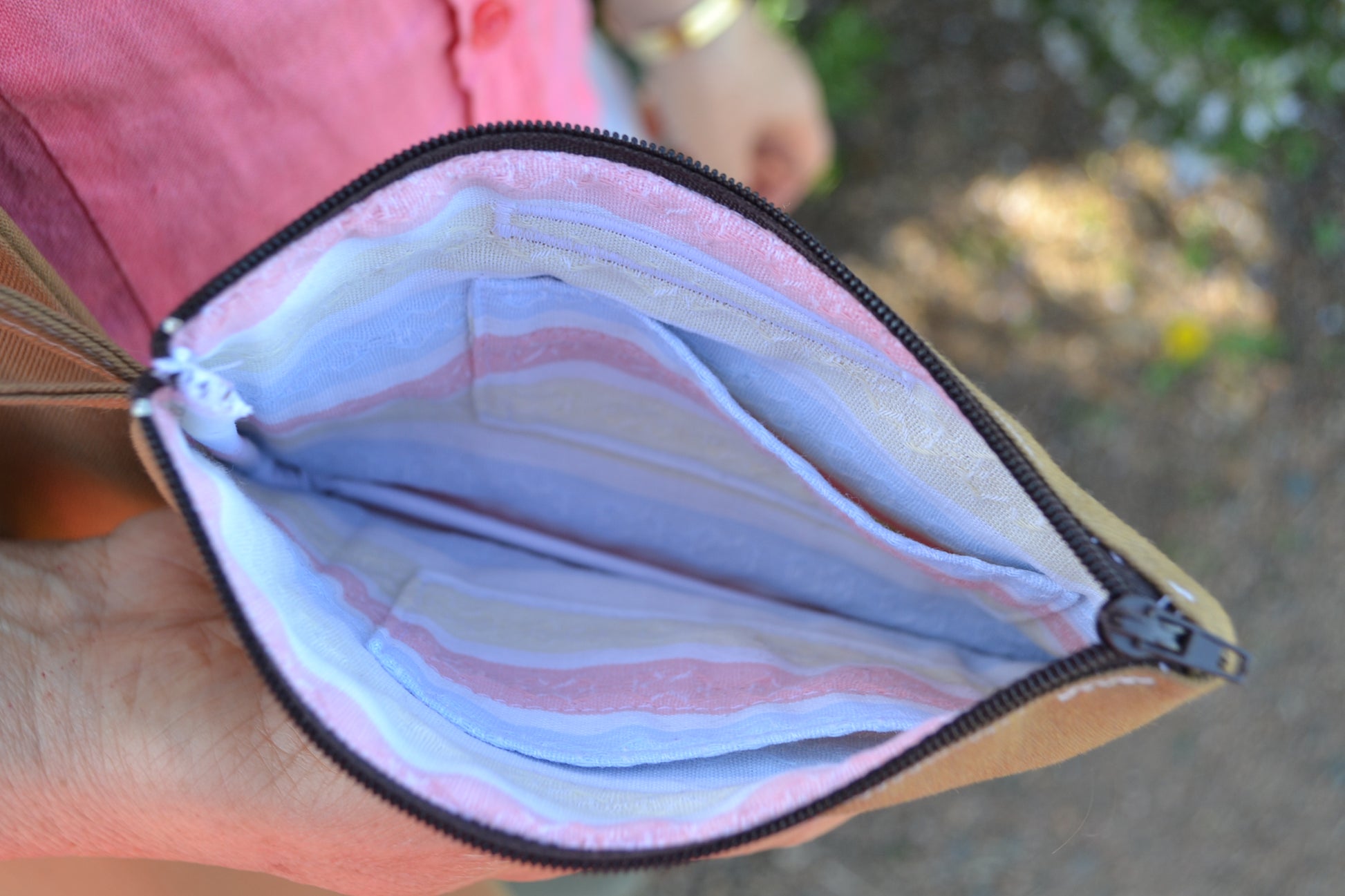 Für diese Tasche&Geldbörse wurde Second Hand Stoff verwendet.