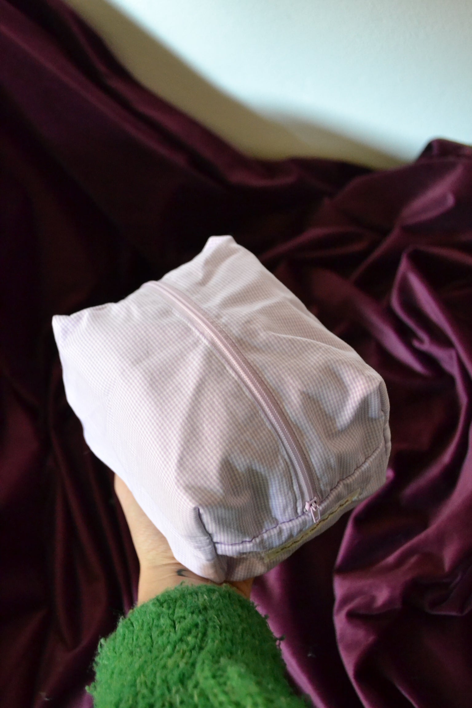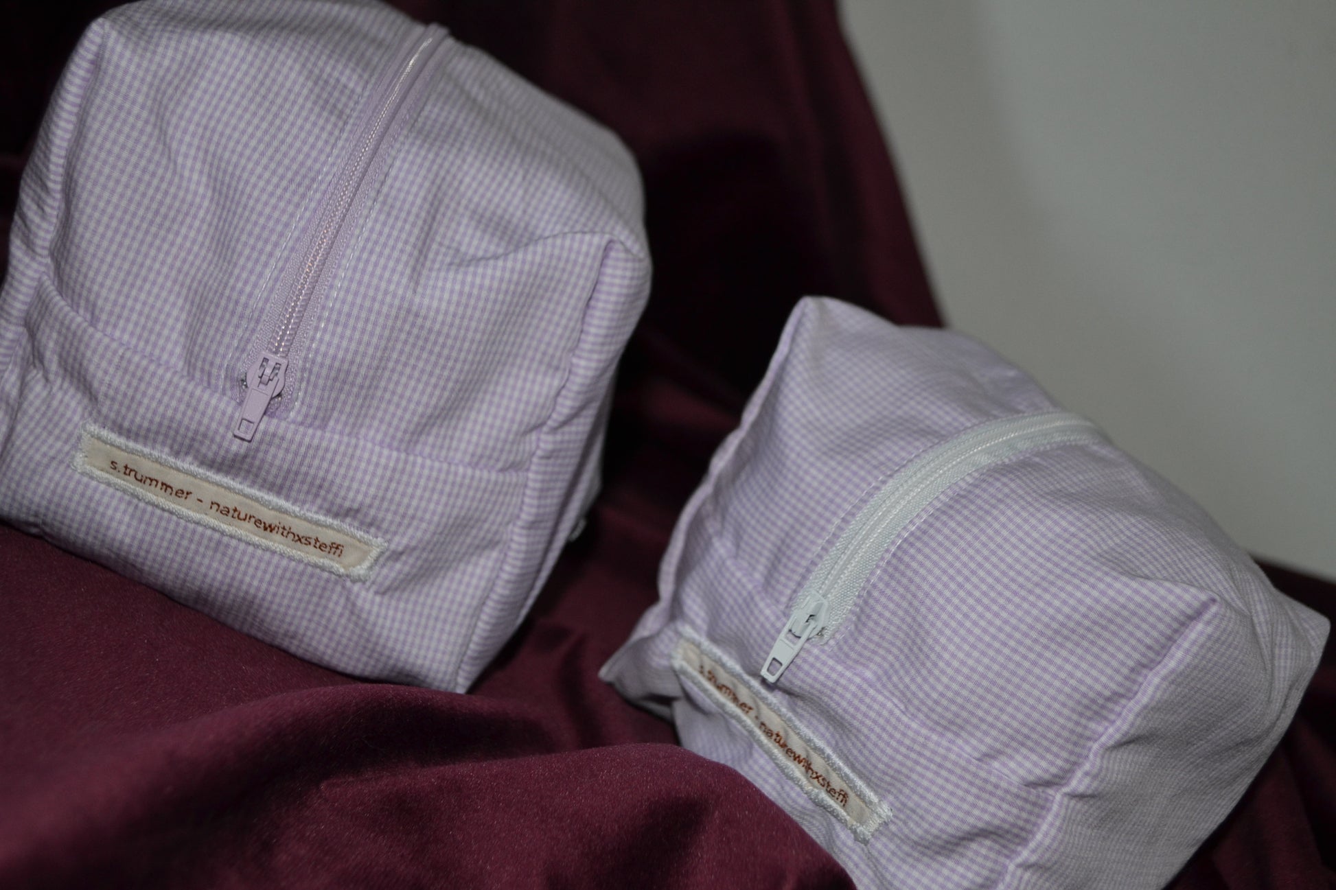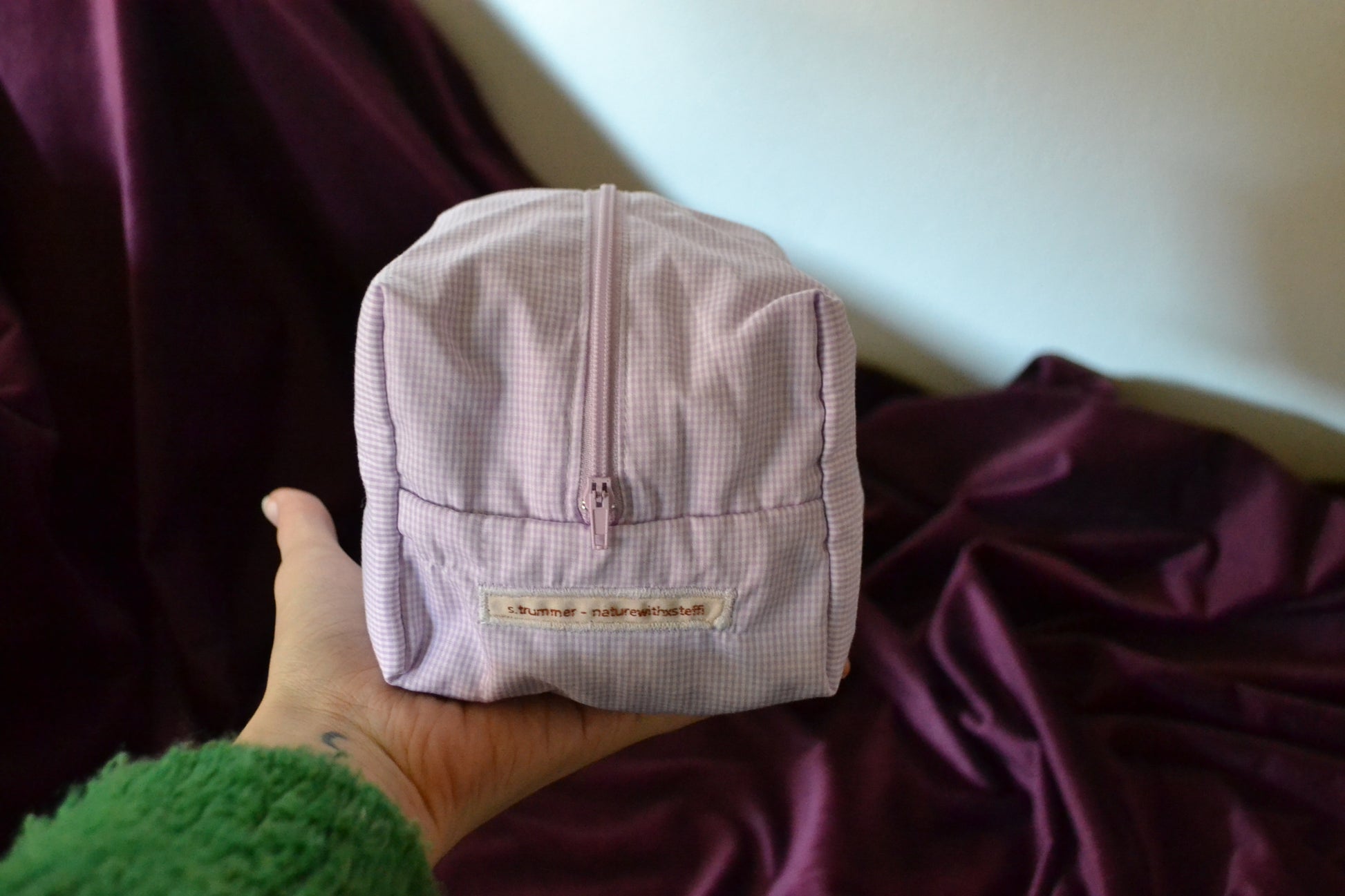 Handgemachtes Kosmetiktascherl. Schenk alter Kleidung ein neues Leben als stylisches, umweltfreundliches, handgemachtes Kosmetiktascherl.