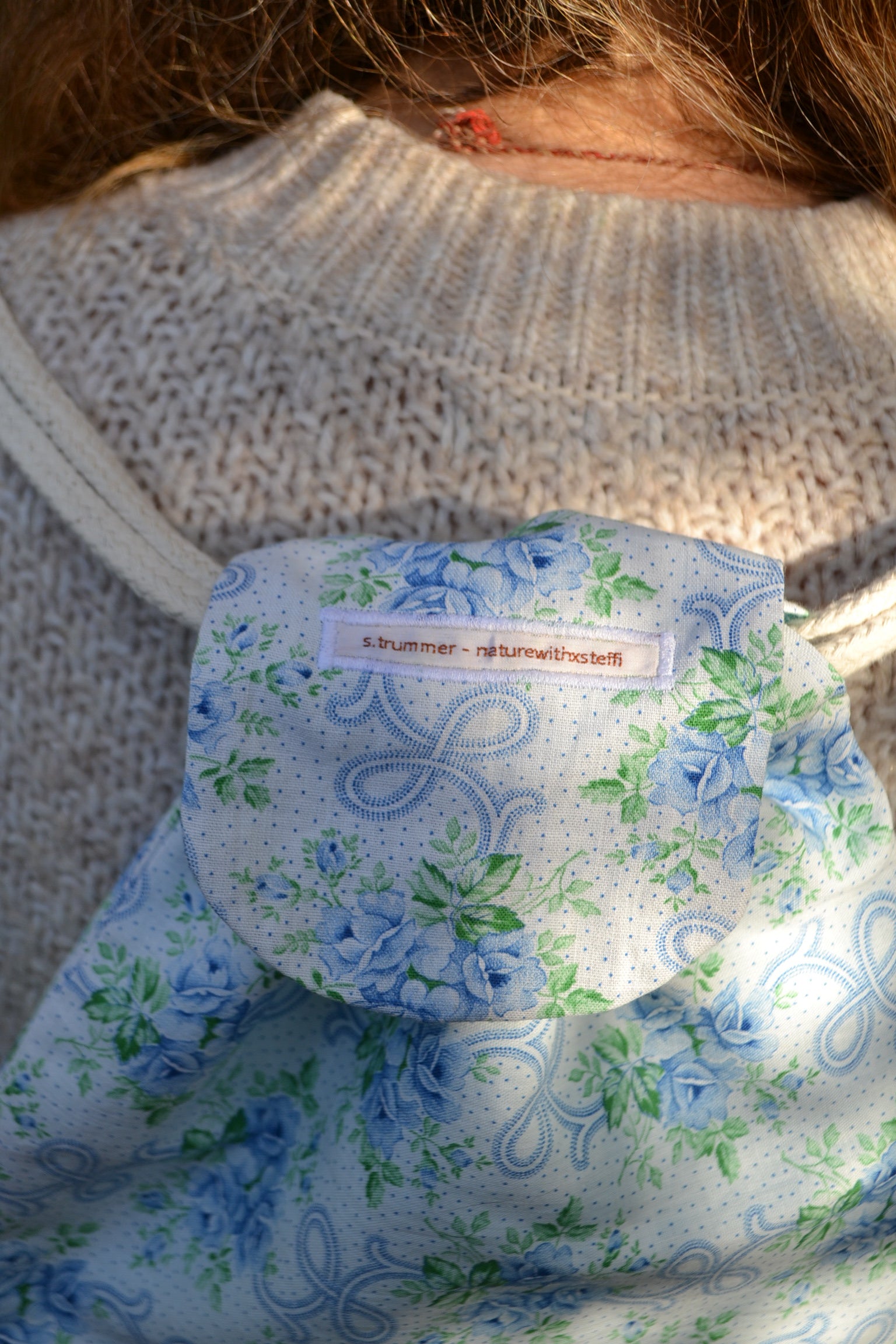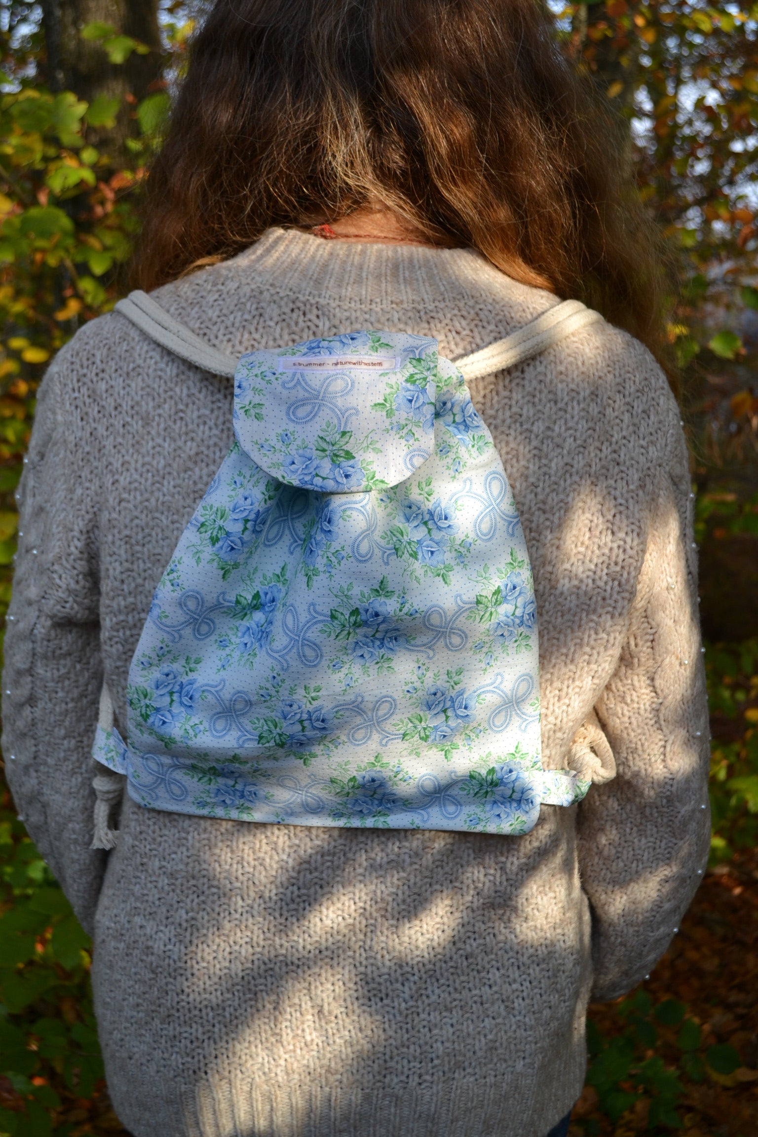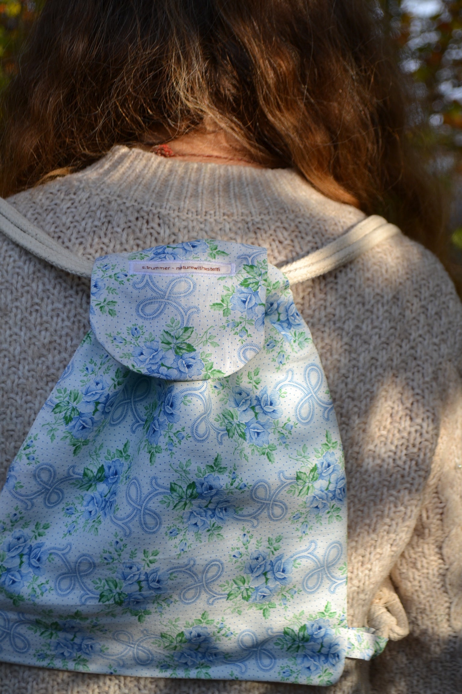 Der mini Rucksack "blaue Rosen" wurde aus Stoffresten gefertigt. Ideal für den täglichen Gebrauch, als Accessoire oder als Geschenk für die Liebsten perfekt geeignet.