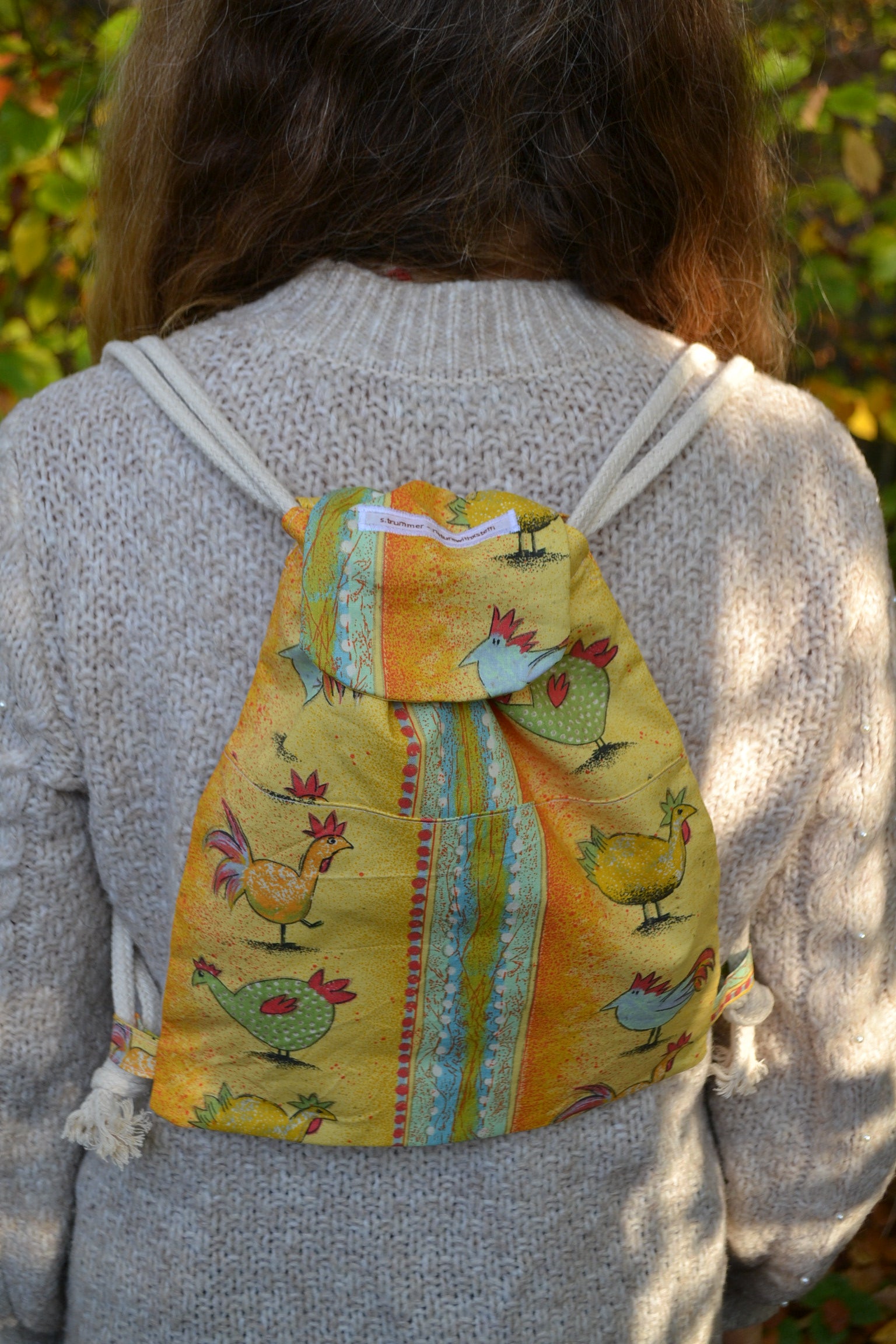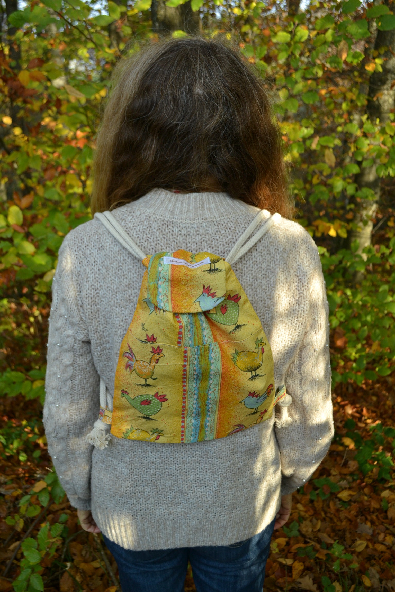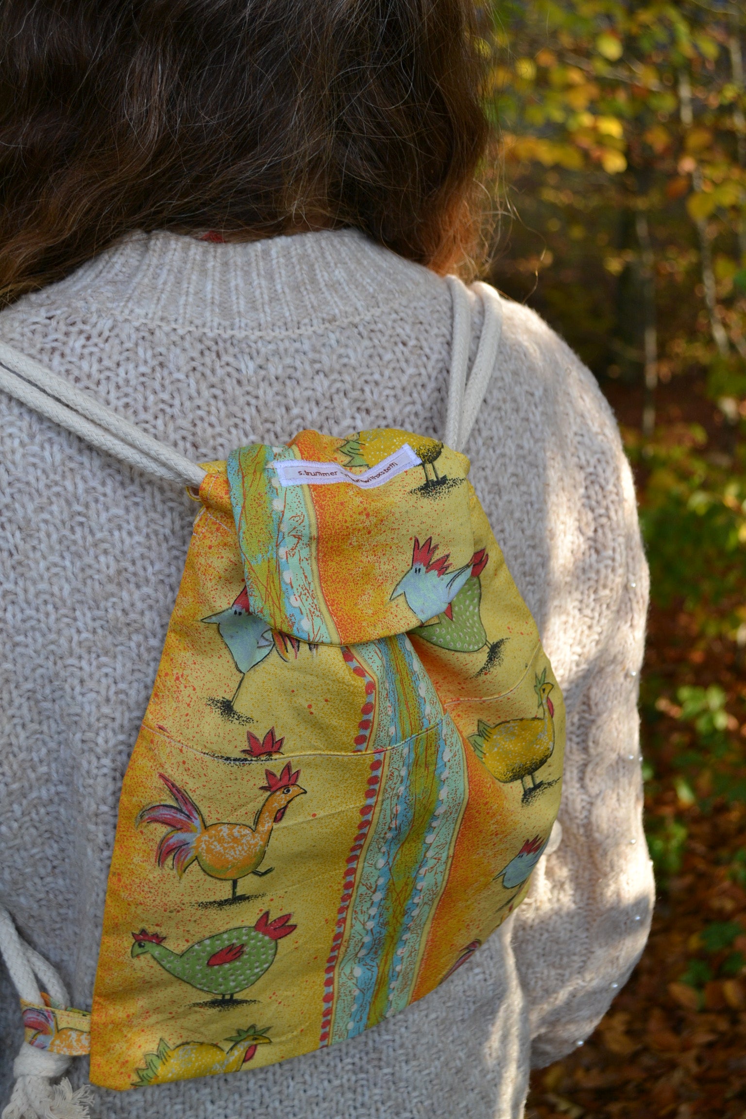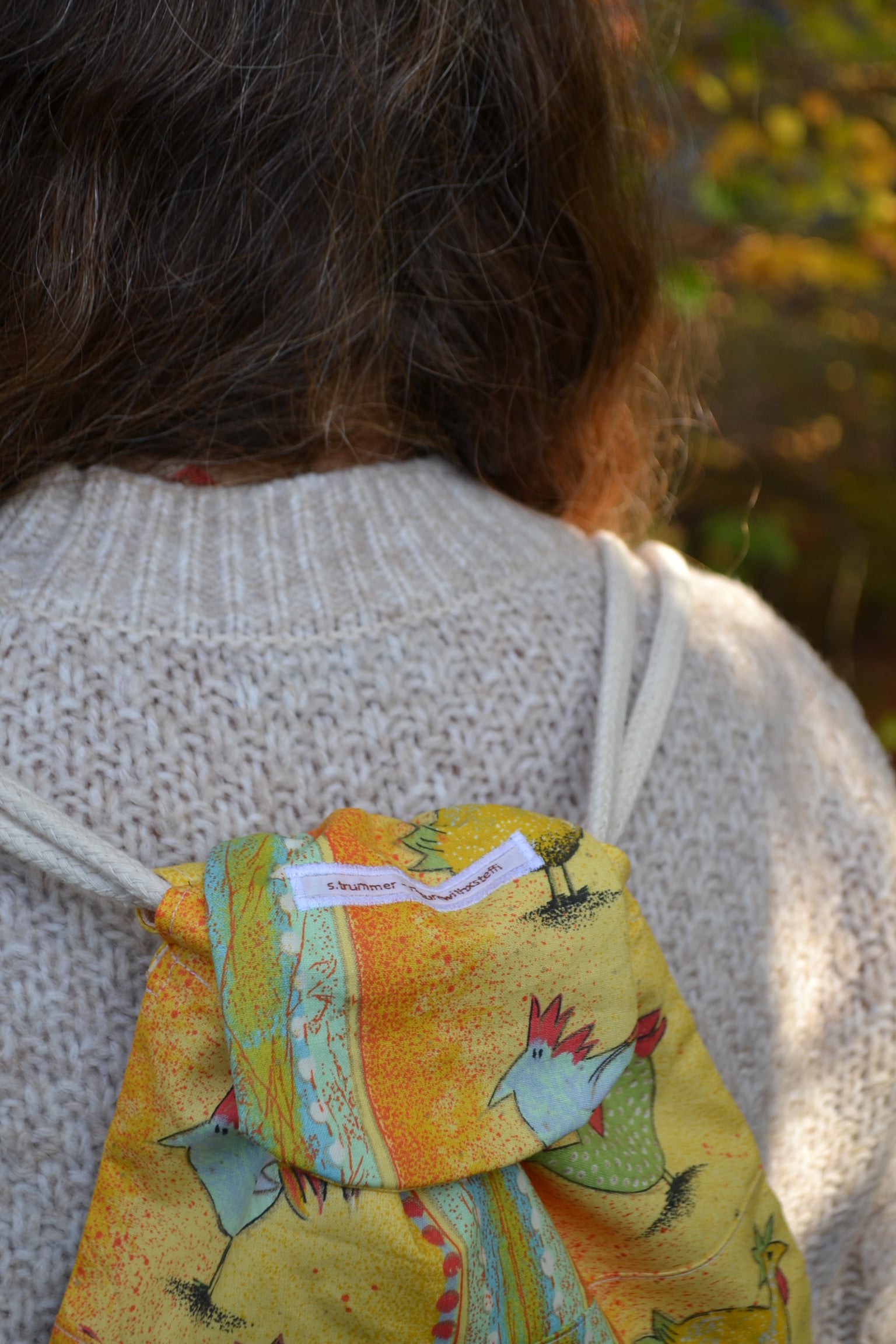 Der mini Rucksack "gelb mit Hünchen" wurde aus Stoffresten gefertigt. Ideal für den täglichen Gebrauch, als Accessoire oder als Geschenk für die Liebsten perfekt geeignet.