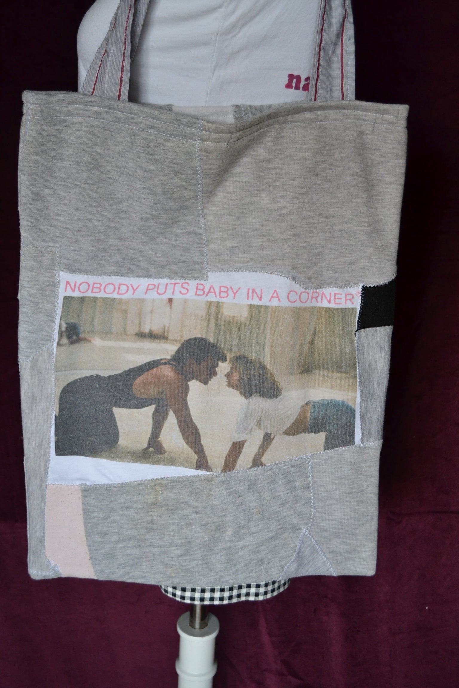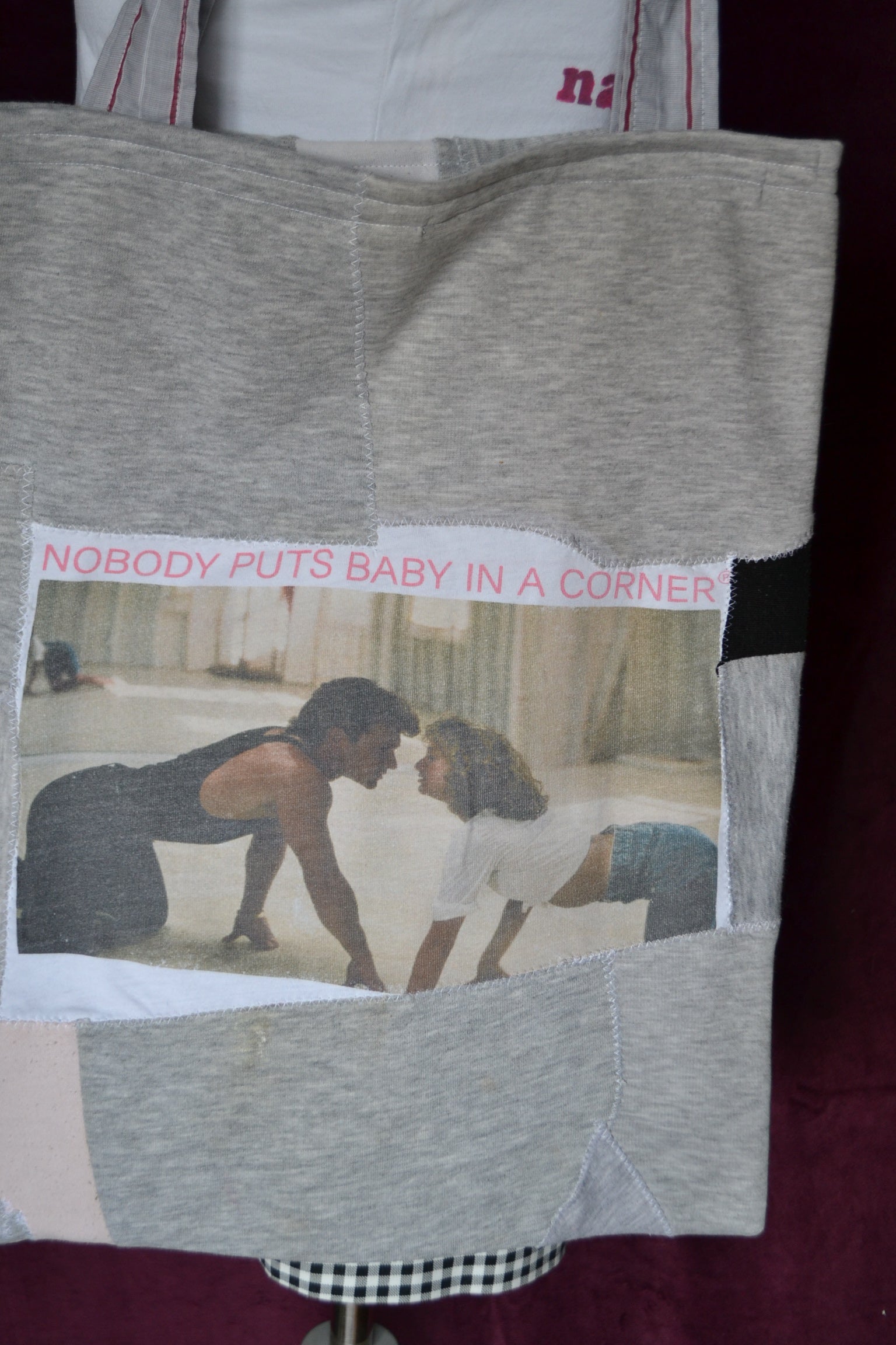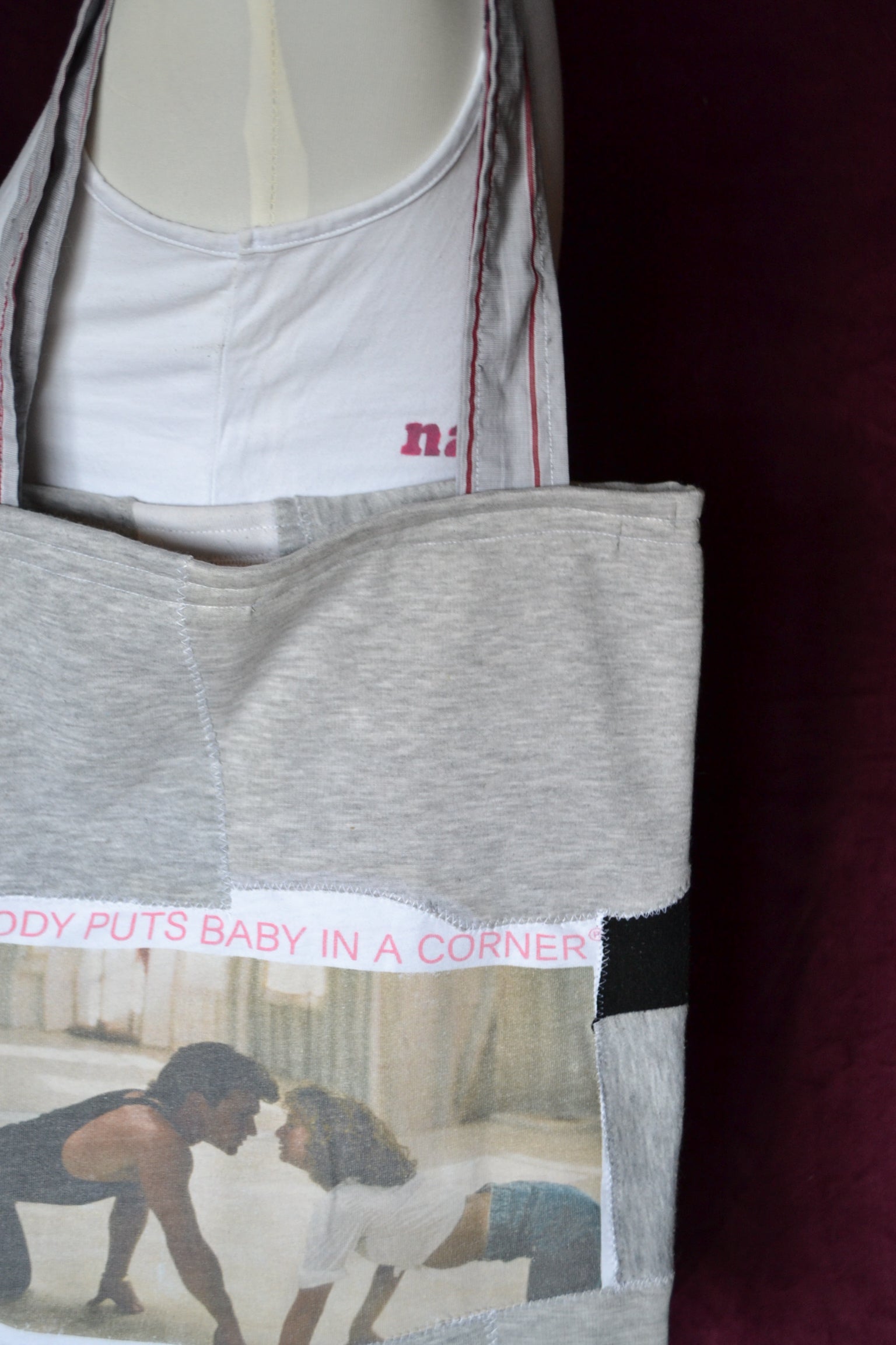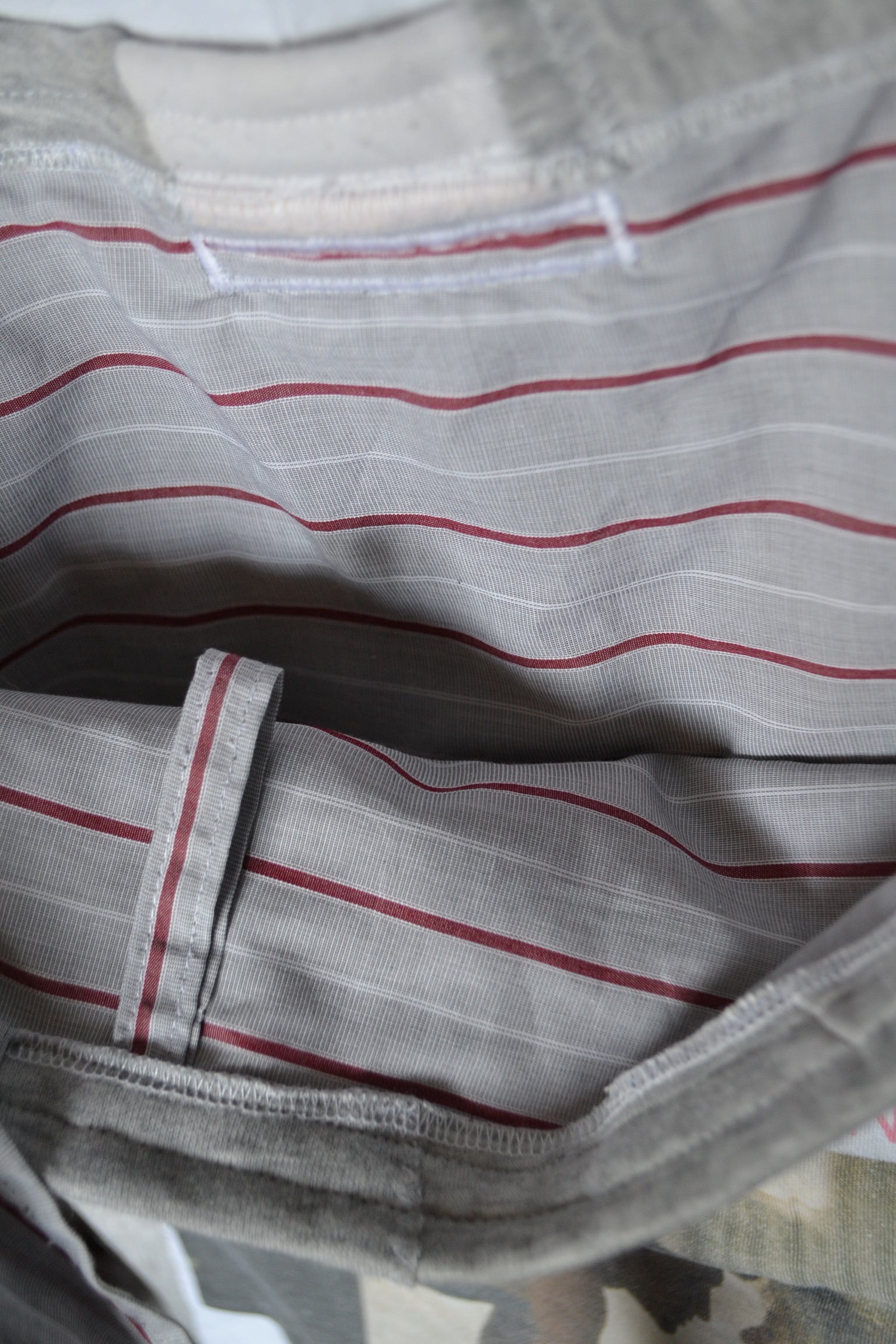 Für diese Tasche wurden der Stoff von Jogginghosen, Shirts und secondhand Stoff verwendet.
