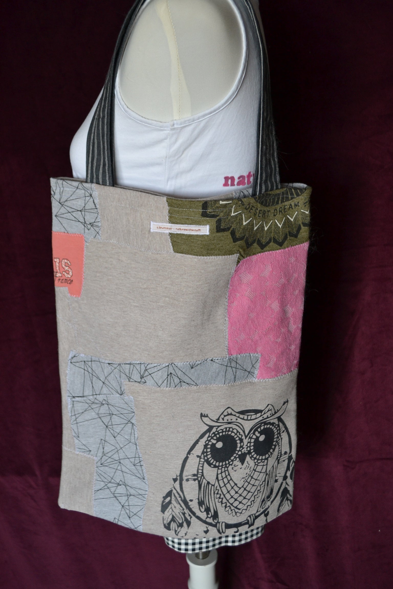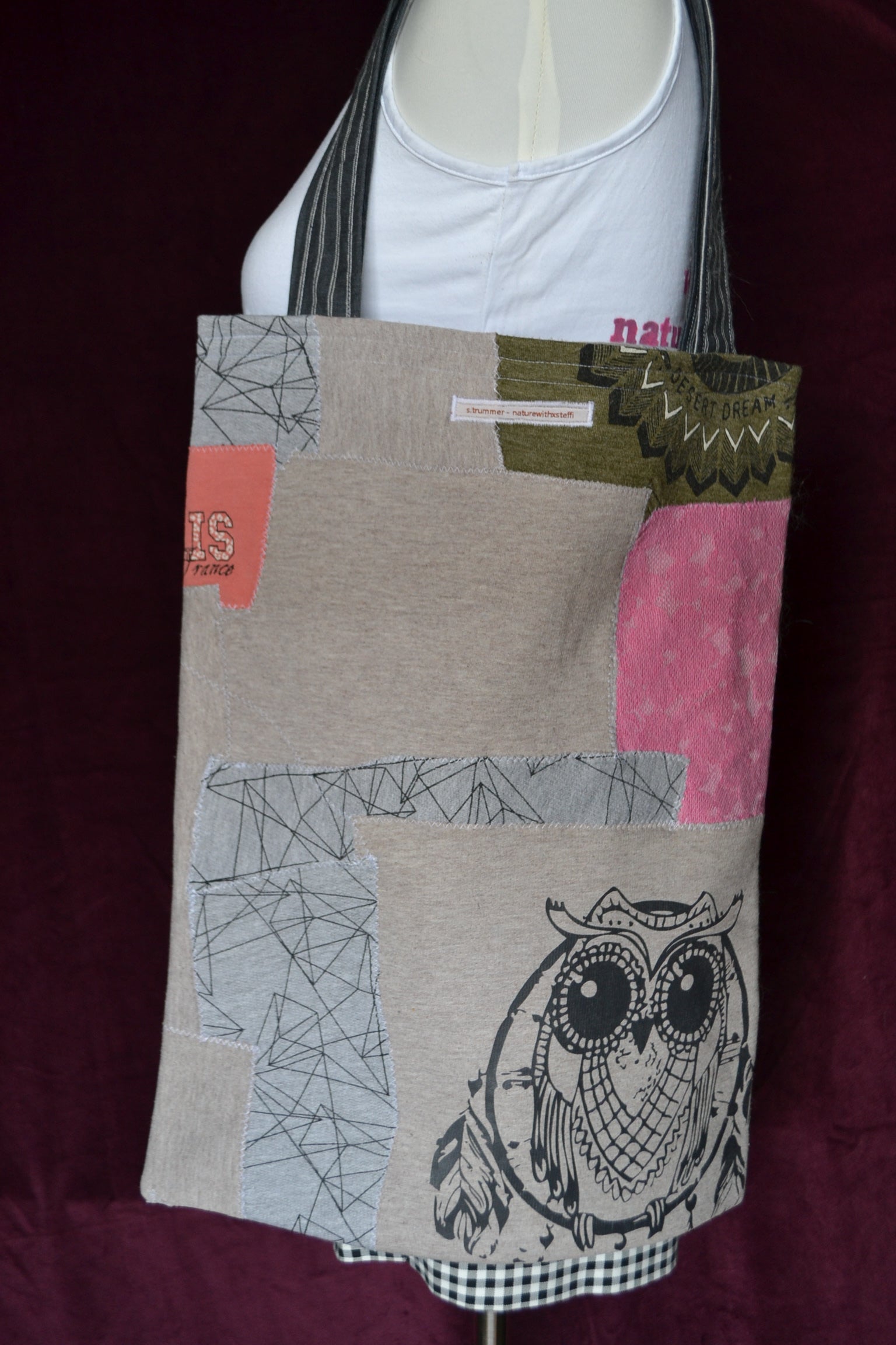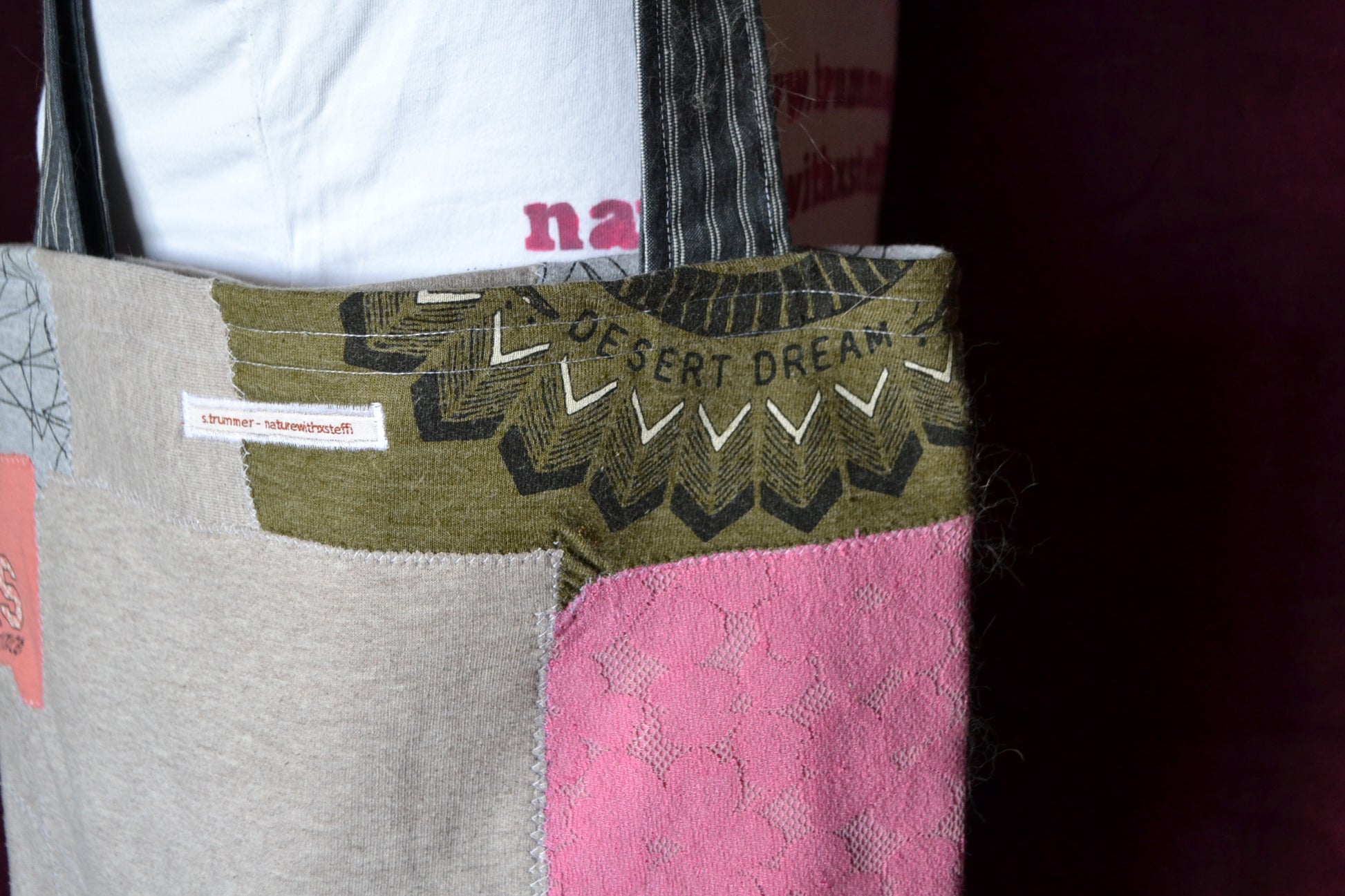 Die Idee dahinter? Weniger Wegwerfen für mehr Material. Deswegen wurden aus den verschiedensten Stoffstücken eine ganz besondere Tasche angefertigt. Einzigartig, ausdrucksvoll und umweltfreundlich!