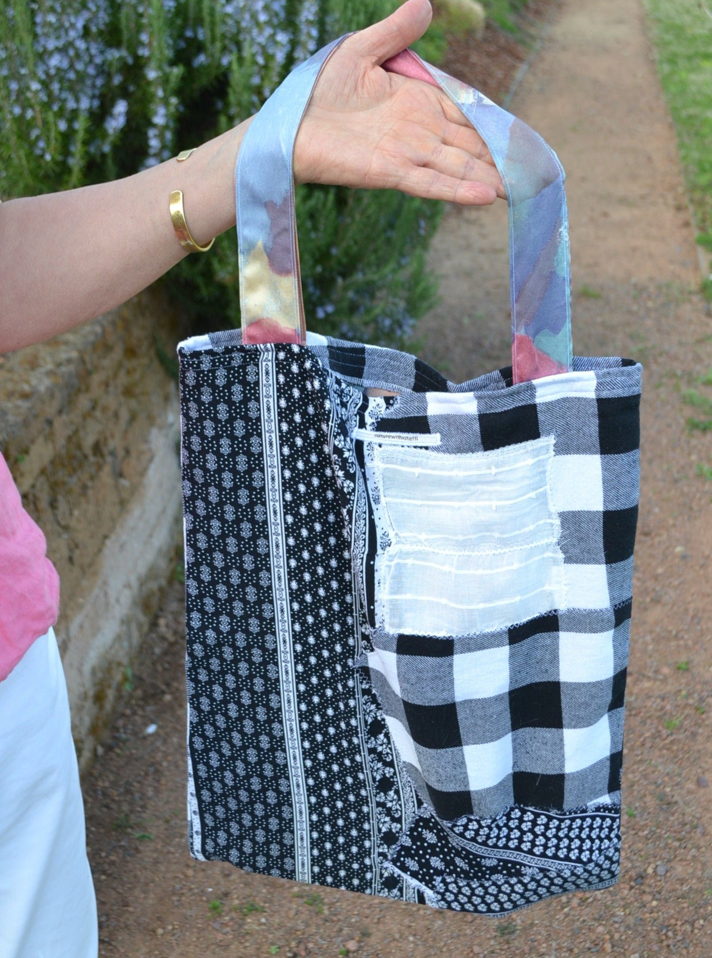 Handgemachte Stofftaschen. Schenk alter Kleidung ein neues Leben als stylische, umweltfreundliche, handgemachte Tasche.