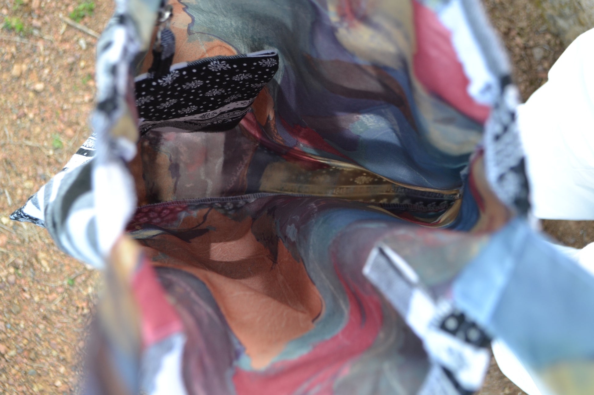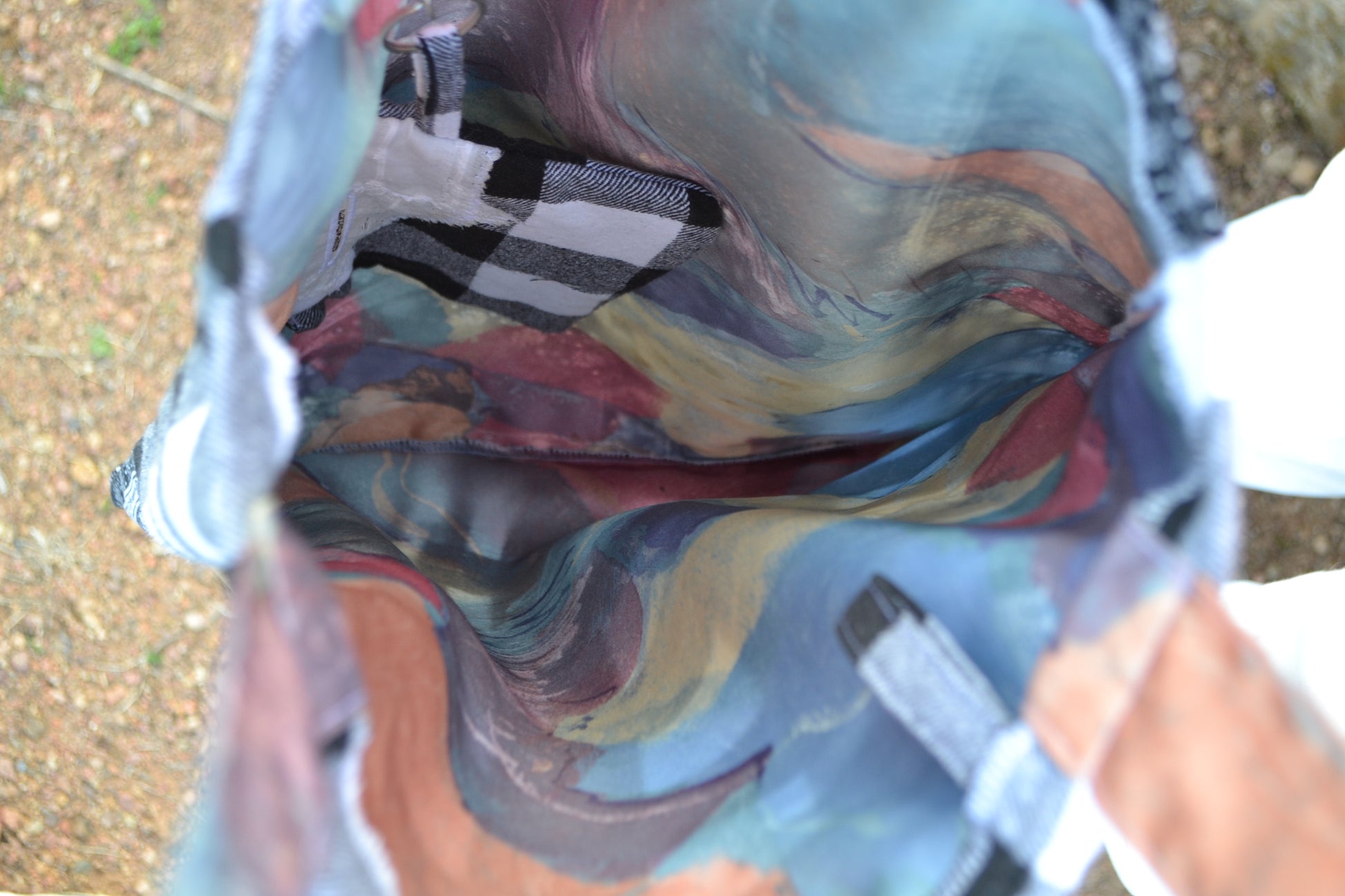 Die Idee dahinter? Weniger Wegwerfen für mehr Material. Deswegen wurden aus den verschiedensten Stoffstücken eine ganz besondere Tasche angefertigt. Einzigartig, ausdrucksvoll und umweltfreundlich!