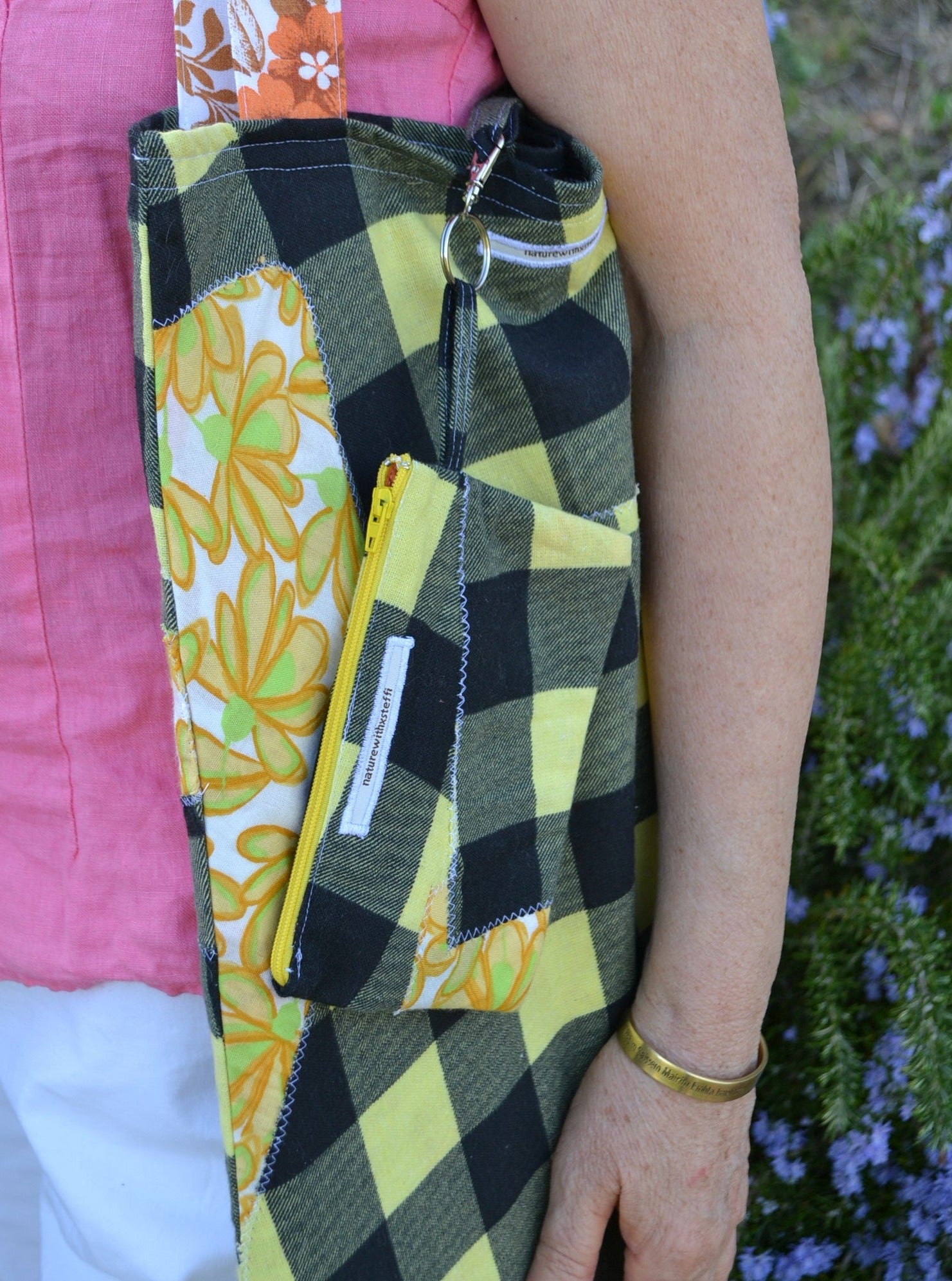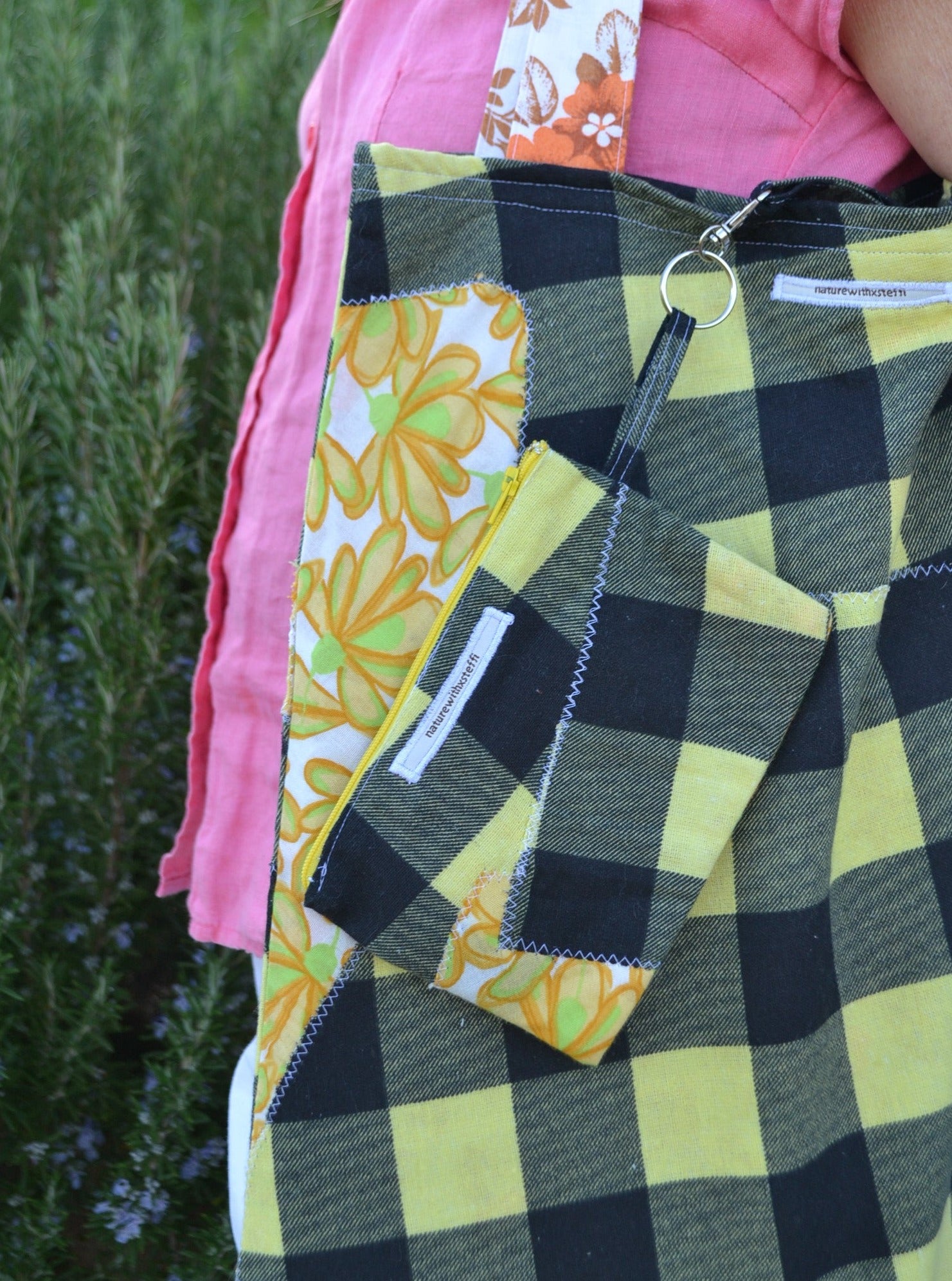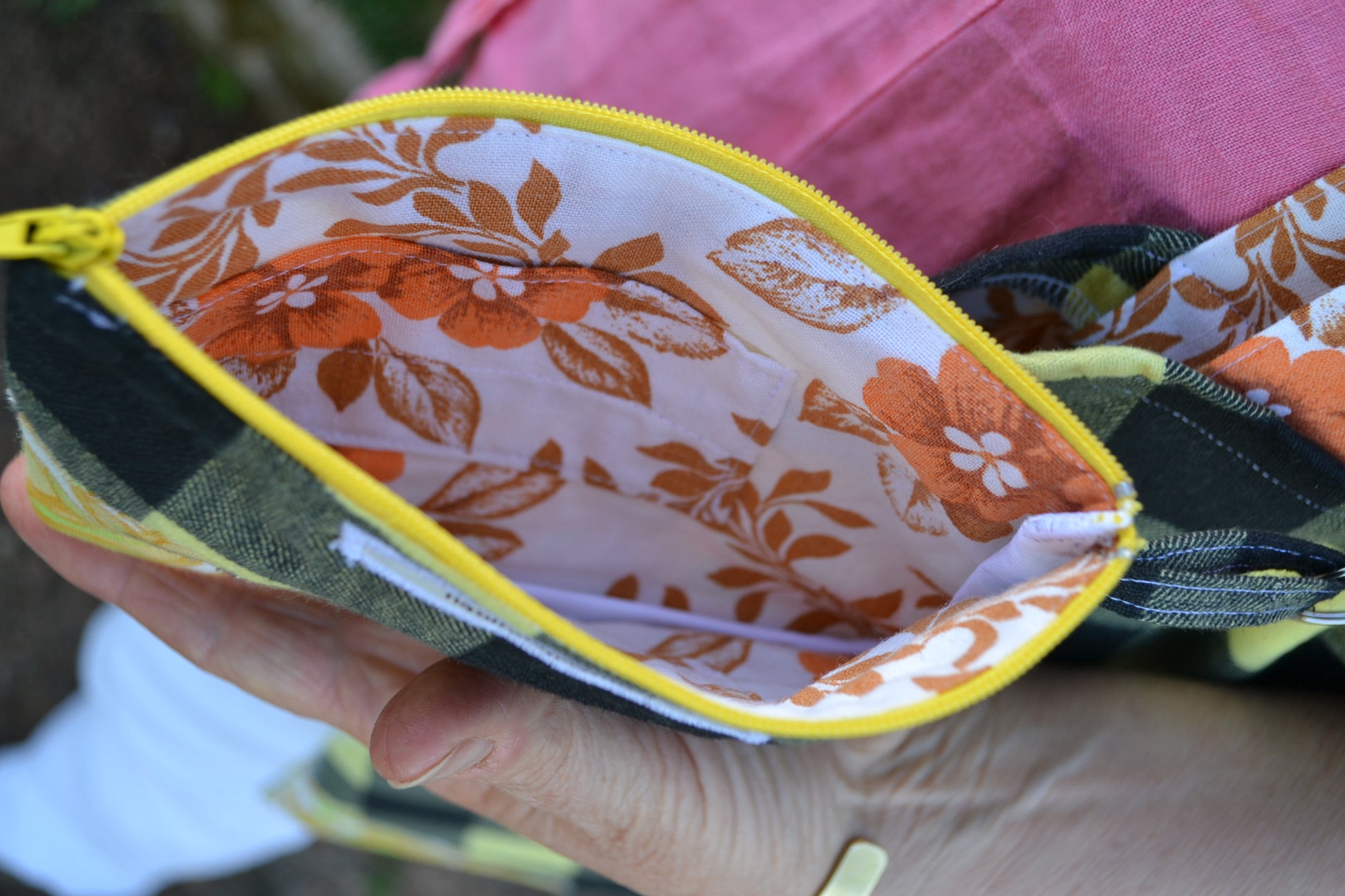 Für diese Tasche&Geldbörse wurden Stoff eines Hemdes und Oberteiles verwendet.