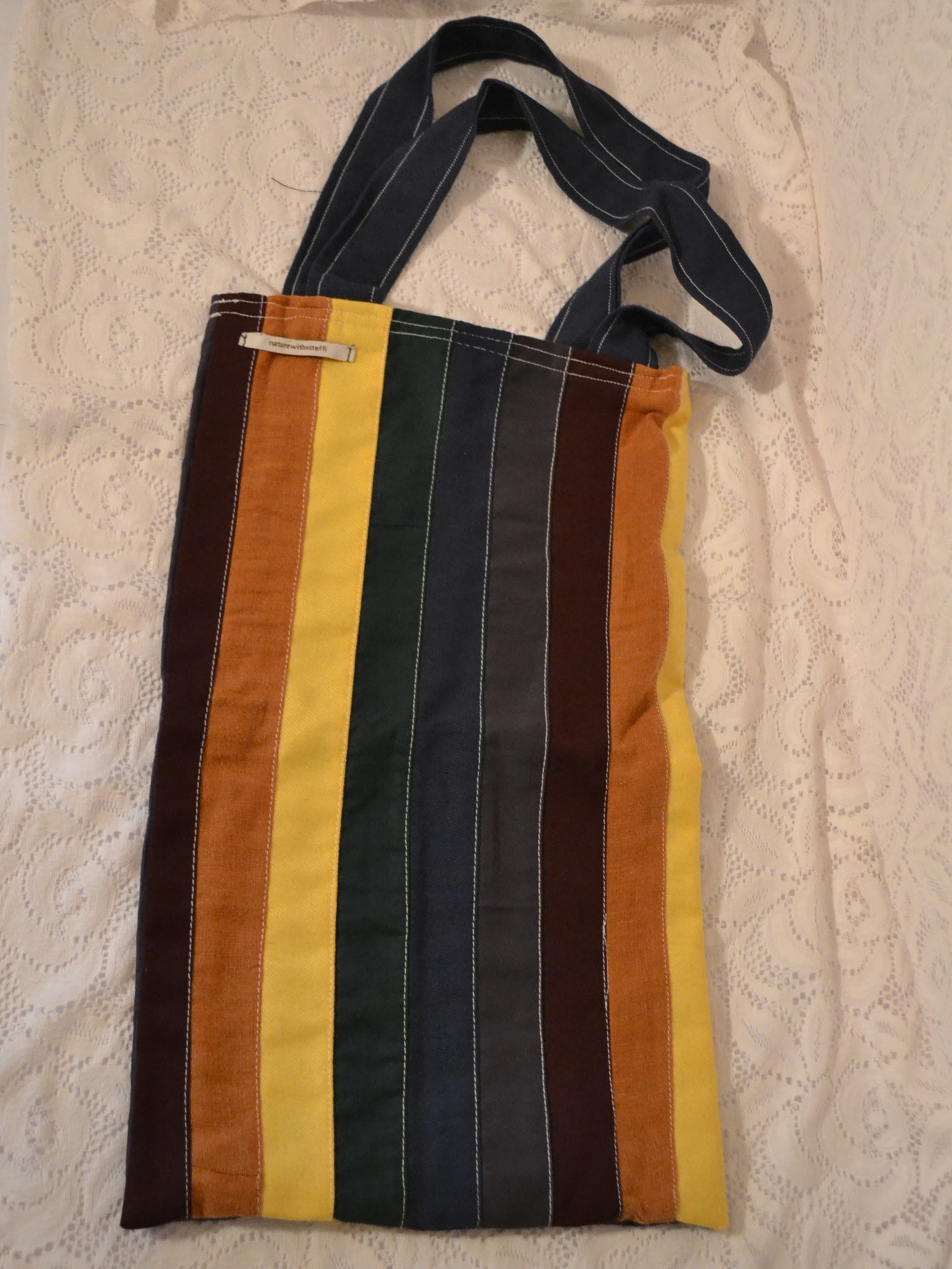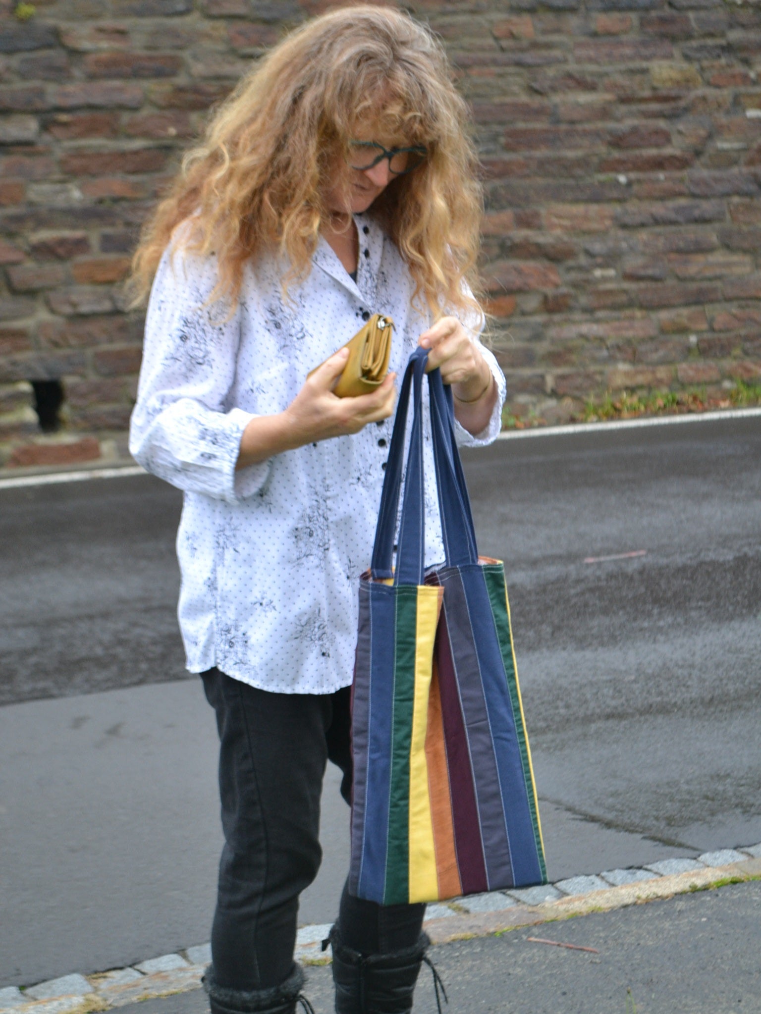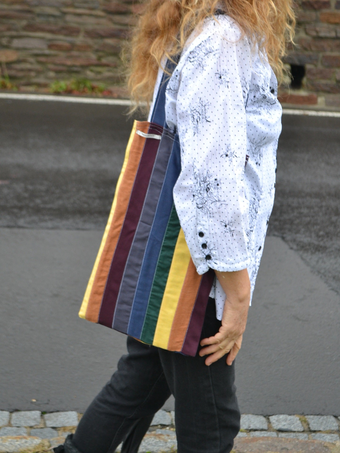Für diese Tasche wurden die verschiedenster Stoffe verwendet, unter anderem auch ein Leinenkleid.