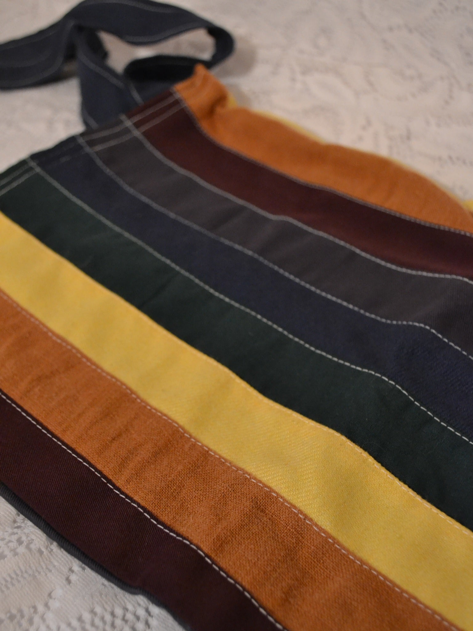 Die Tragetasche Regenbogen ist aus verschiedenen Stoffen zusammengenäht und bietet einen einzigartigen Look. Ideal für den täglichen Gebrauch, als Accessoire oder als Geschenk für die Liebsten perfekt geeignet.