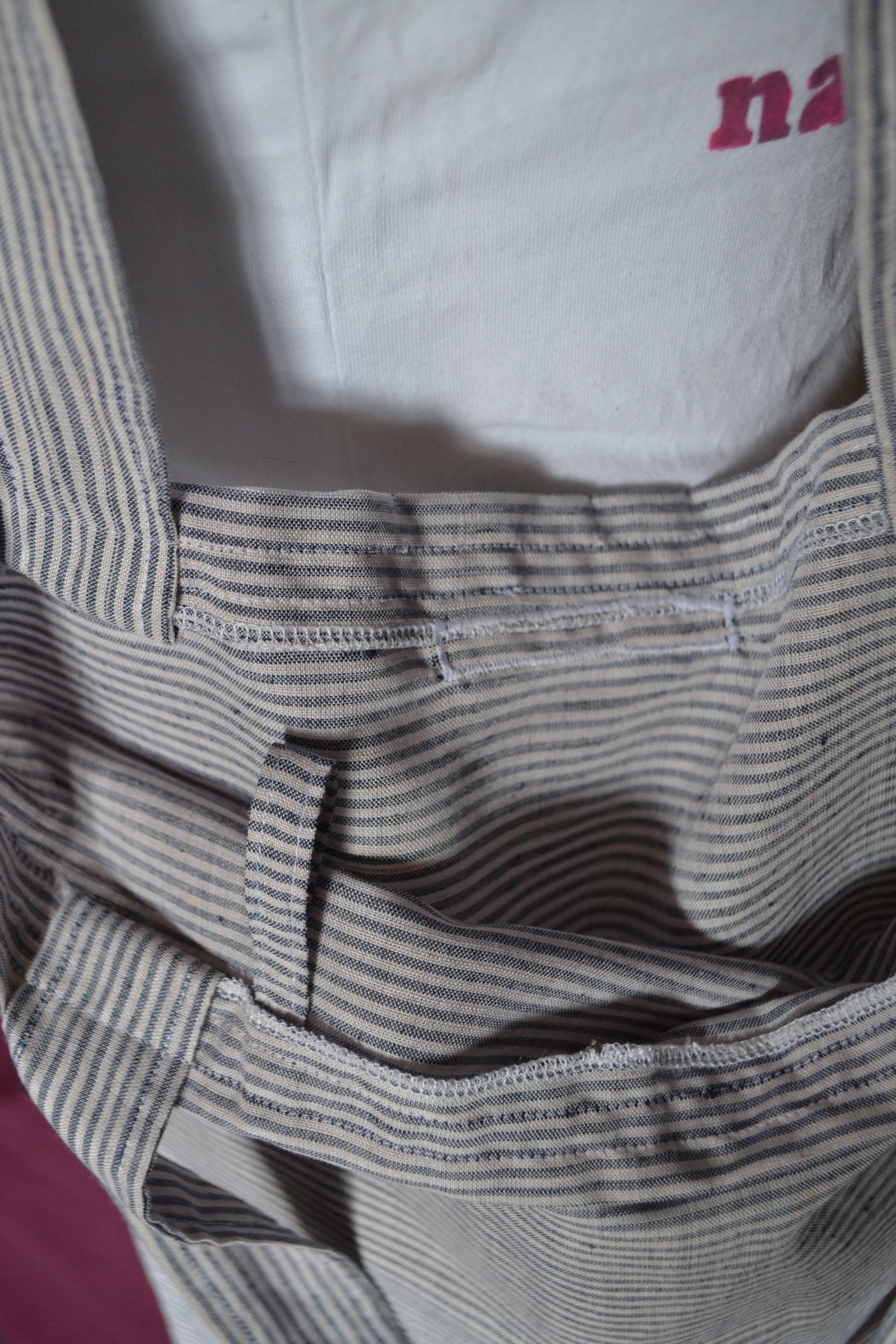Diese Tasche wurde aus secondhand Stoff gefertigt.