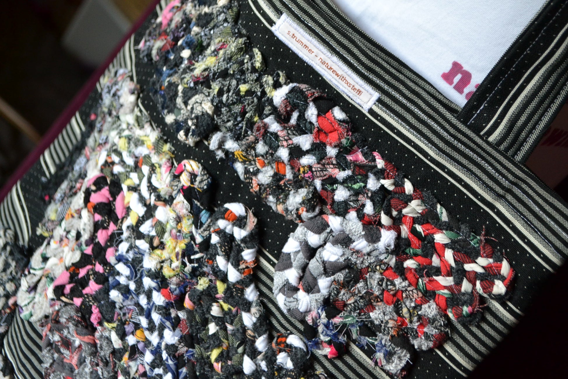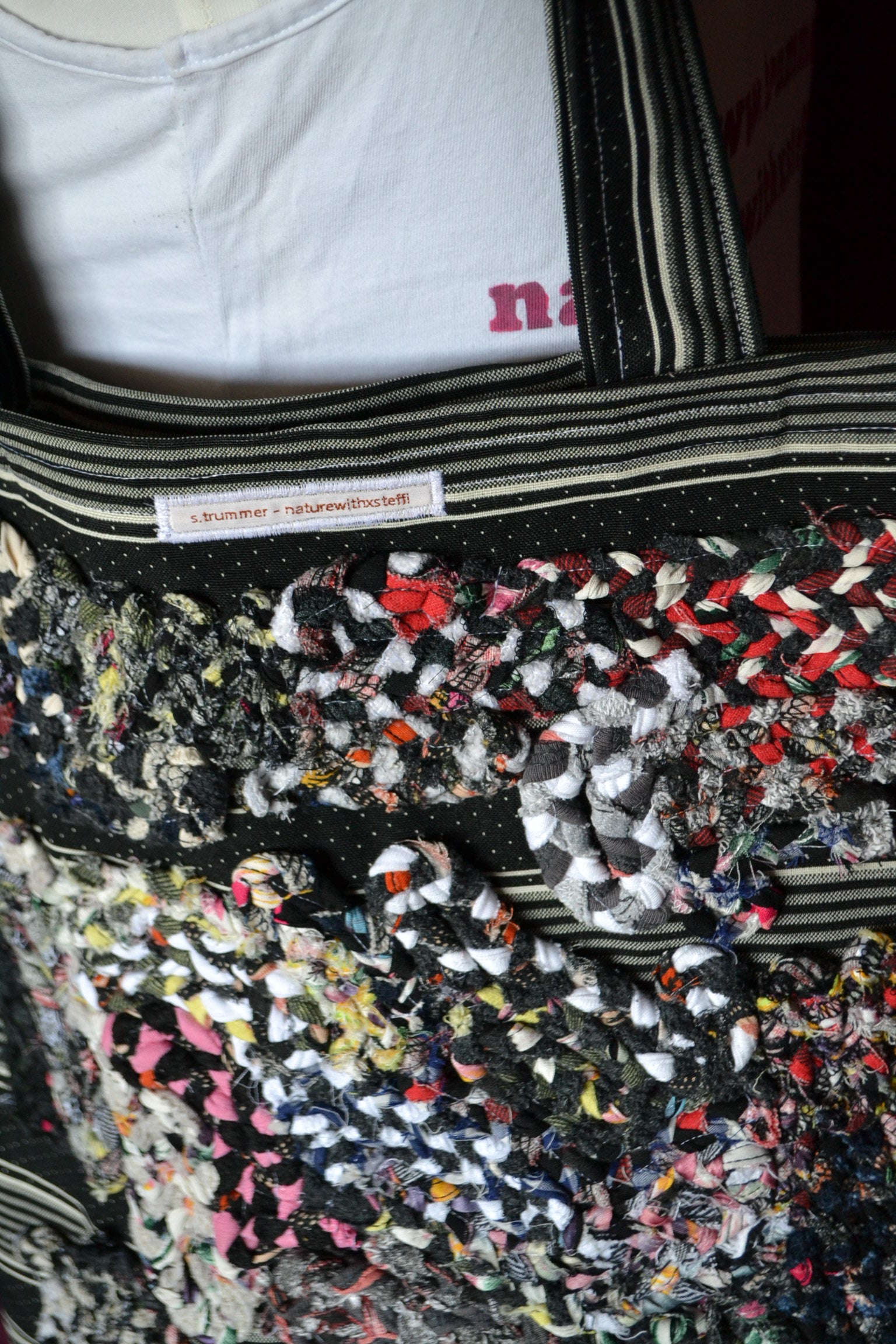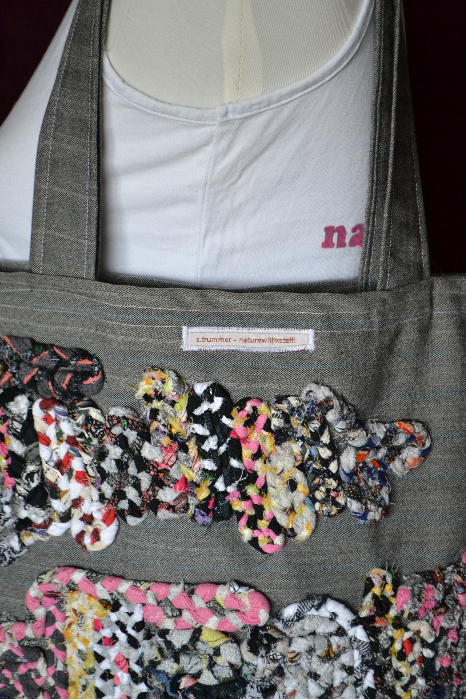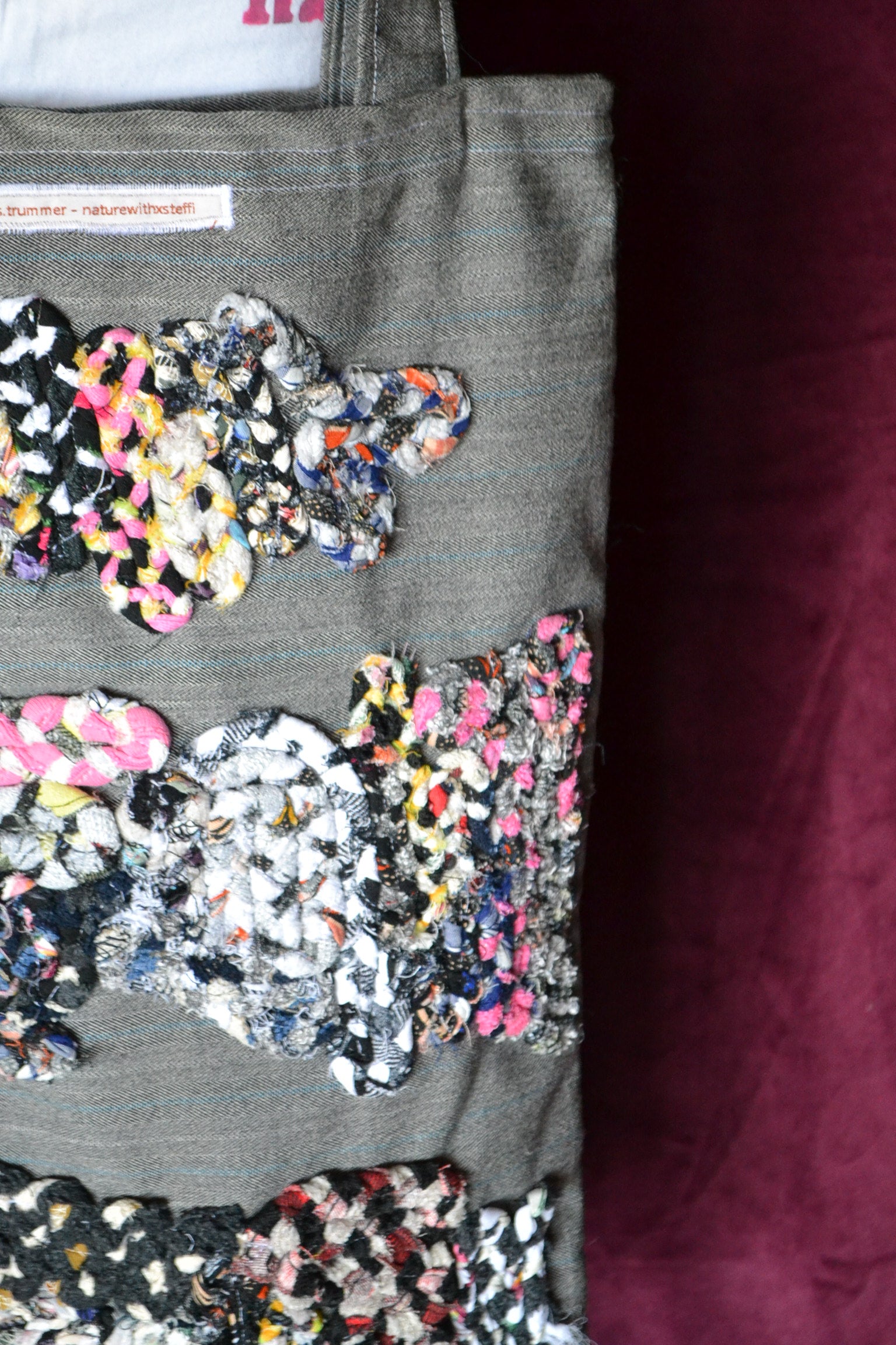 Für diese Tasche wurden secondhand Stoff und Endnähte-Zöpfe verwendet.