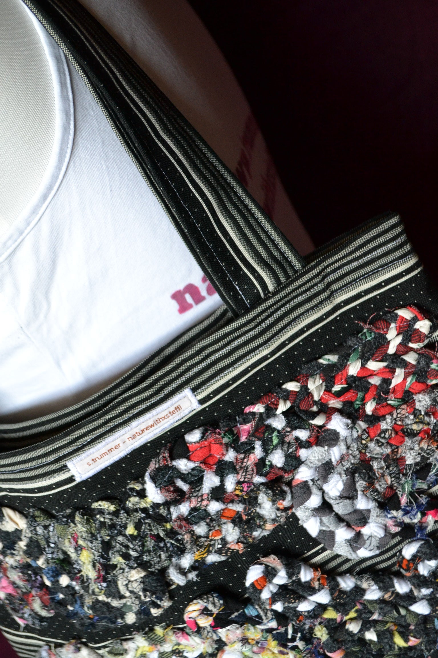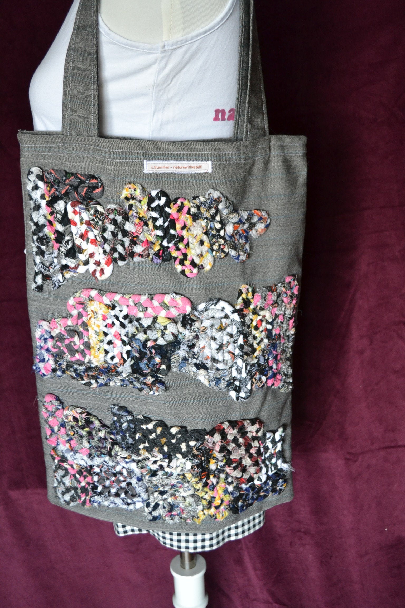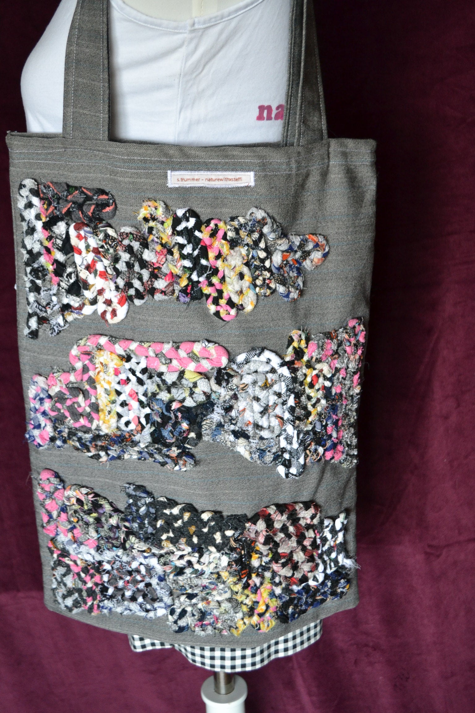 Für diese Tasche wurden secondhand Stoff und Endnähte-Zöpfe verwendet.