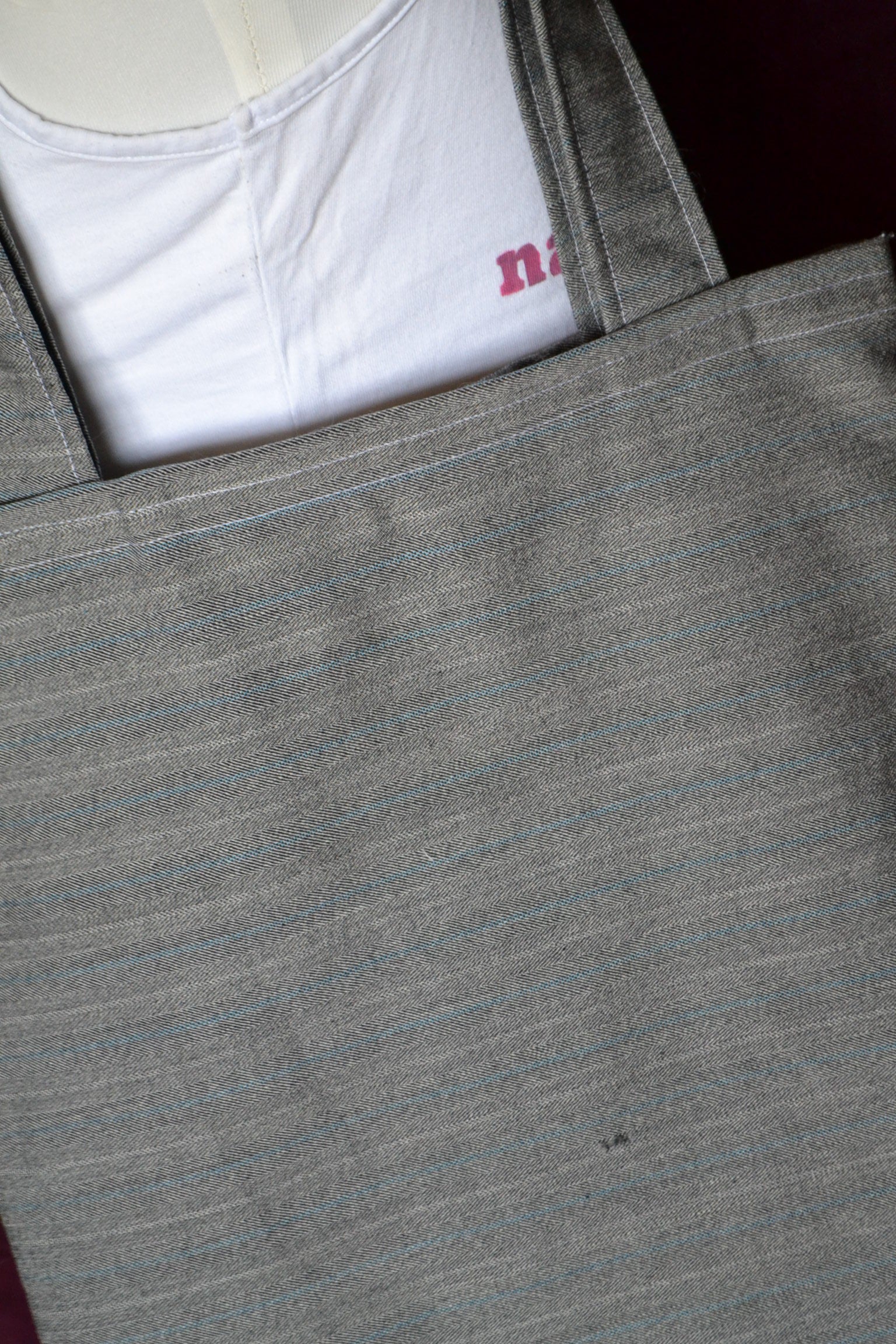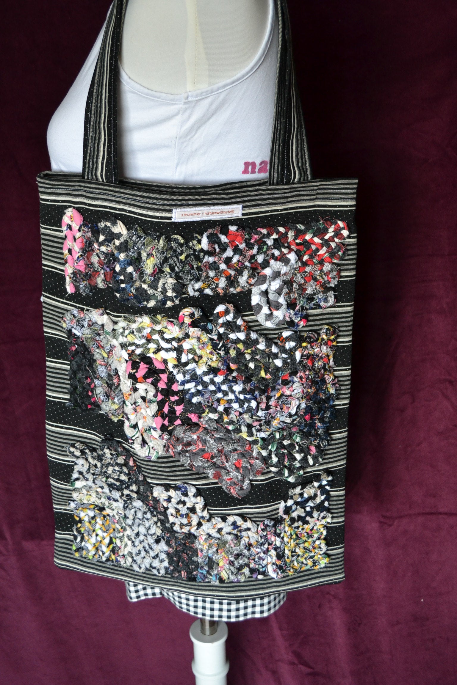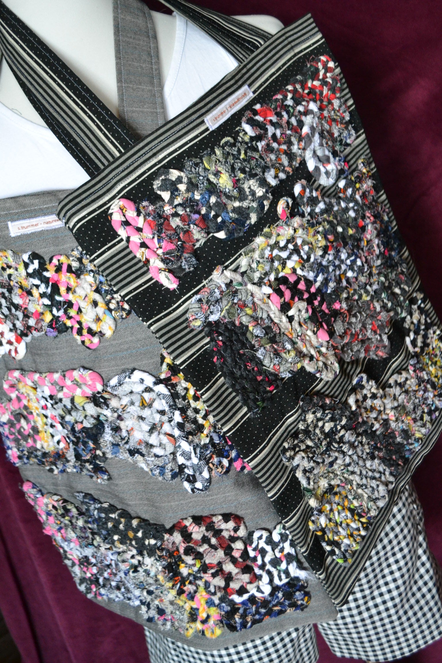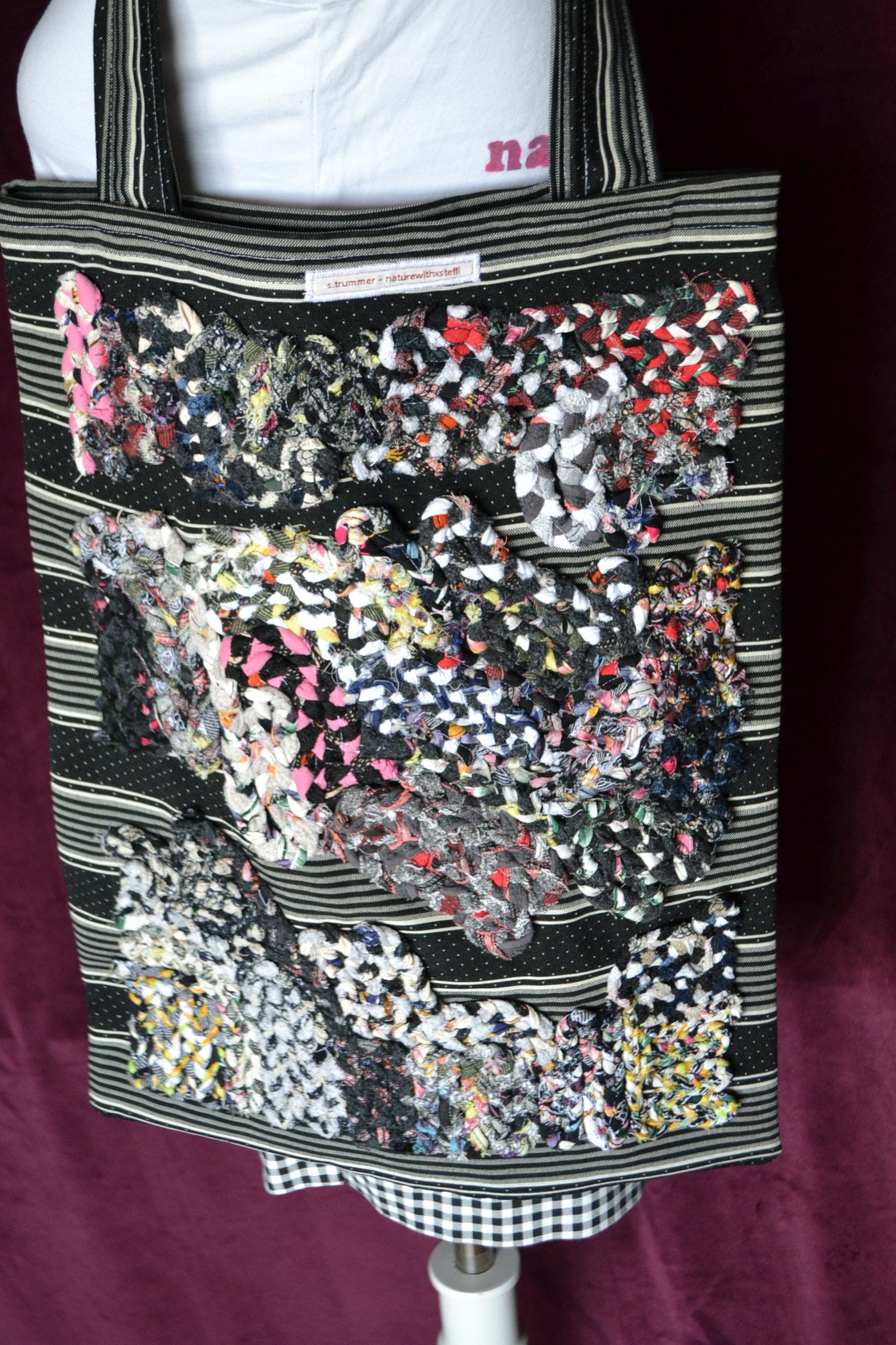 Für diese Tasche wurden secondhand Stoff und Endnähte-Zöpfe verwendet.