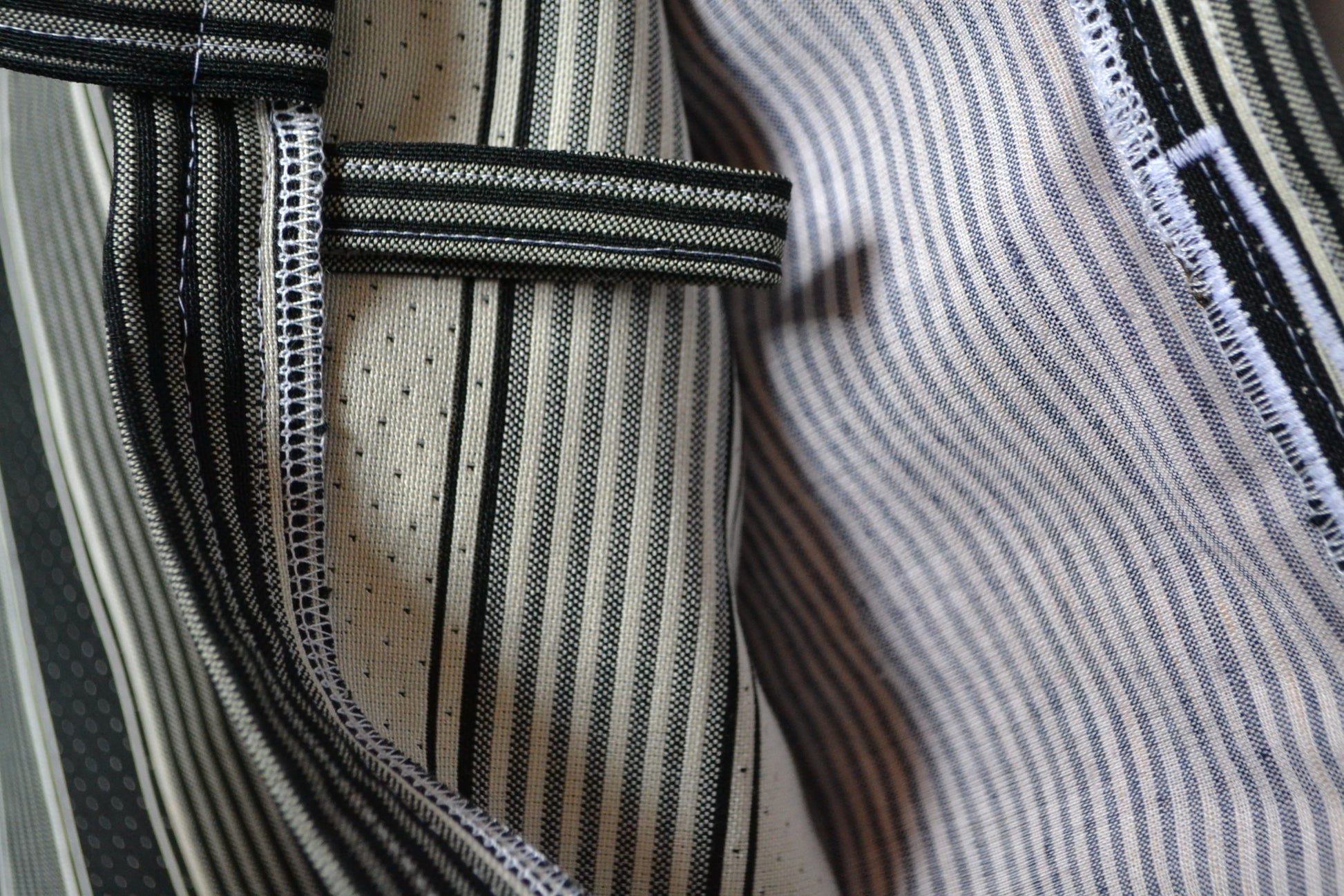 Die Idee dahinter? Weniger Wegwerfen für mehr Material. Deswegen wurden aus den den Endnähten von verschiedenen Kleidungsstücken, Zöpfe gemacht, die dekorativ raufgenäht wurden! Einzigartig, ausdrucksvoll und umweltfreundlich!