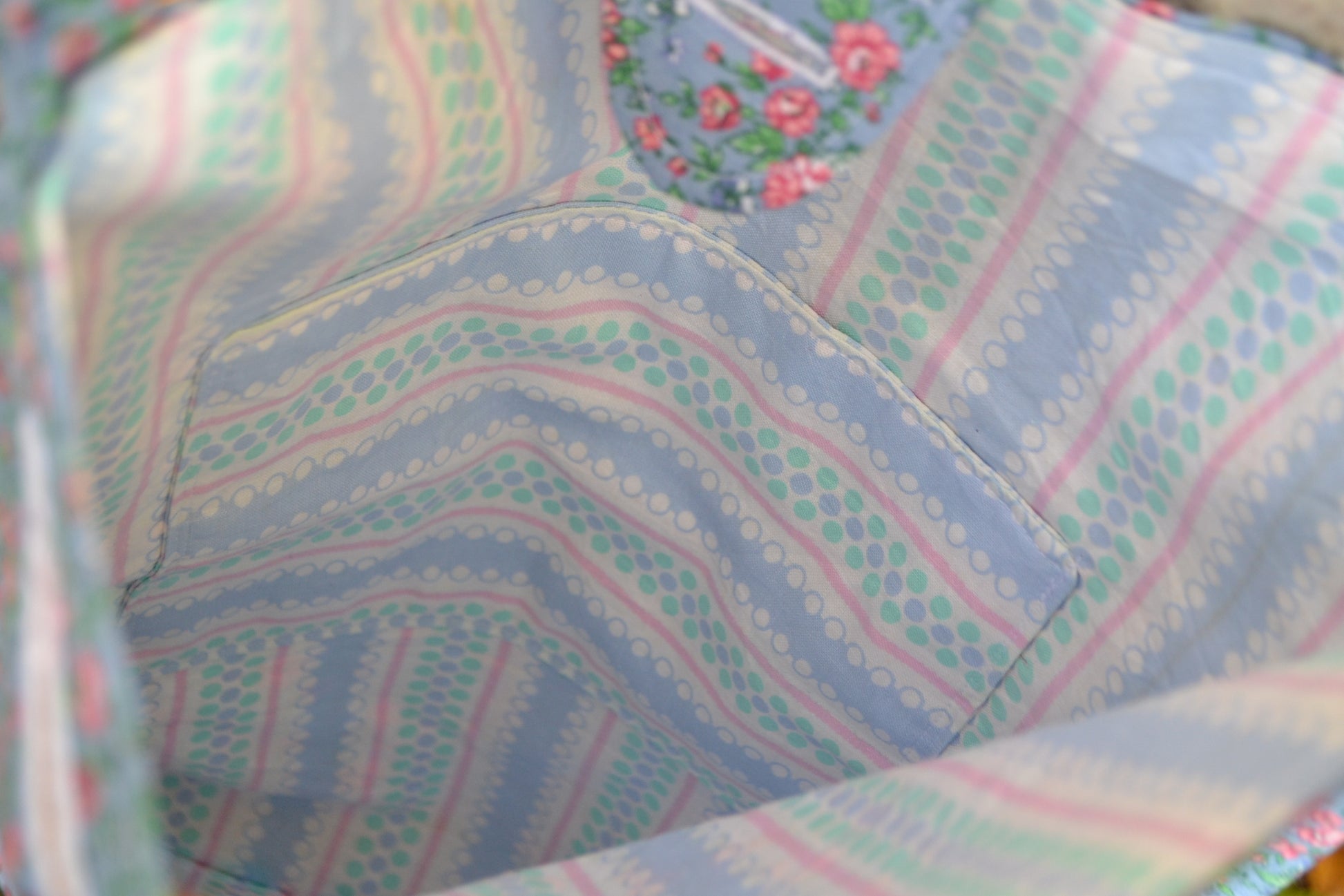Diese Tasche, aus zweiter Hand Stoffen und Kleidung, wurde mit großer Sorgfalt in Österreich handgefertigt. Sie ist die perfekte Wahl für ein schönes Picknick, zum Freunde treffen oder zum Ausgehen!