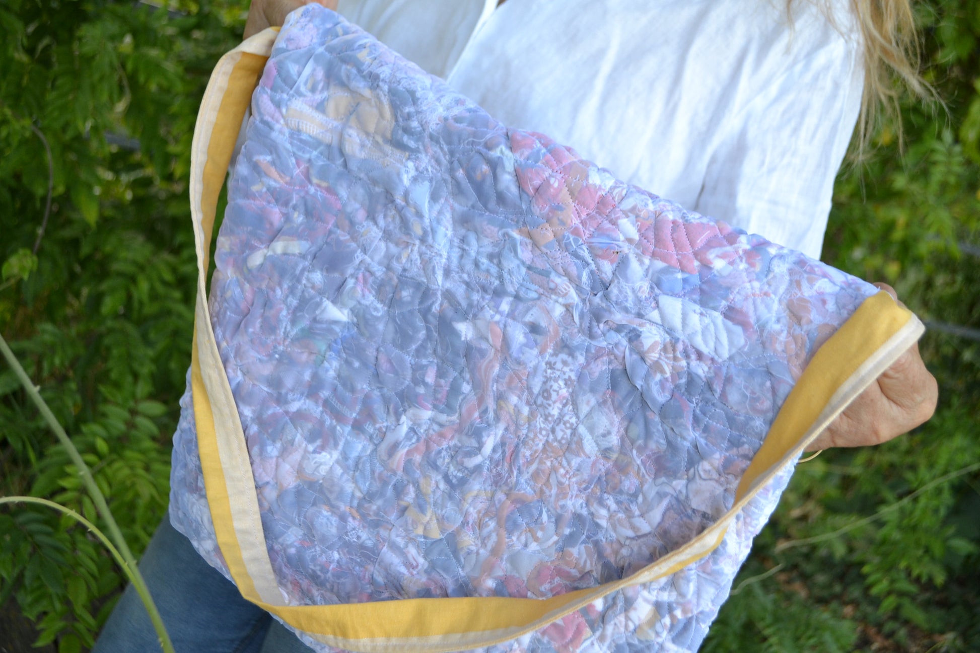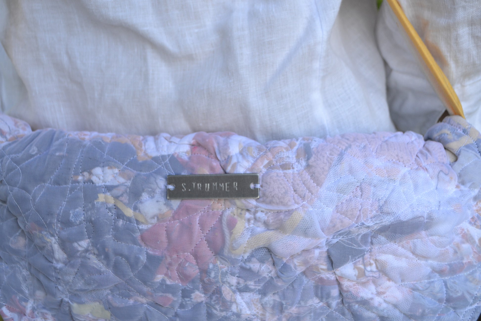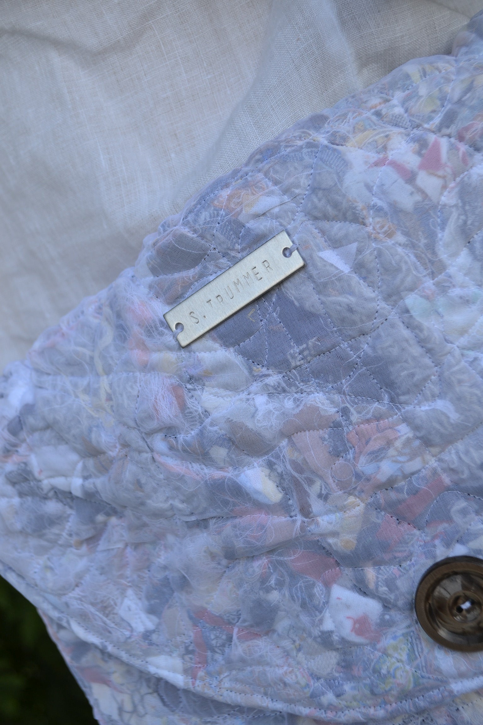 Für diese Tasche wurden die kleinsten Stoff- und Fadenreste und secondhand Stoffe verwendet.